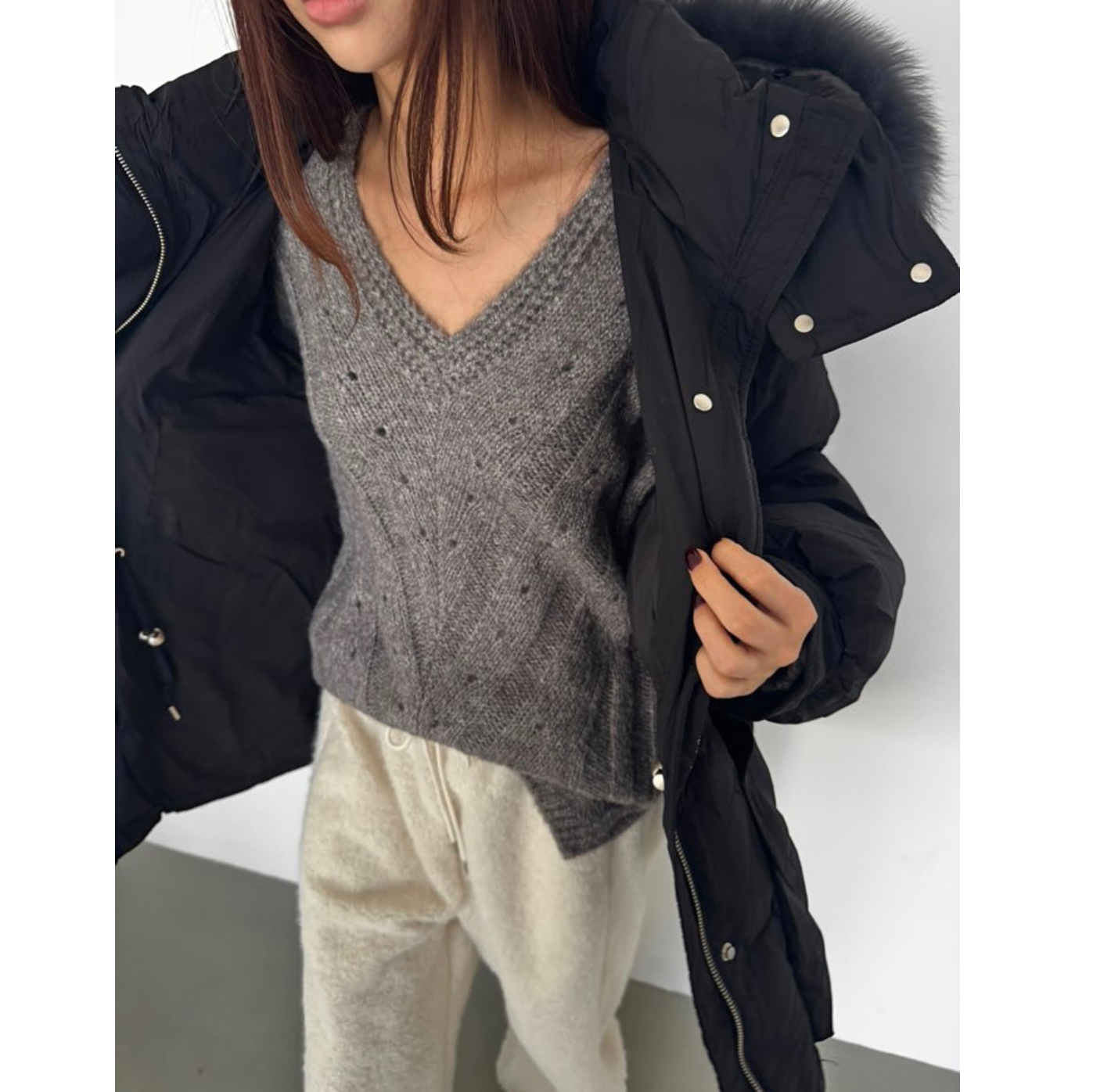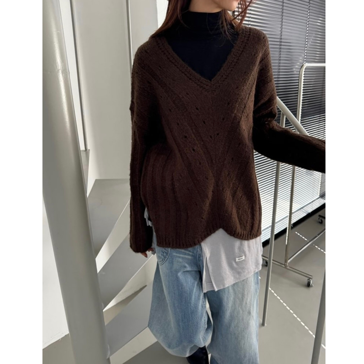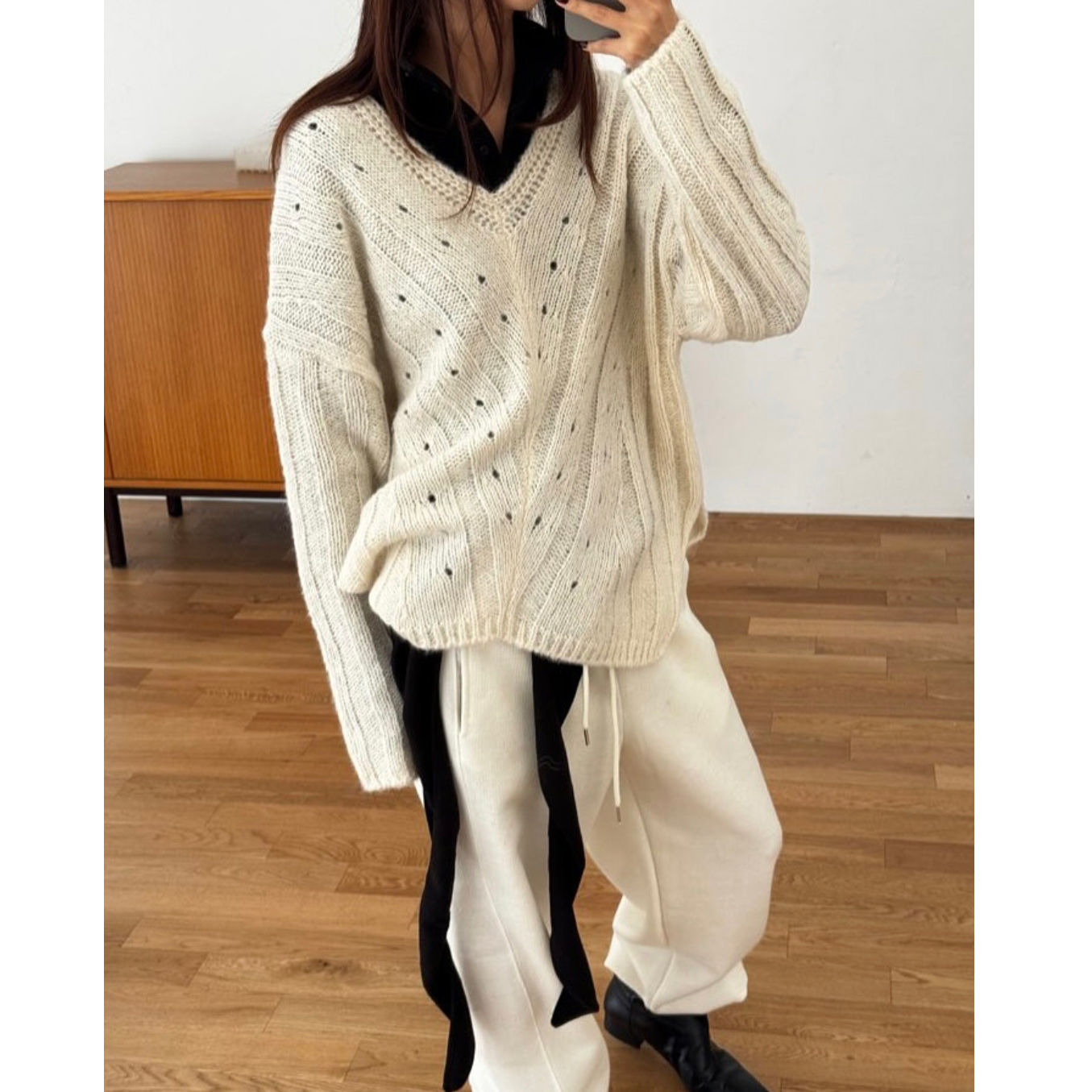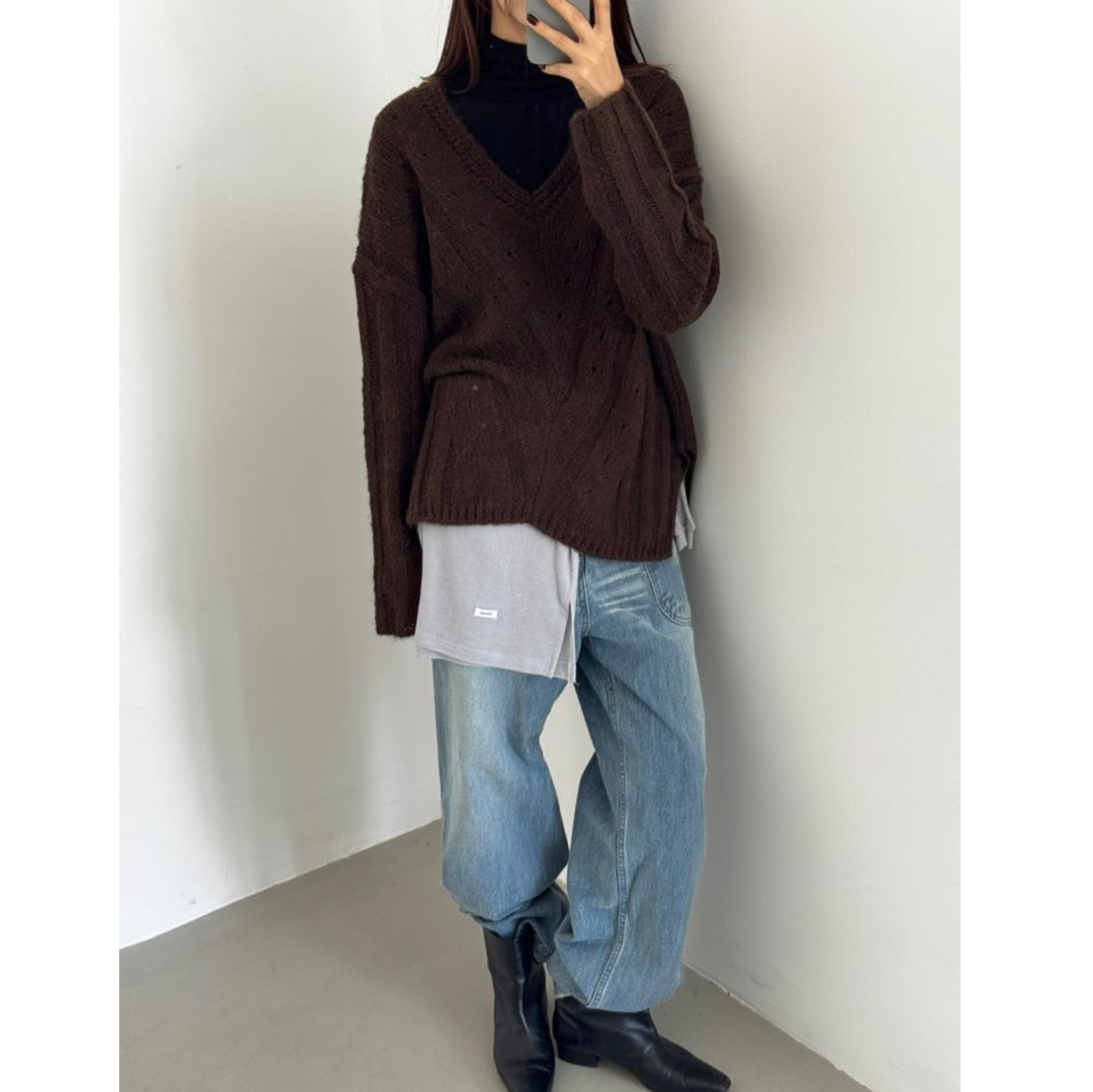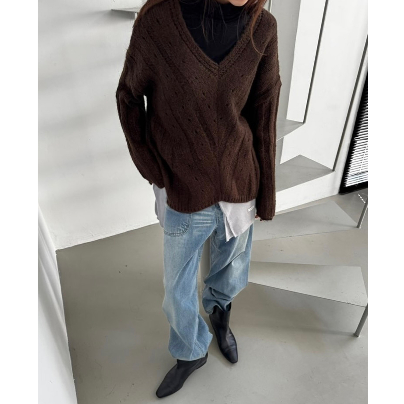 헤리 하이퀄리티 알파카 브이넥 루즈핏 니트