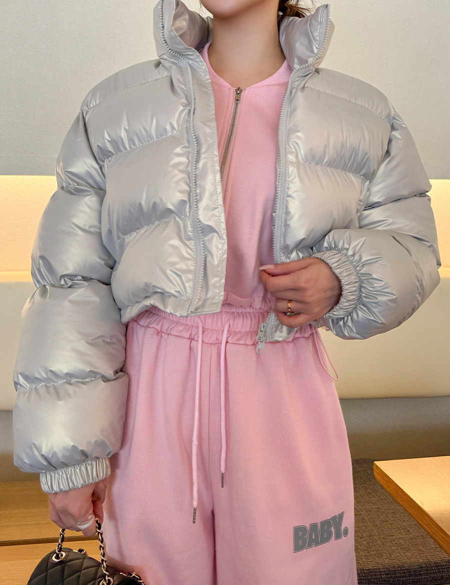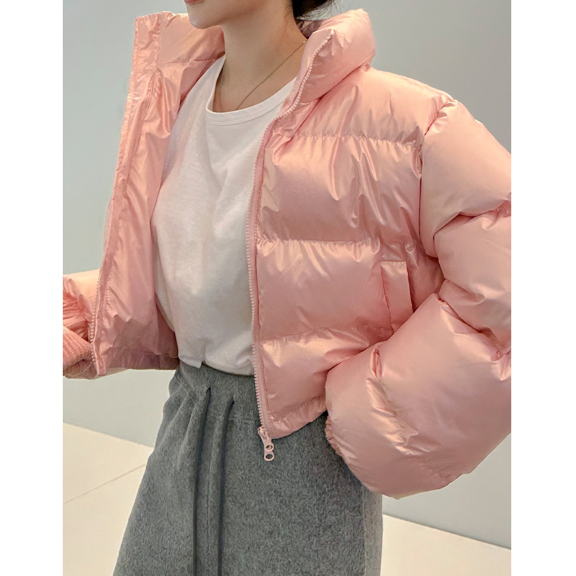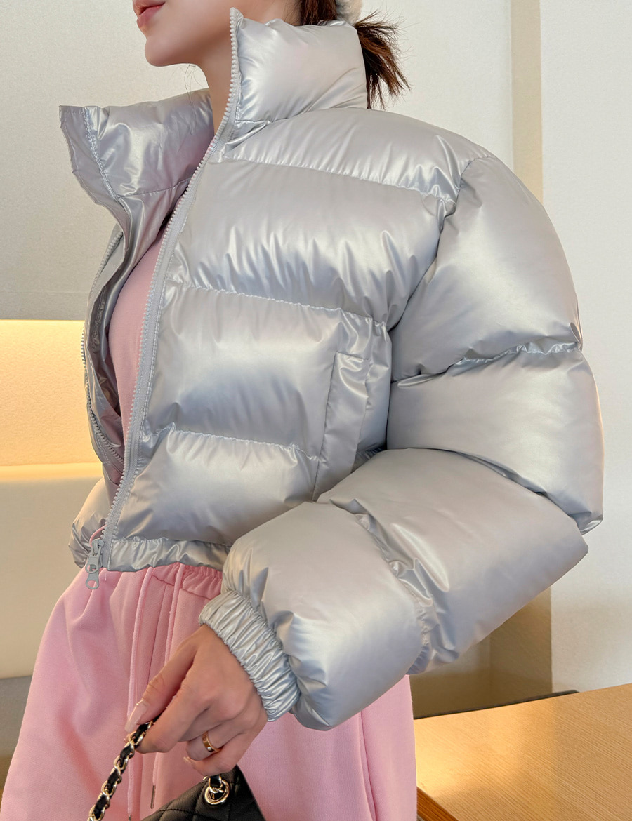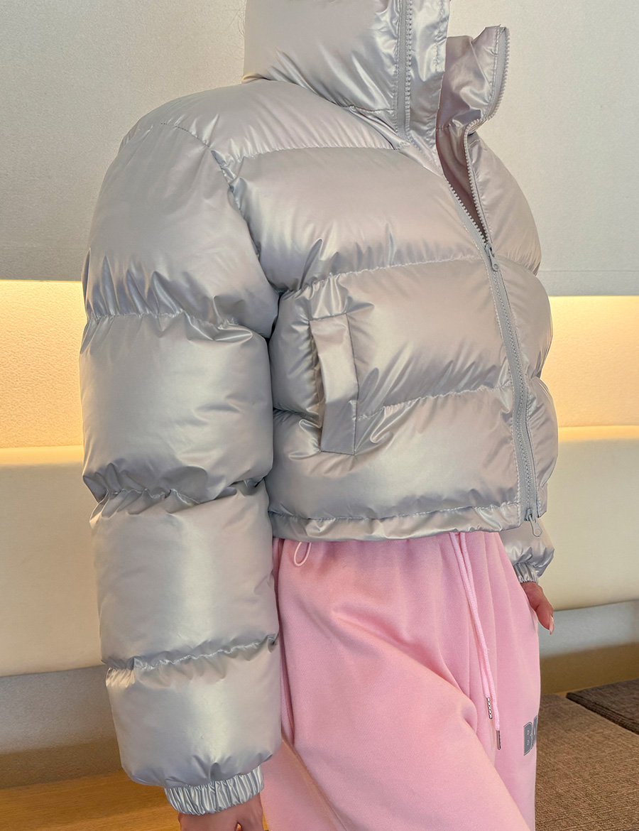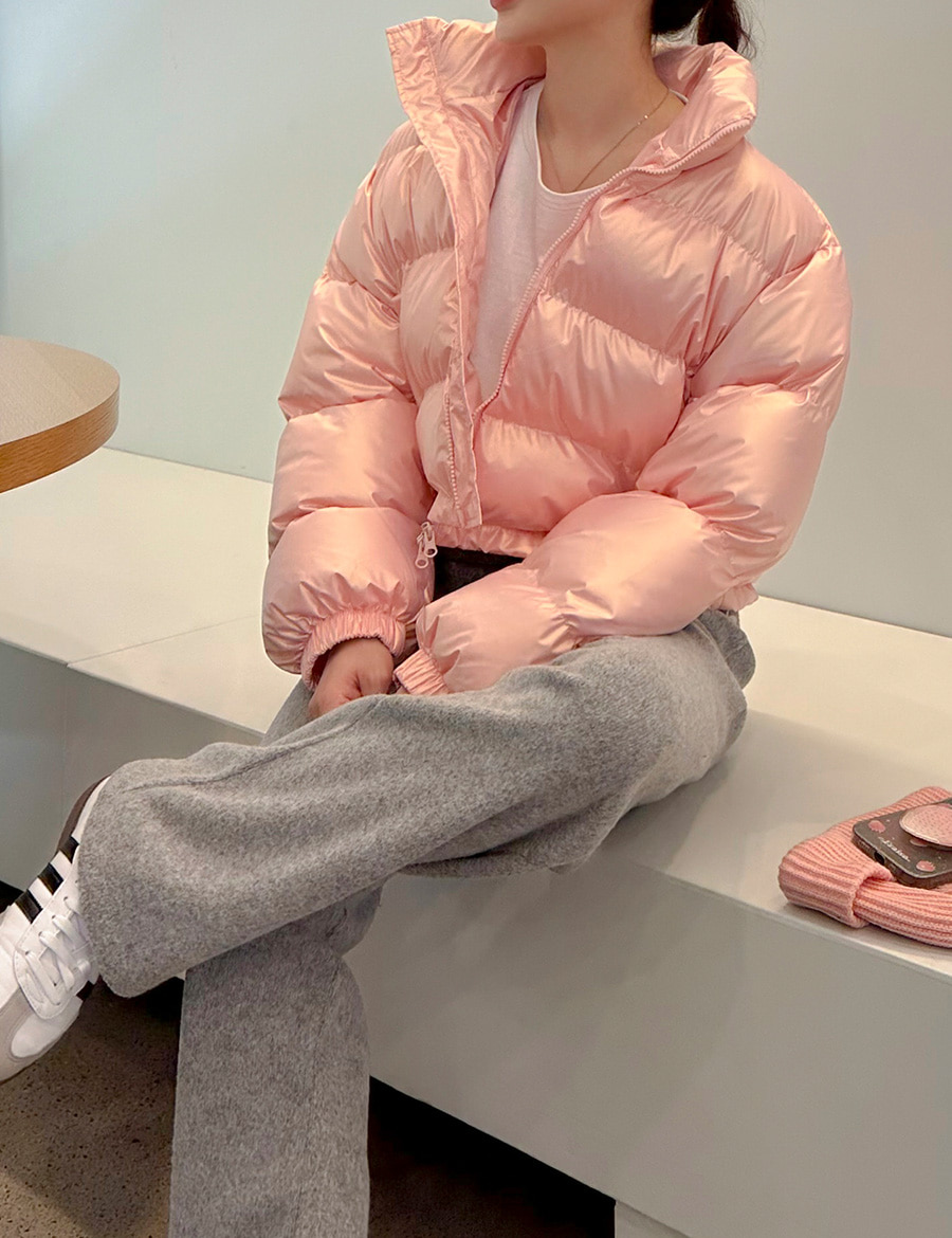 볼륨 하트 크롭 하이넥 유광 패딩 점퍼