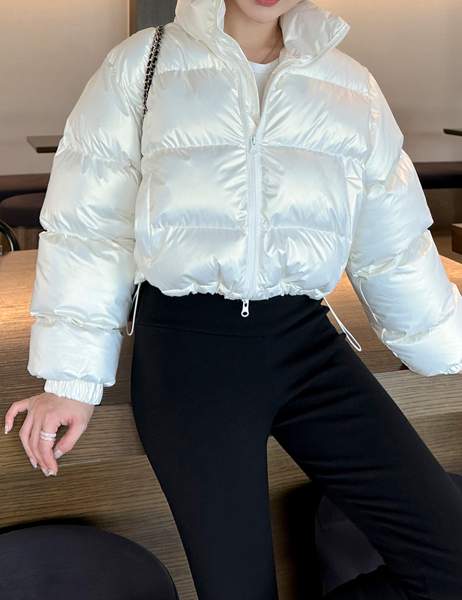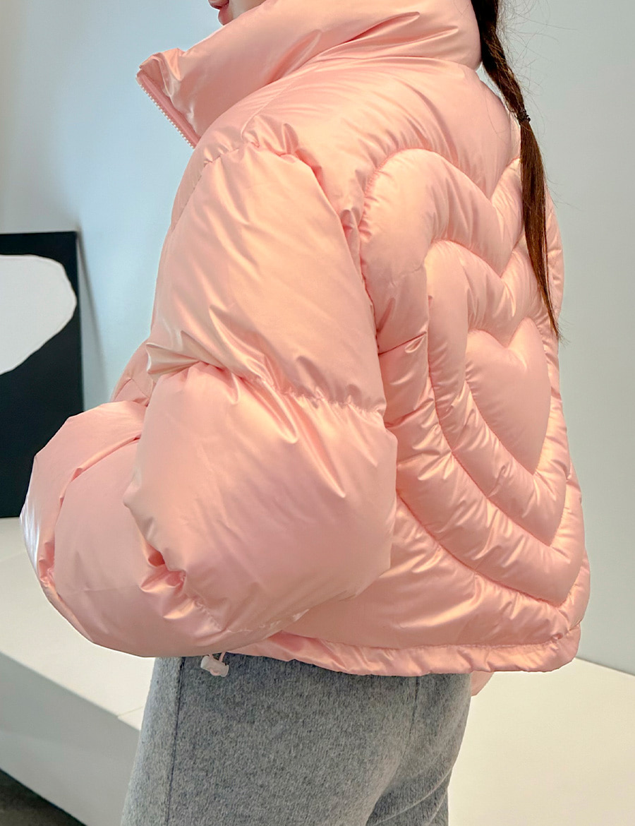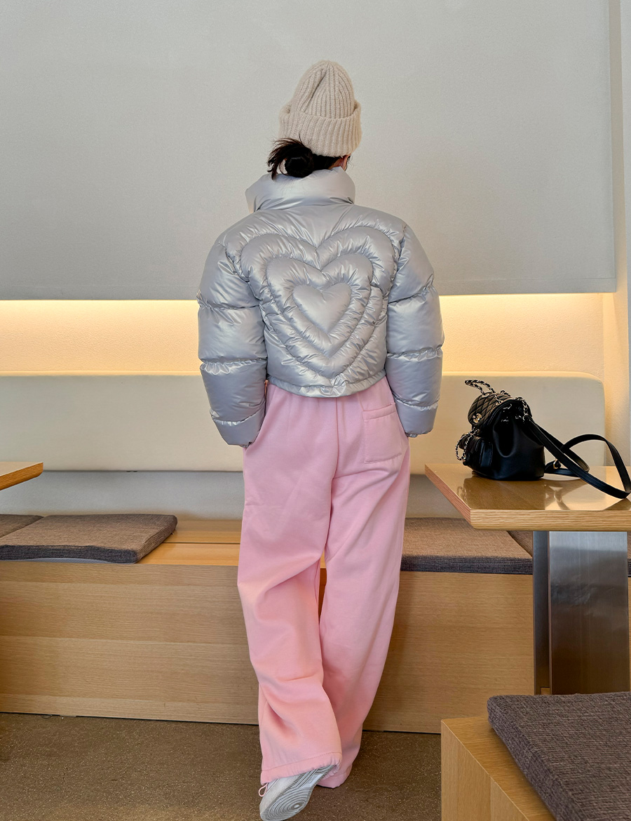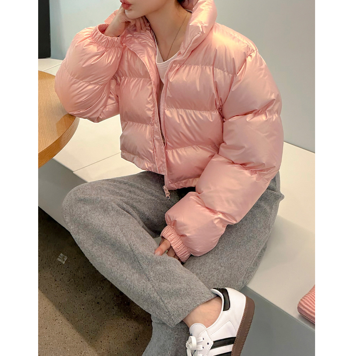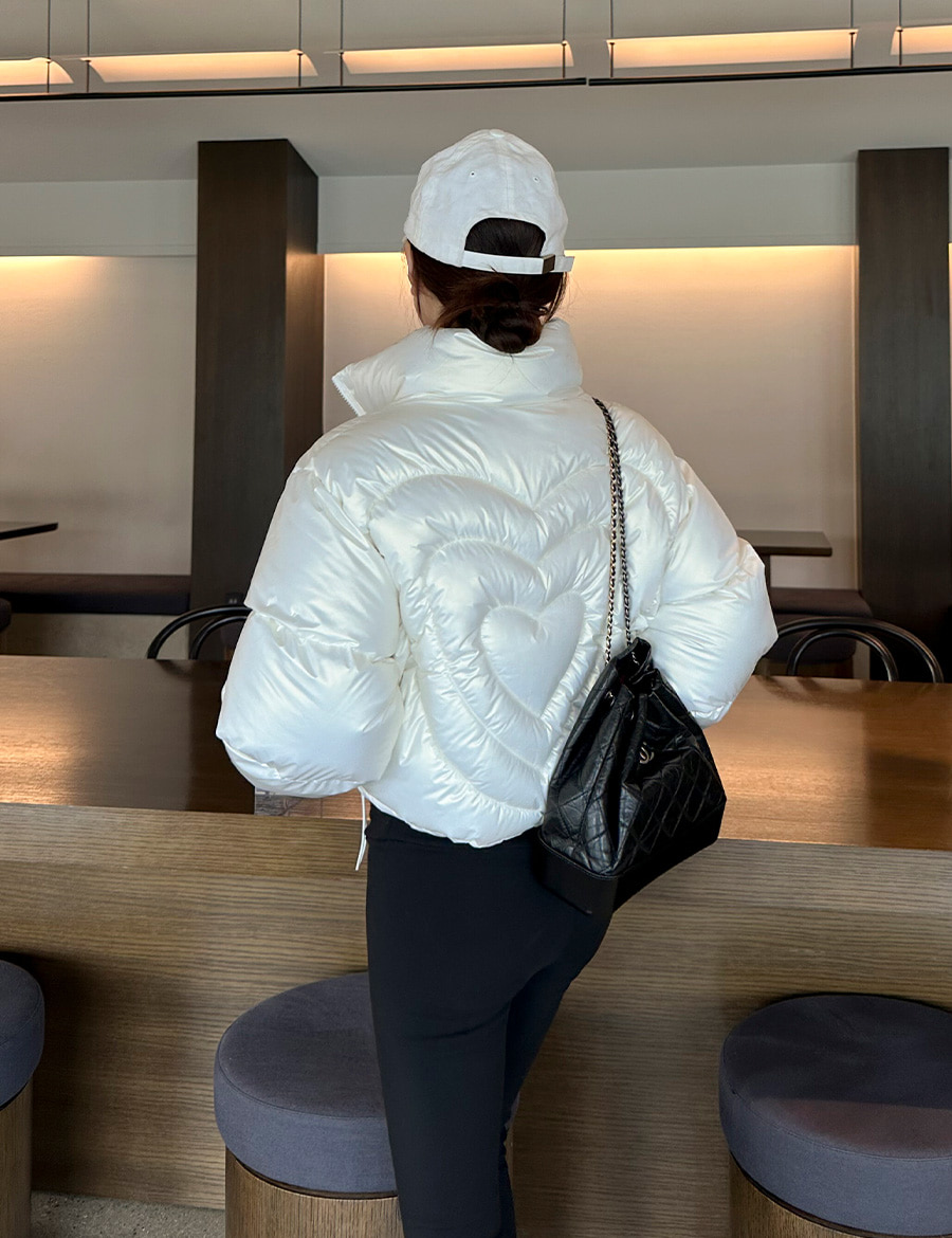 볼륨 하트 크롭 하이넥 유광 패딩 점퍼