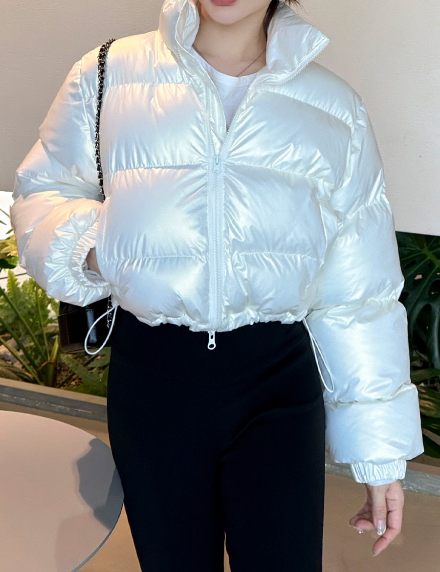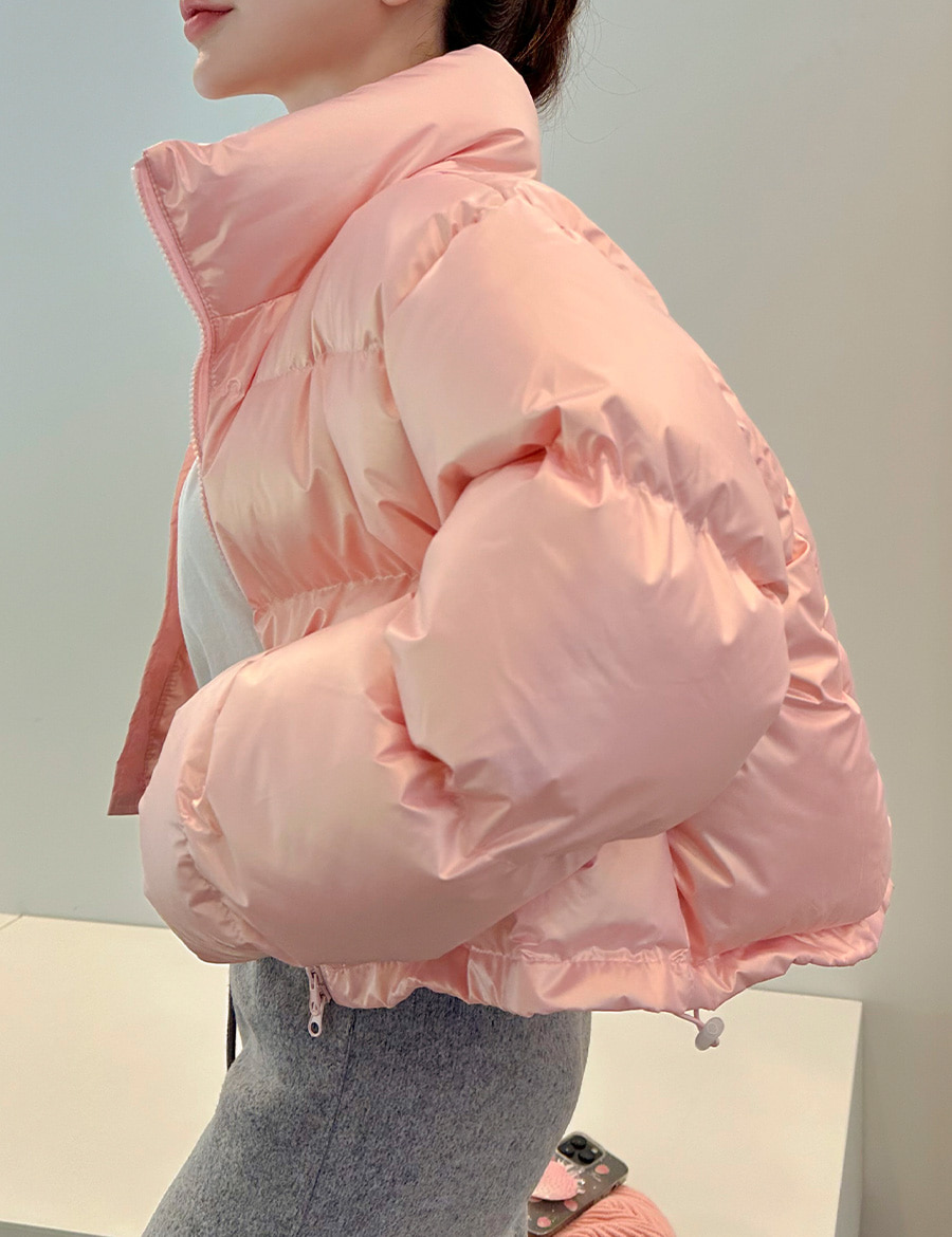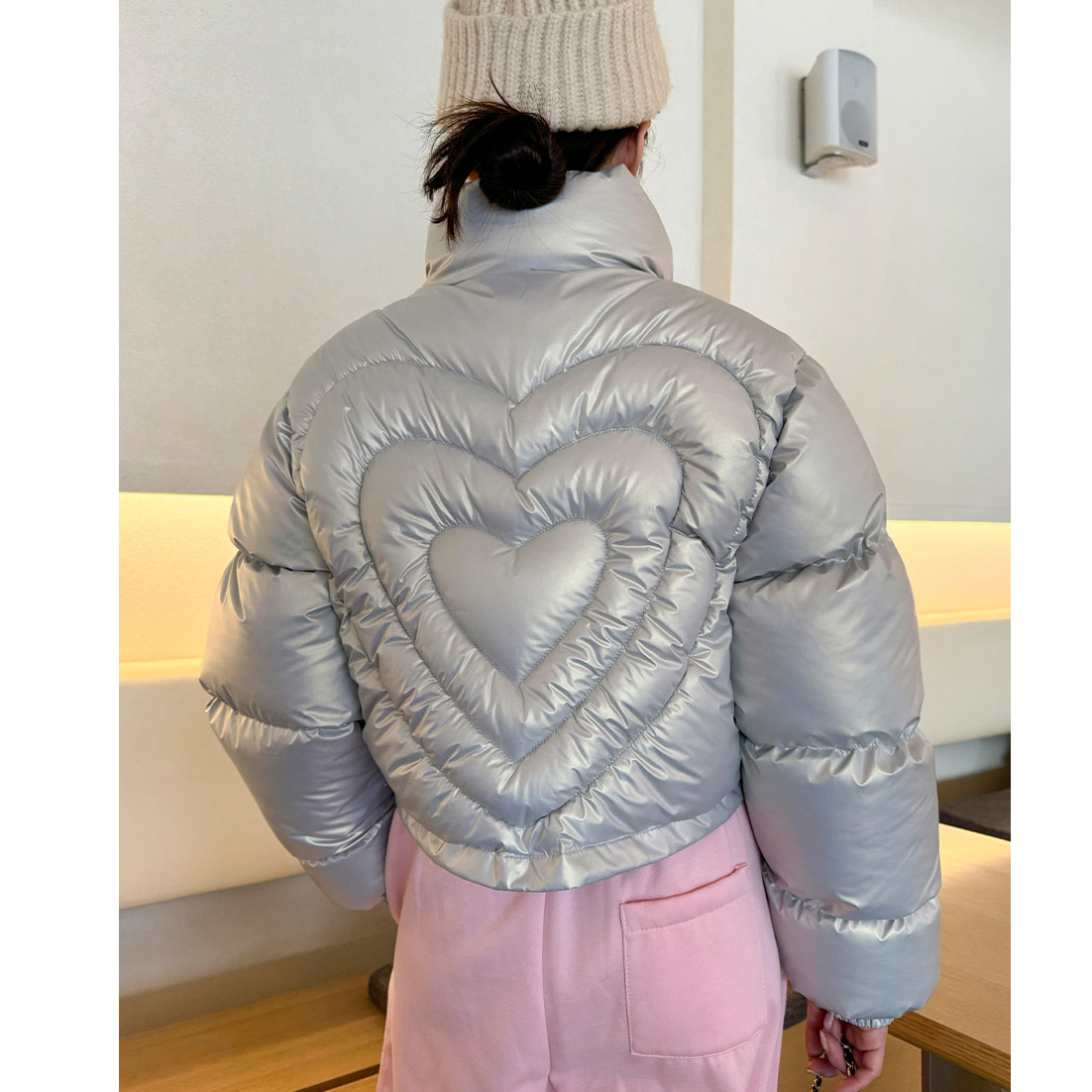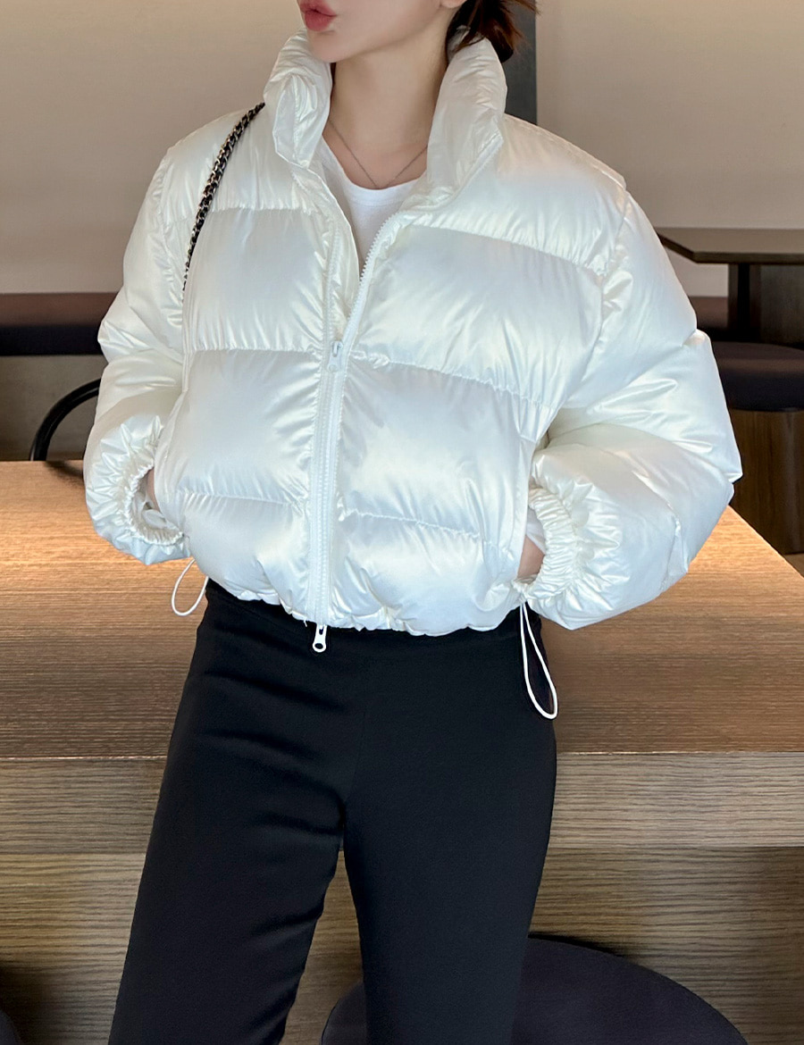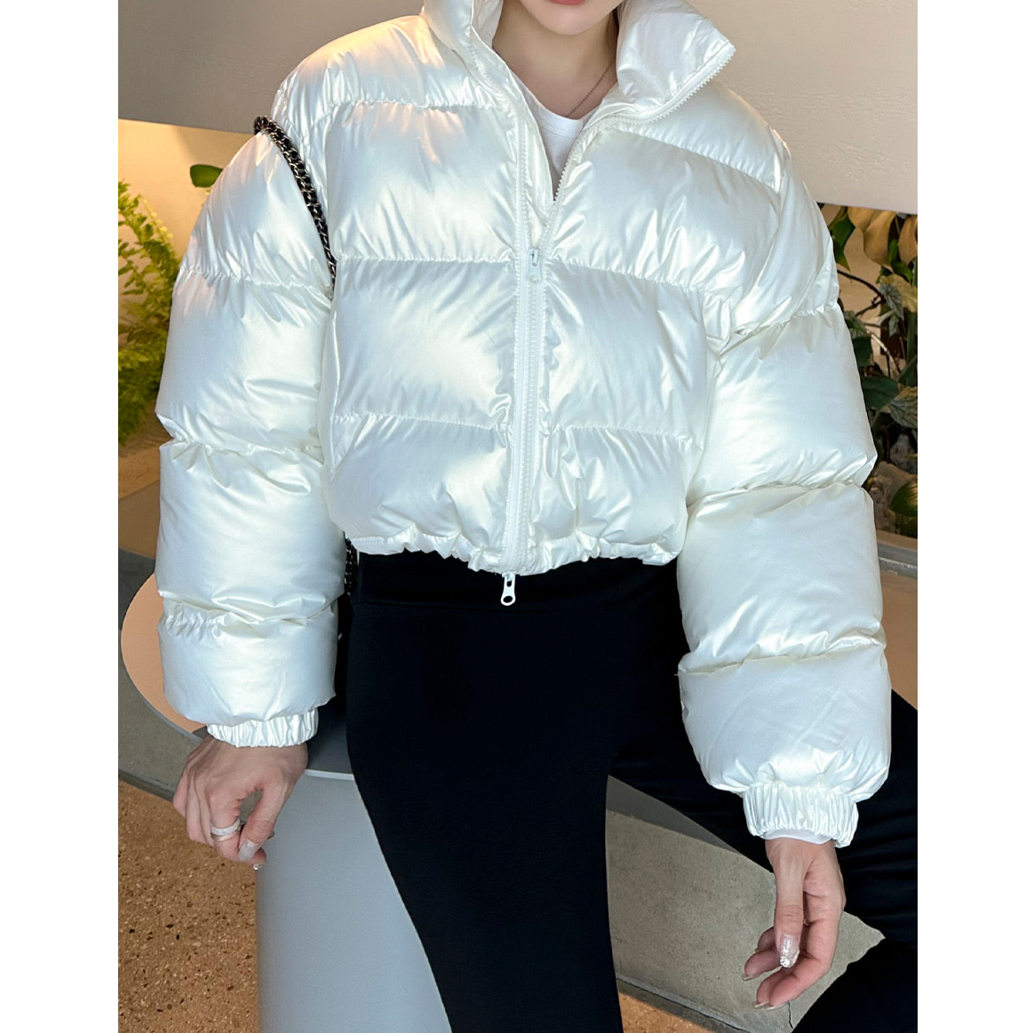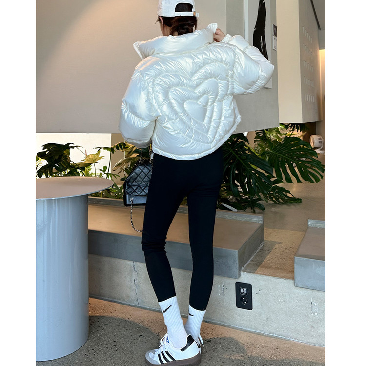 볼륨 하트 크롭 하이넥 유광 패딩 점퍼