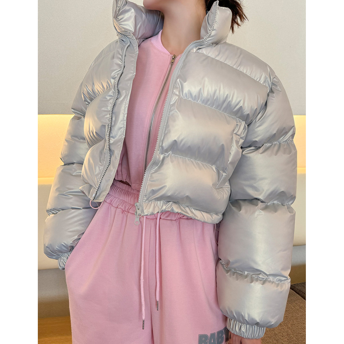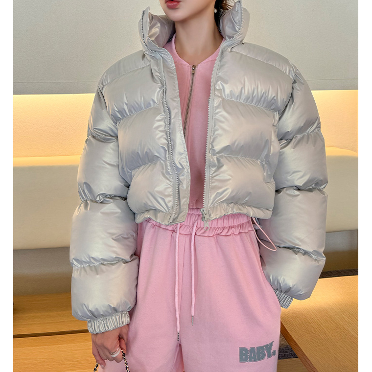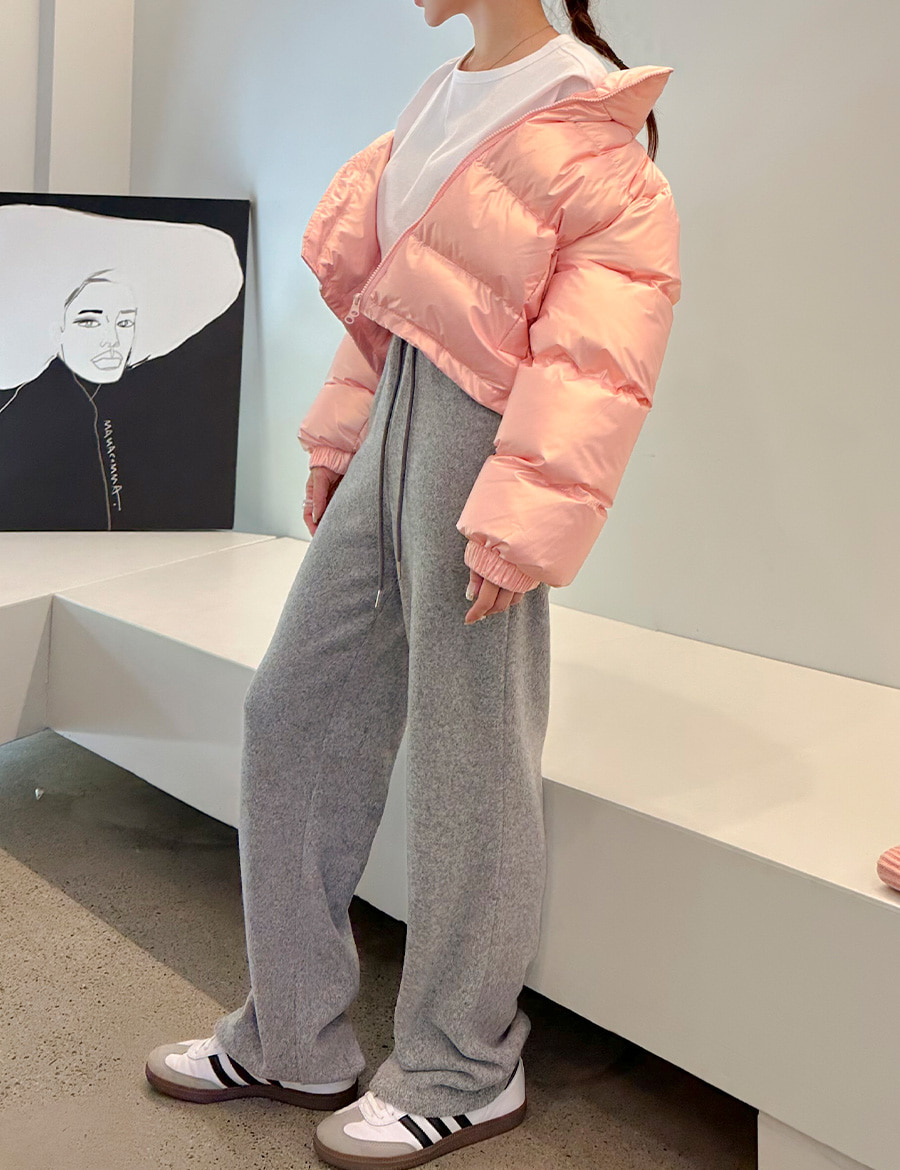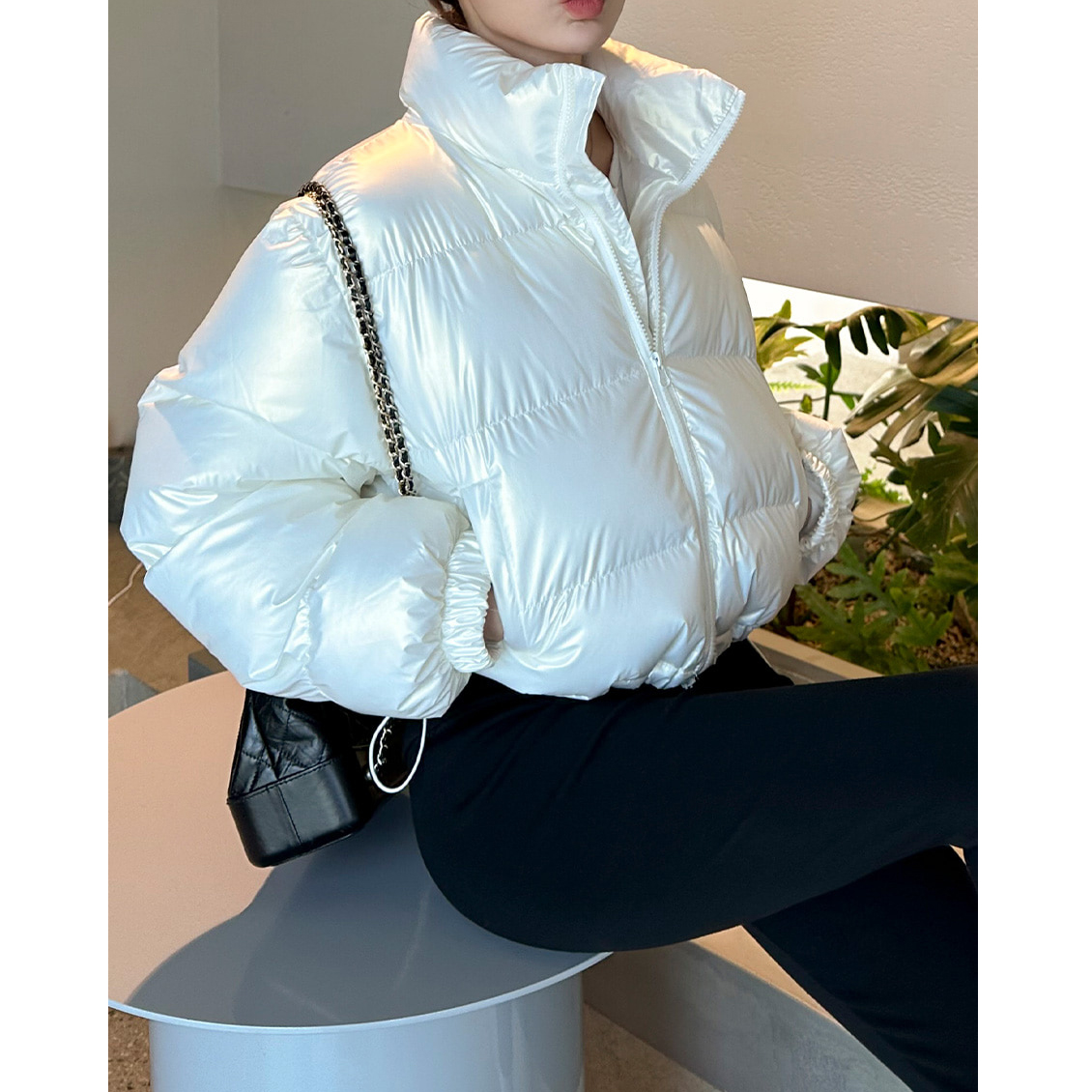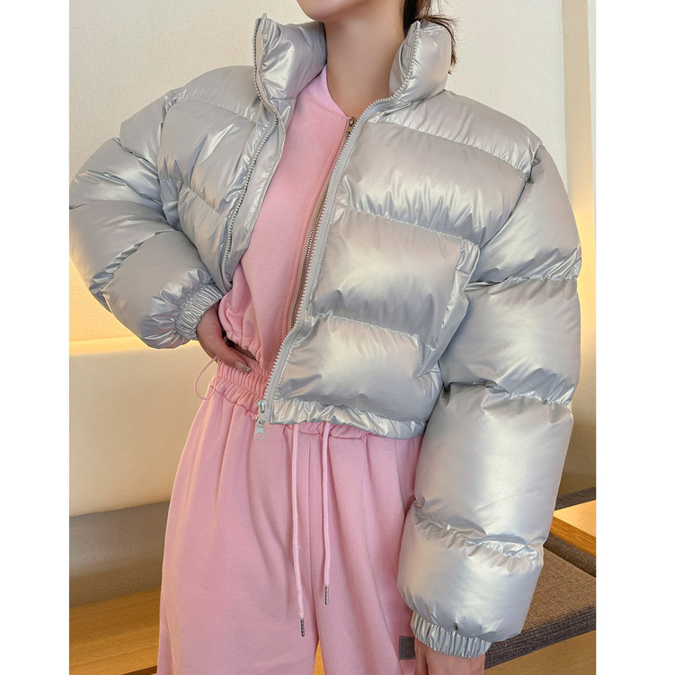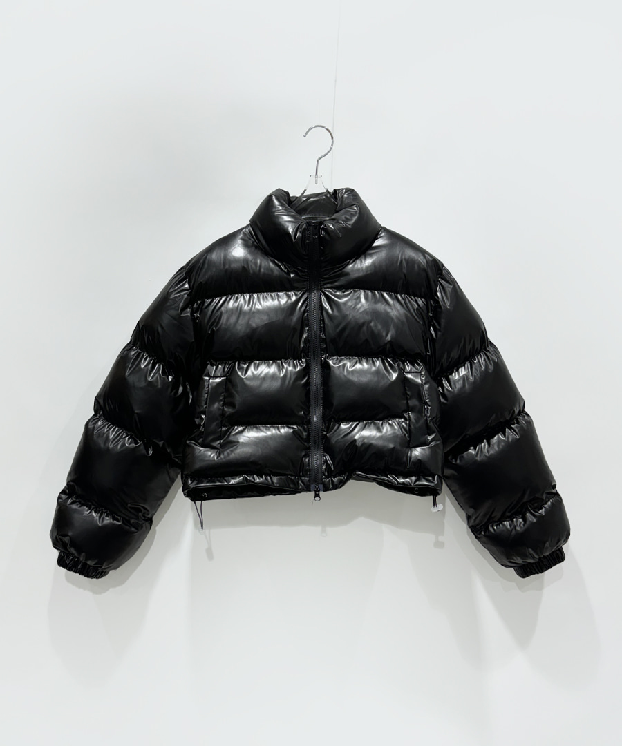 볼륨 하트 크롭 하이넥 유광 패딩 점퍼
