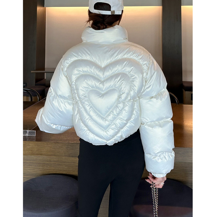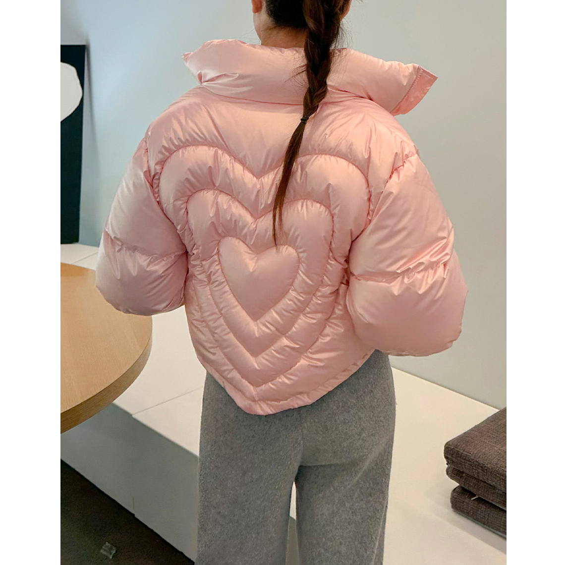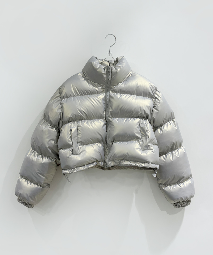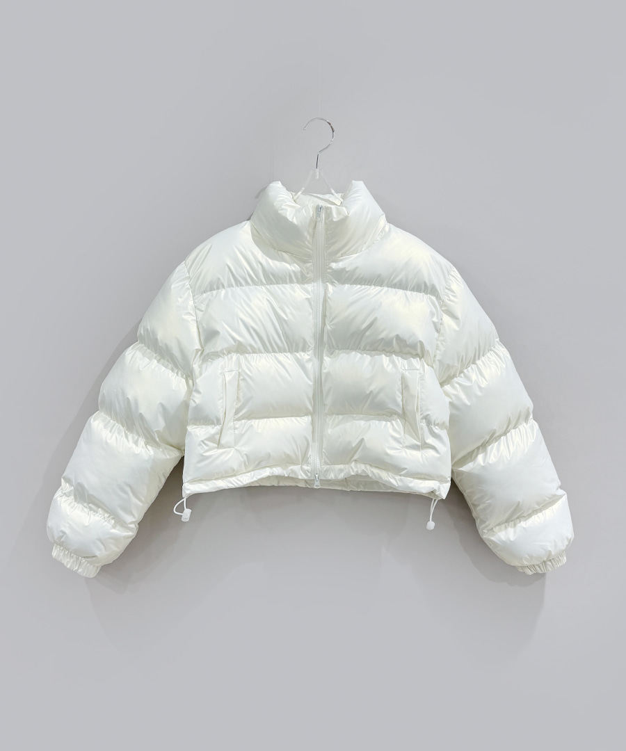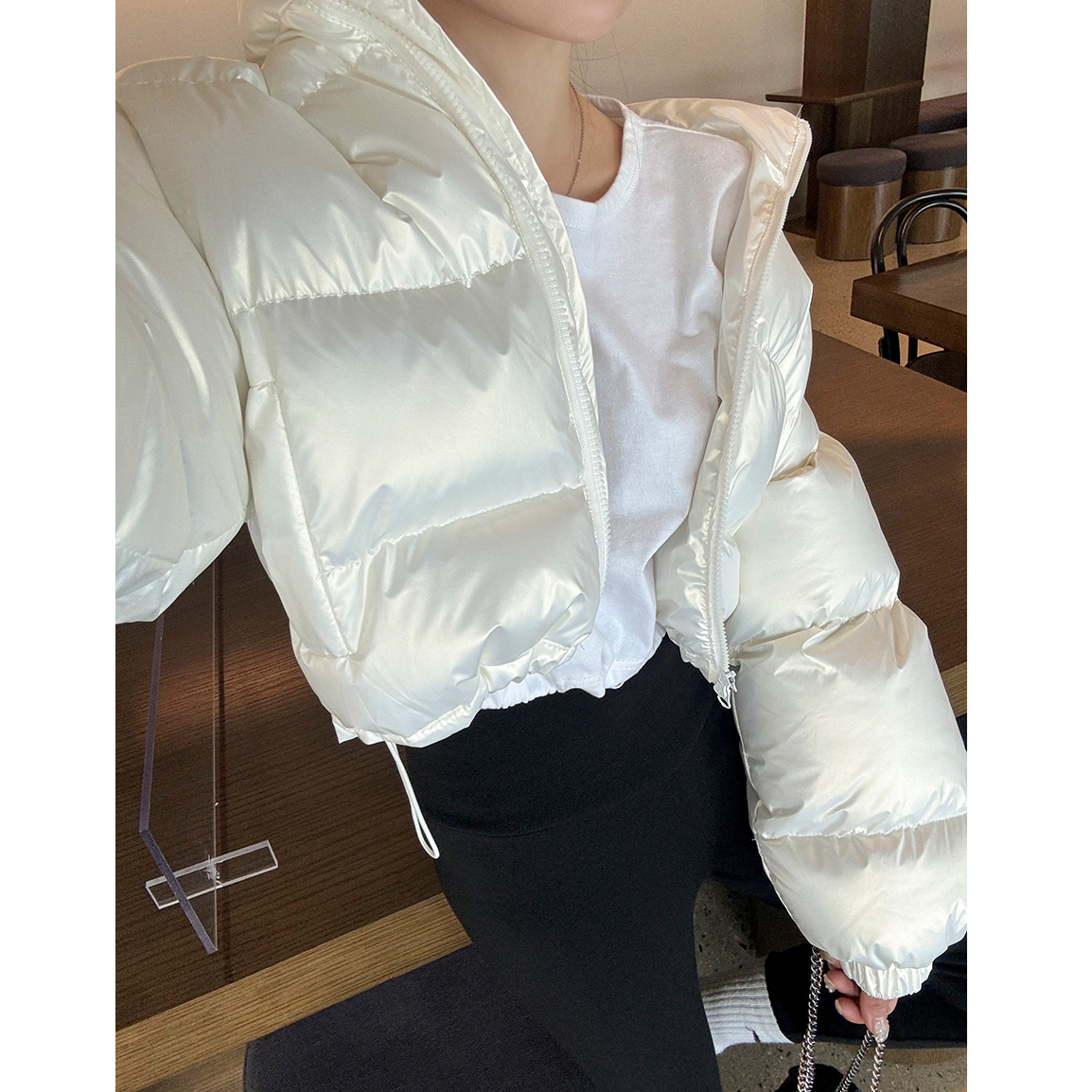 볼륨 하트 크롭 하이넥 유광 패딩 점퍼