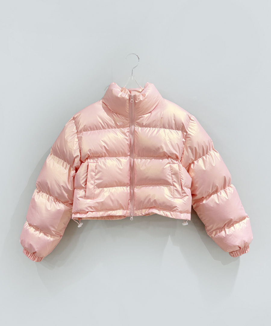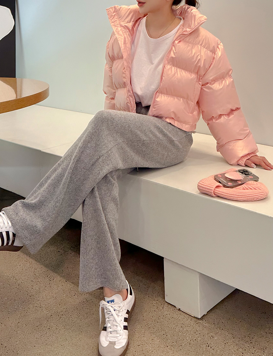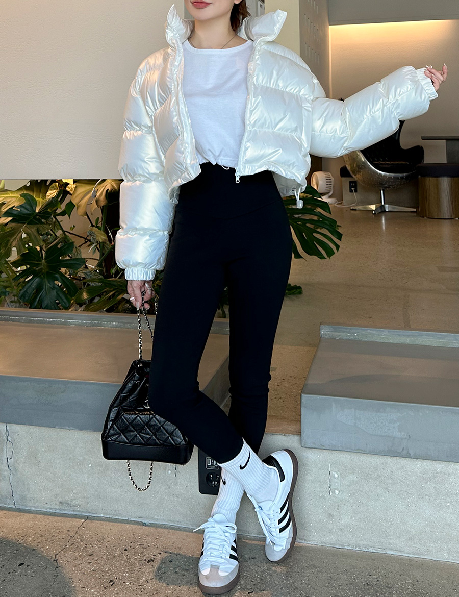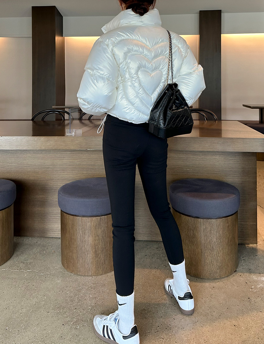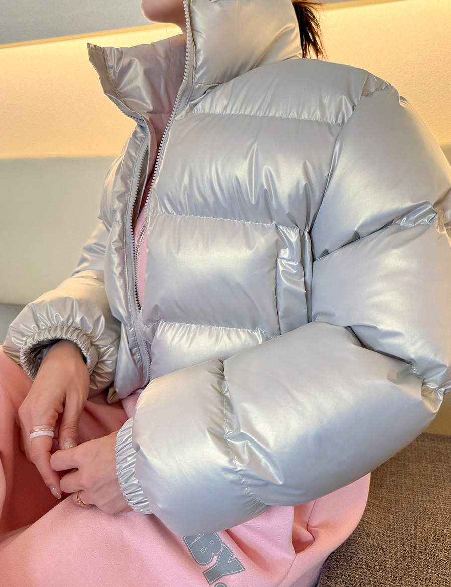 볼륨 하트 크롭 하이넥 유광 패딩 점퍼