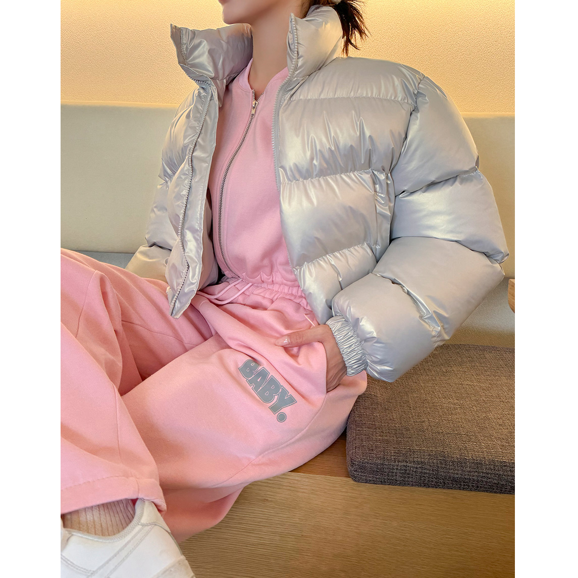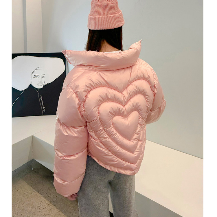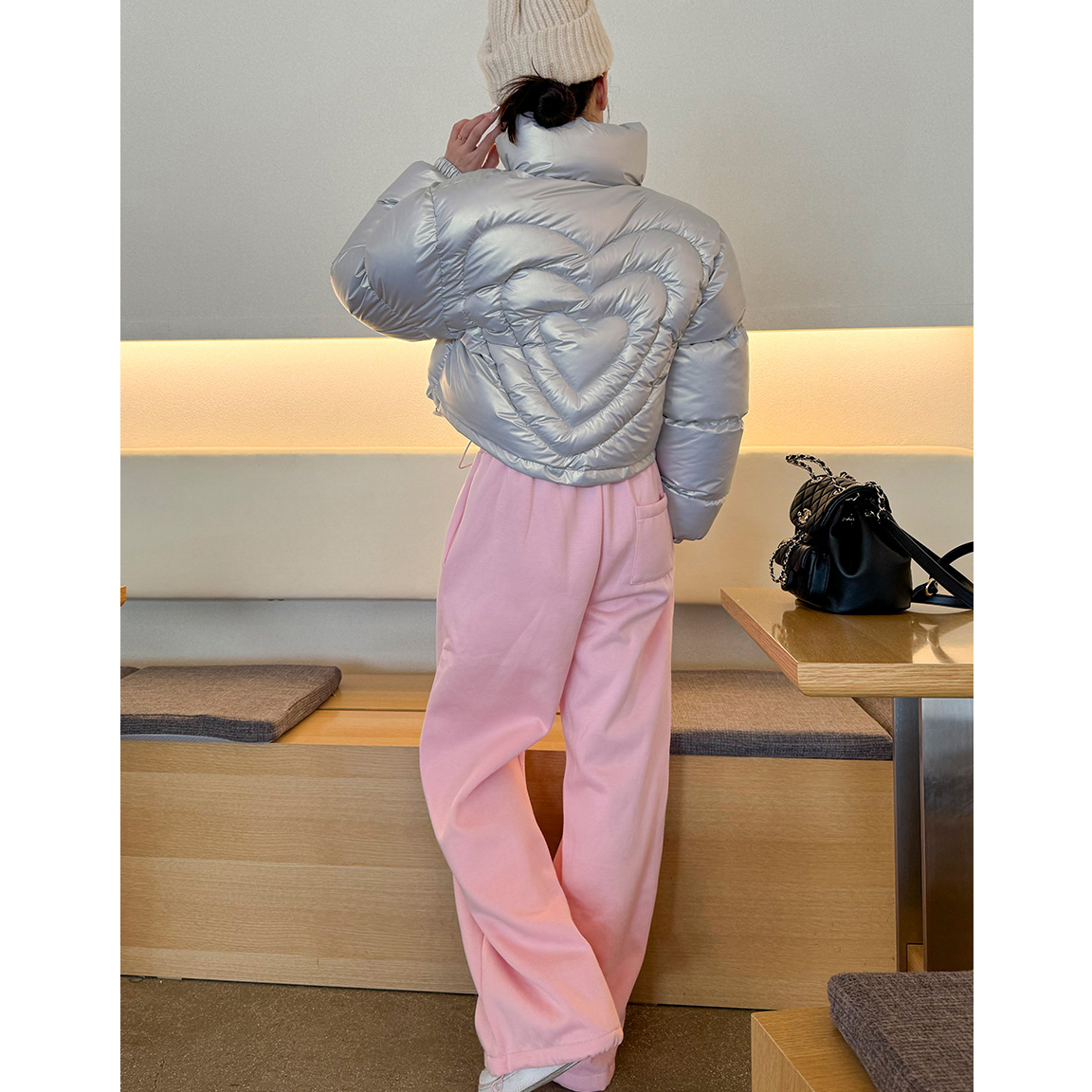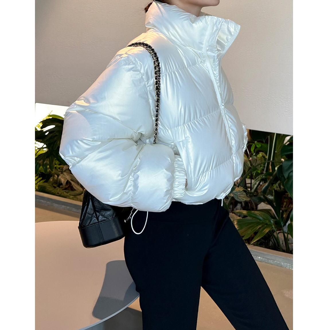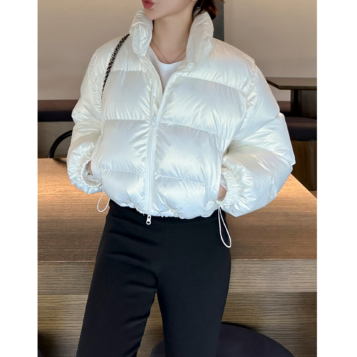볼륨 하트 크롭 하이넥 유광 패딩 점퍼