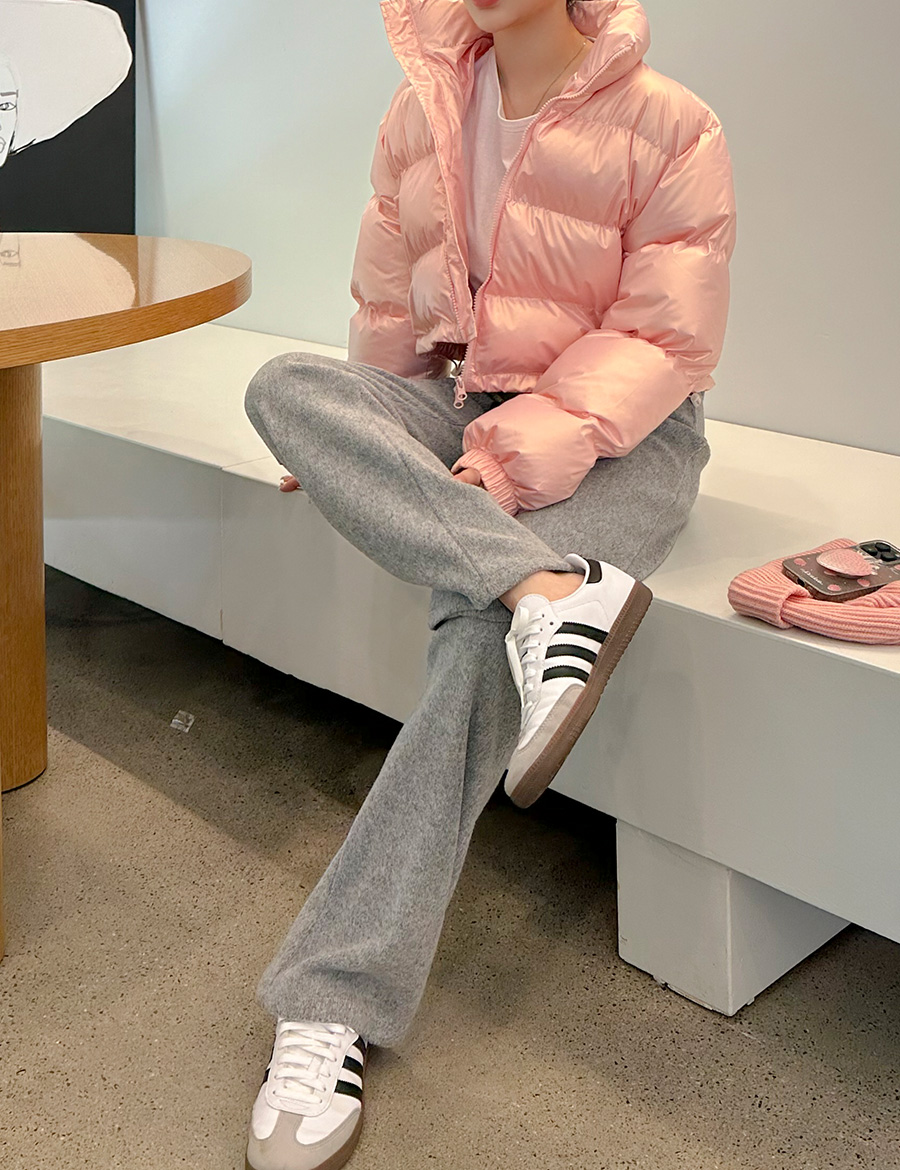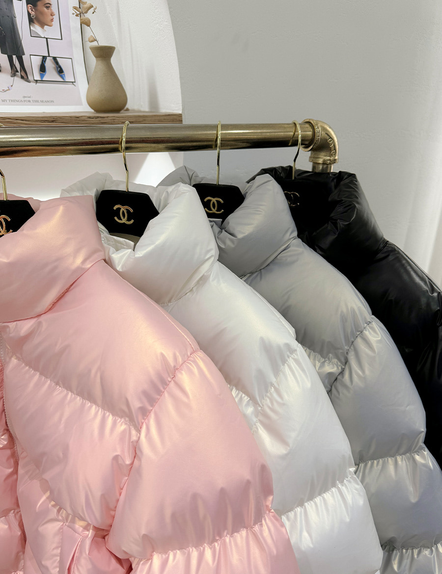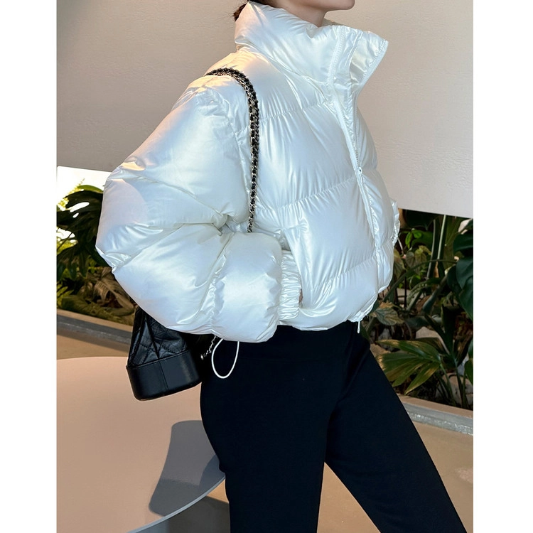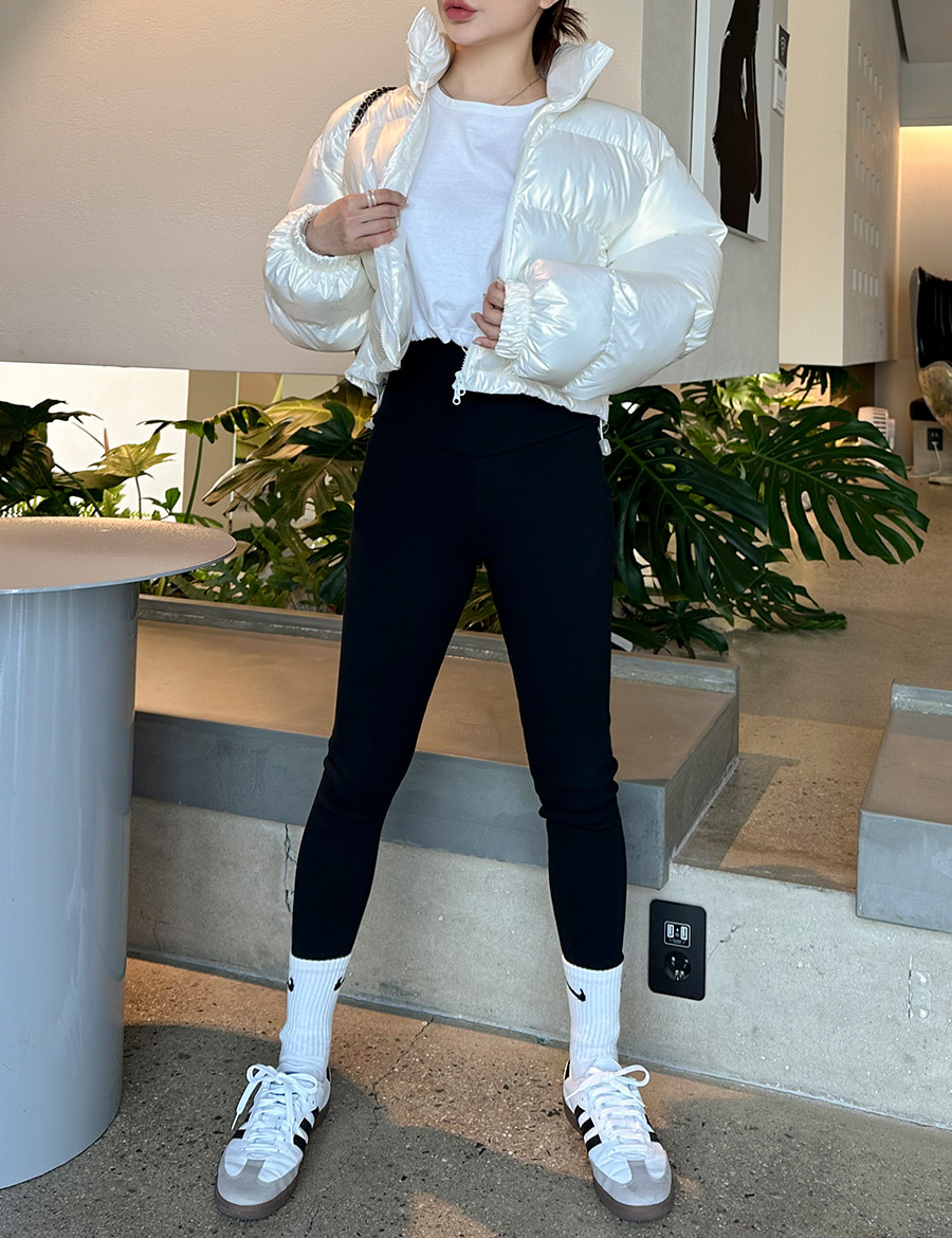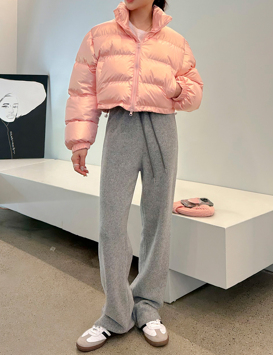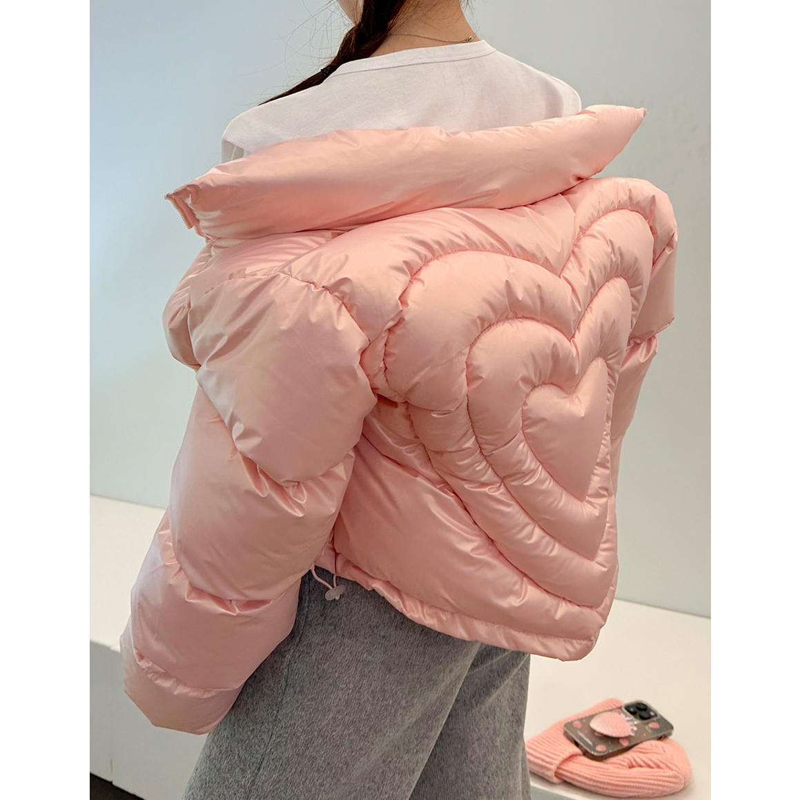 볼륨 하트 크롭 하이넥 유광 패딩 점퍼