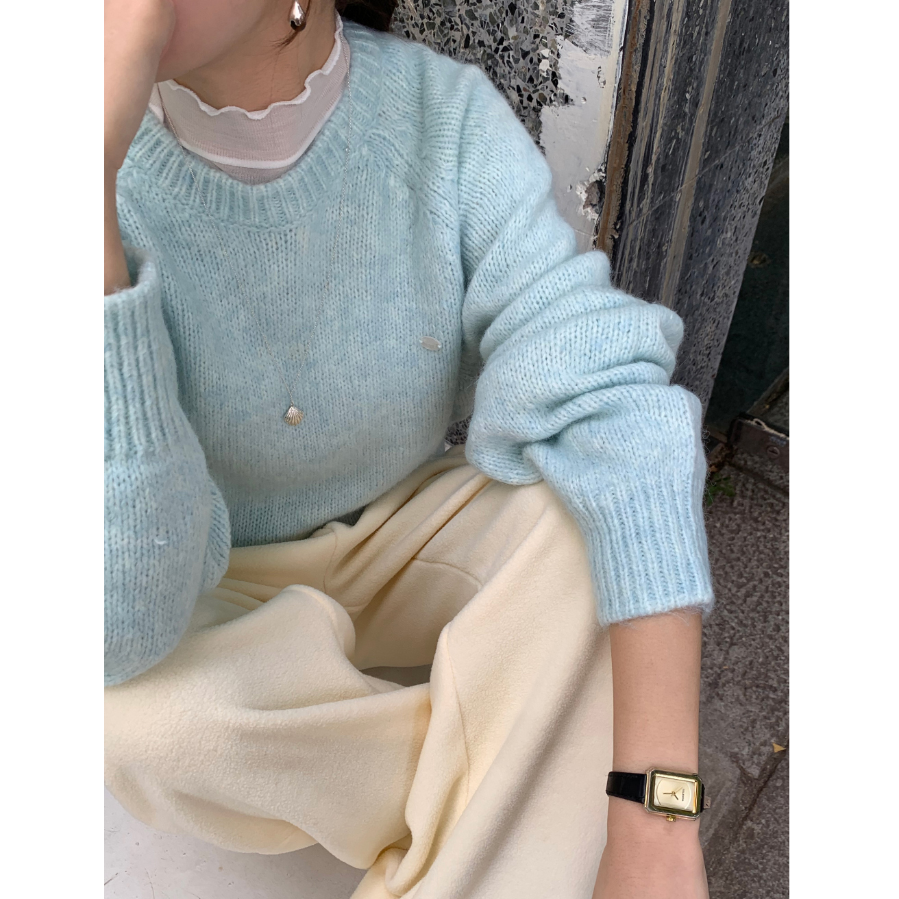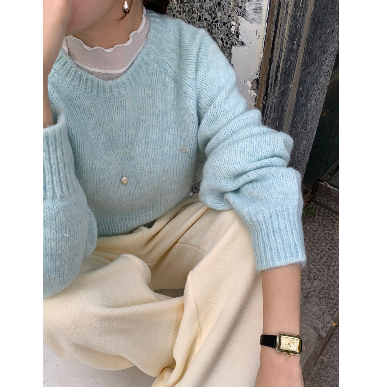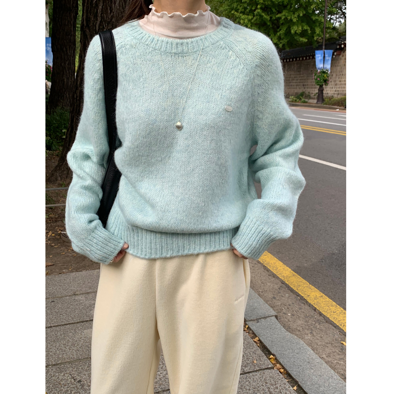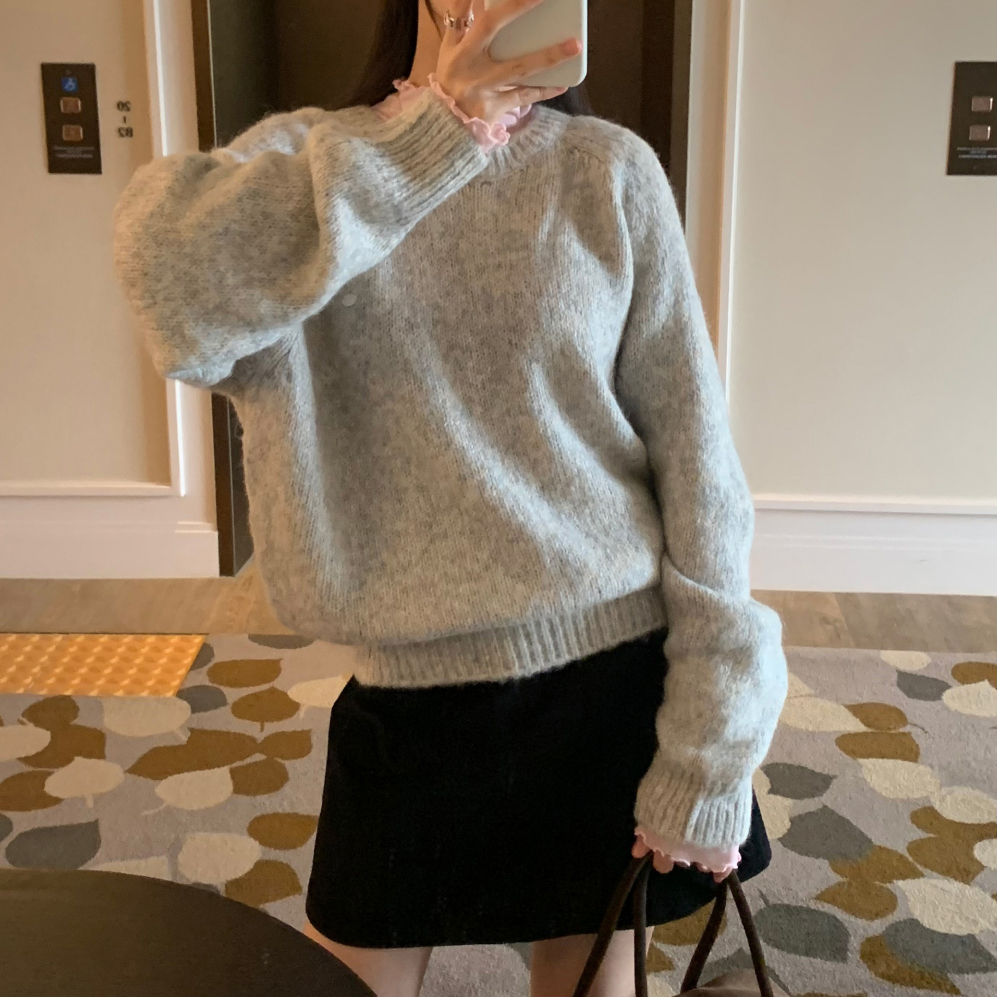 뿌요 부드러운 파스텔 라운드 니트