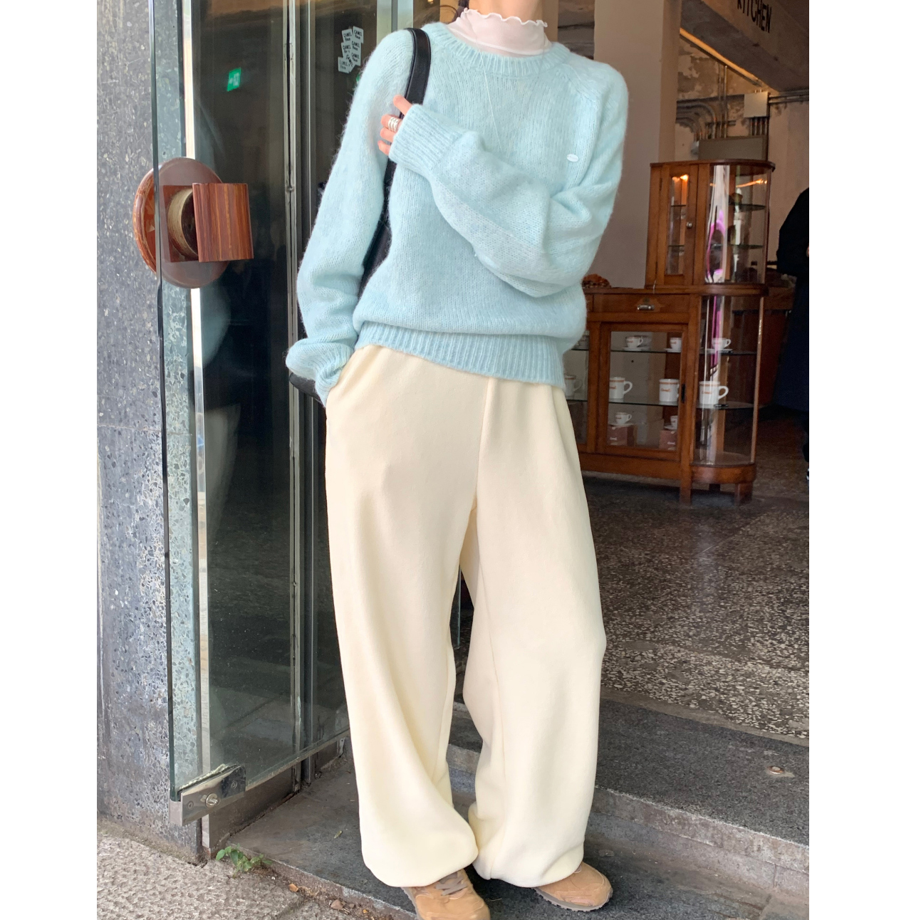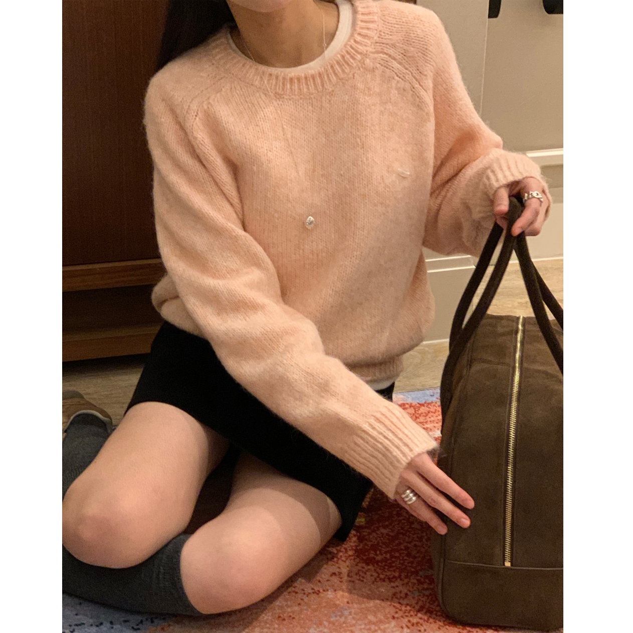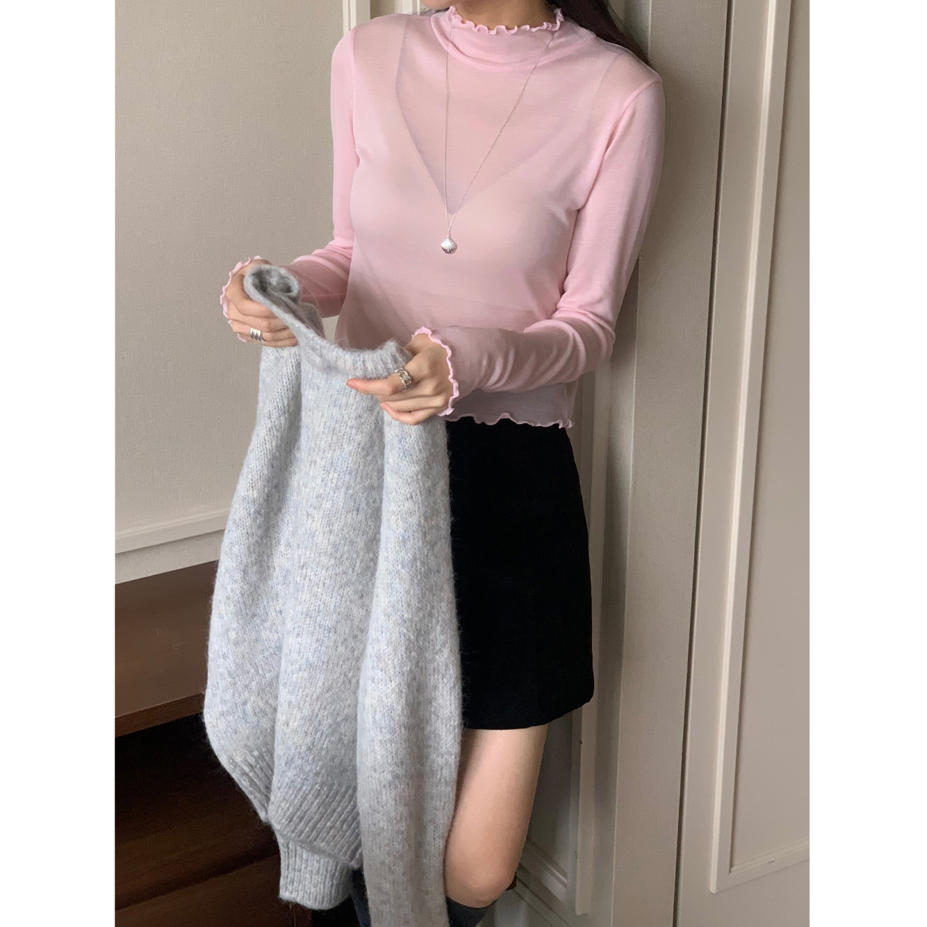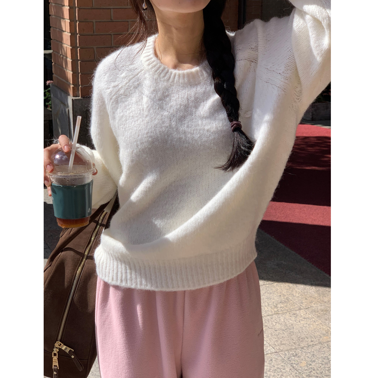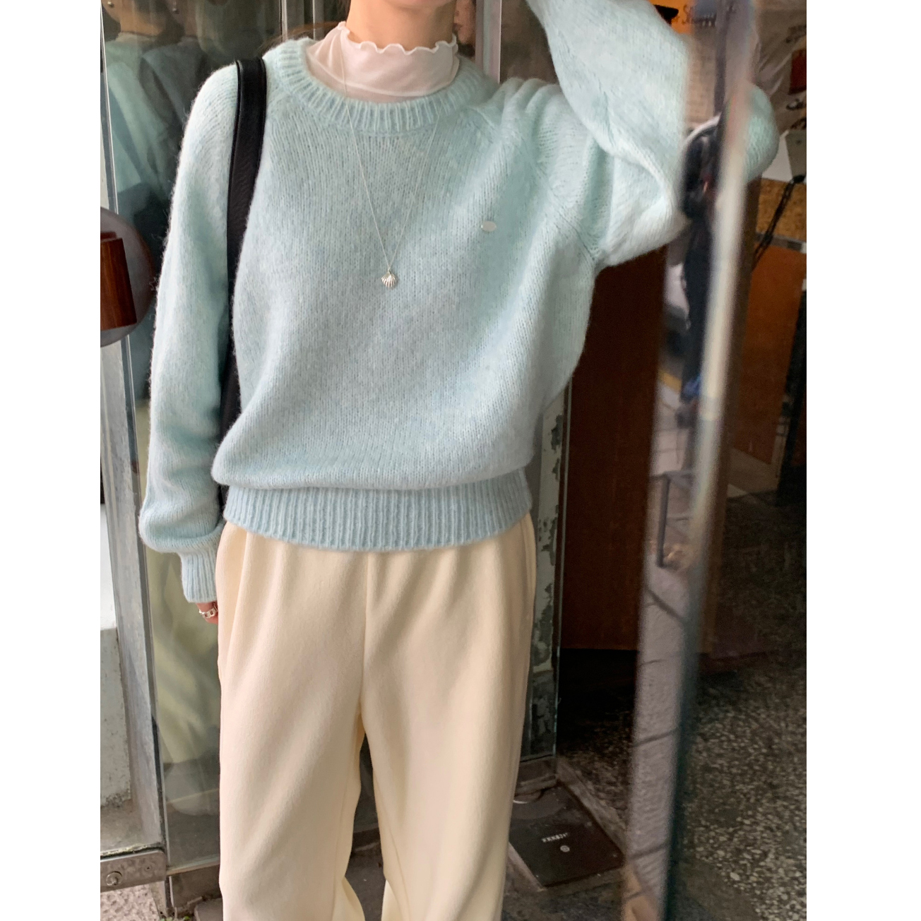 뿌요 부드러운 파스텔 라운드 니트