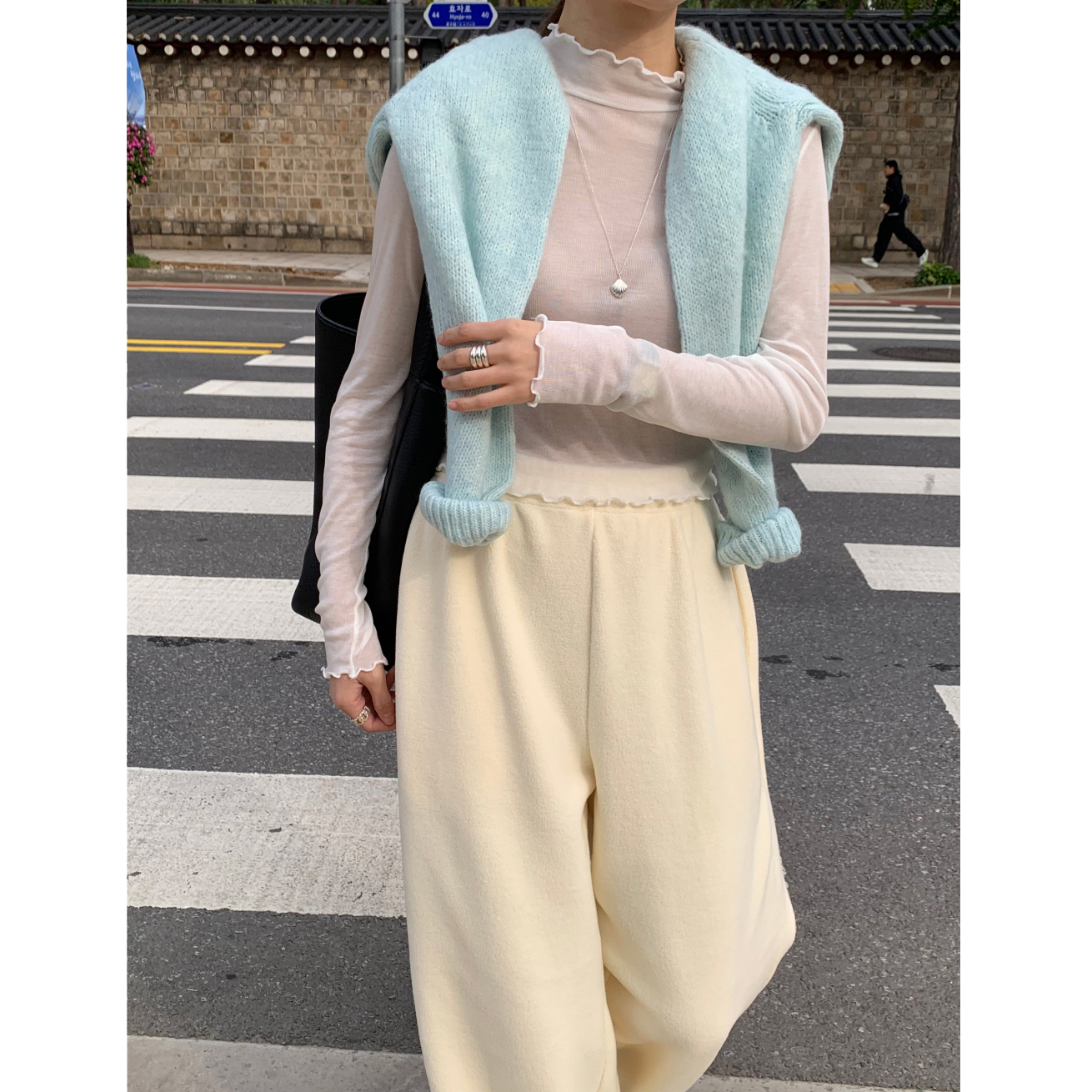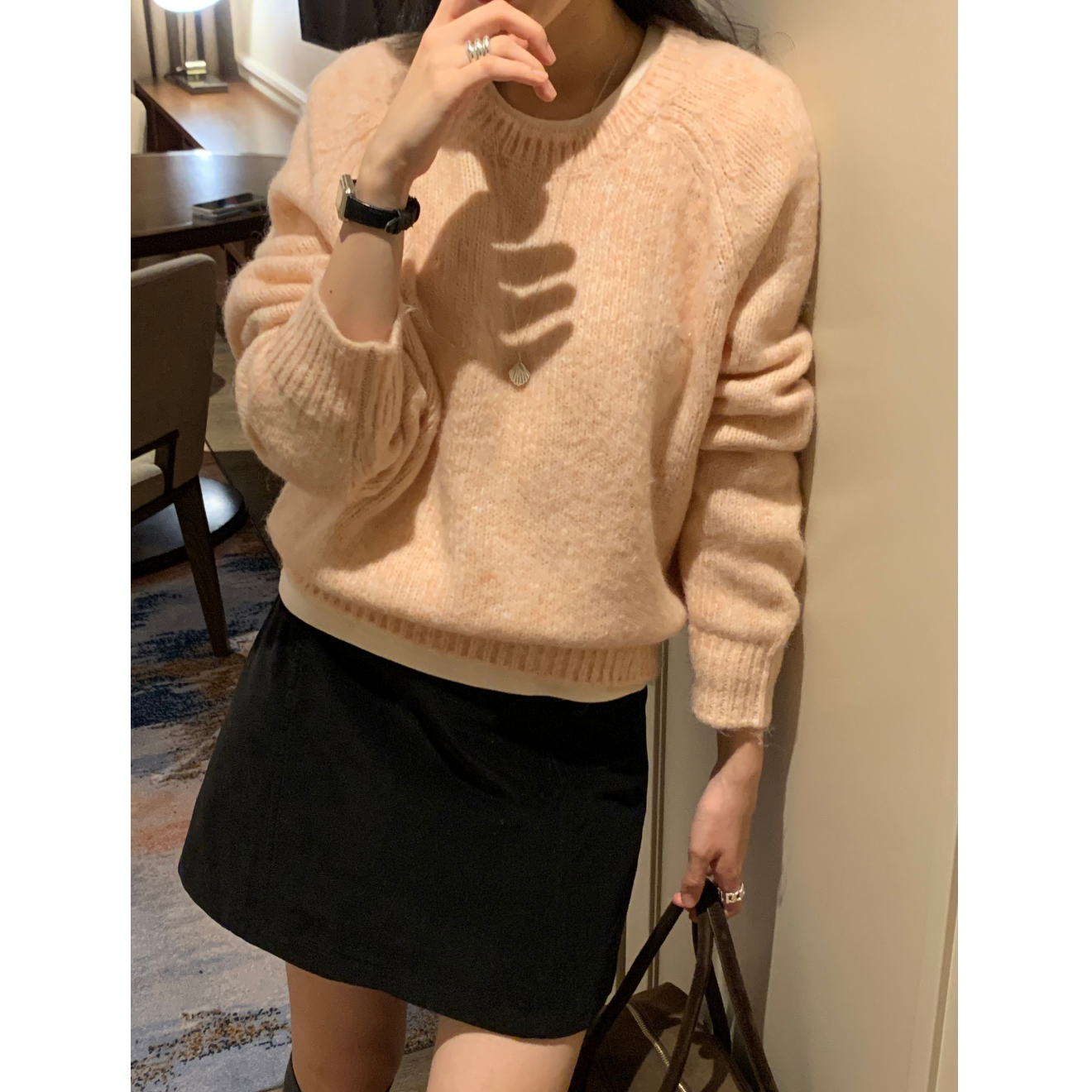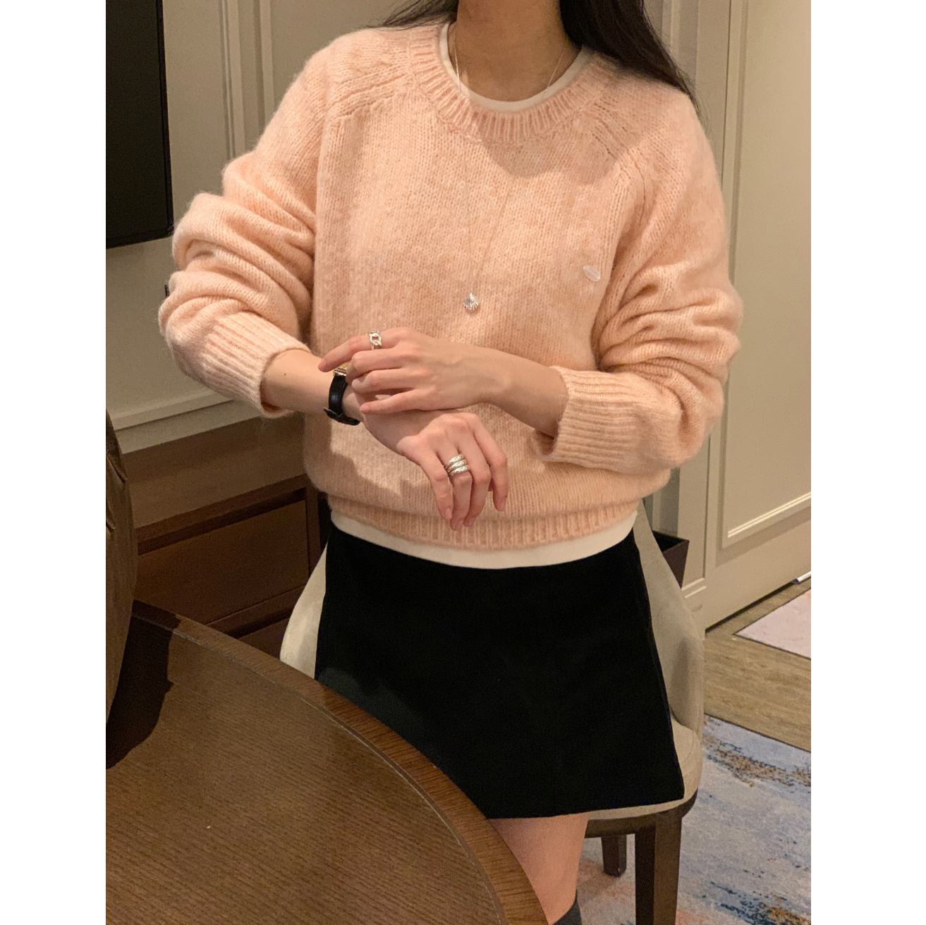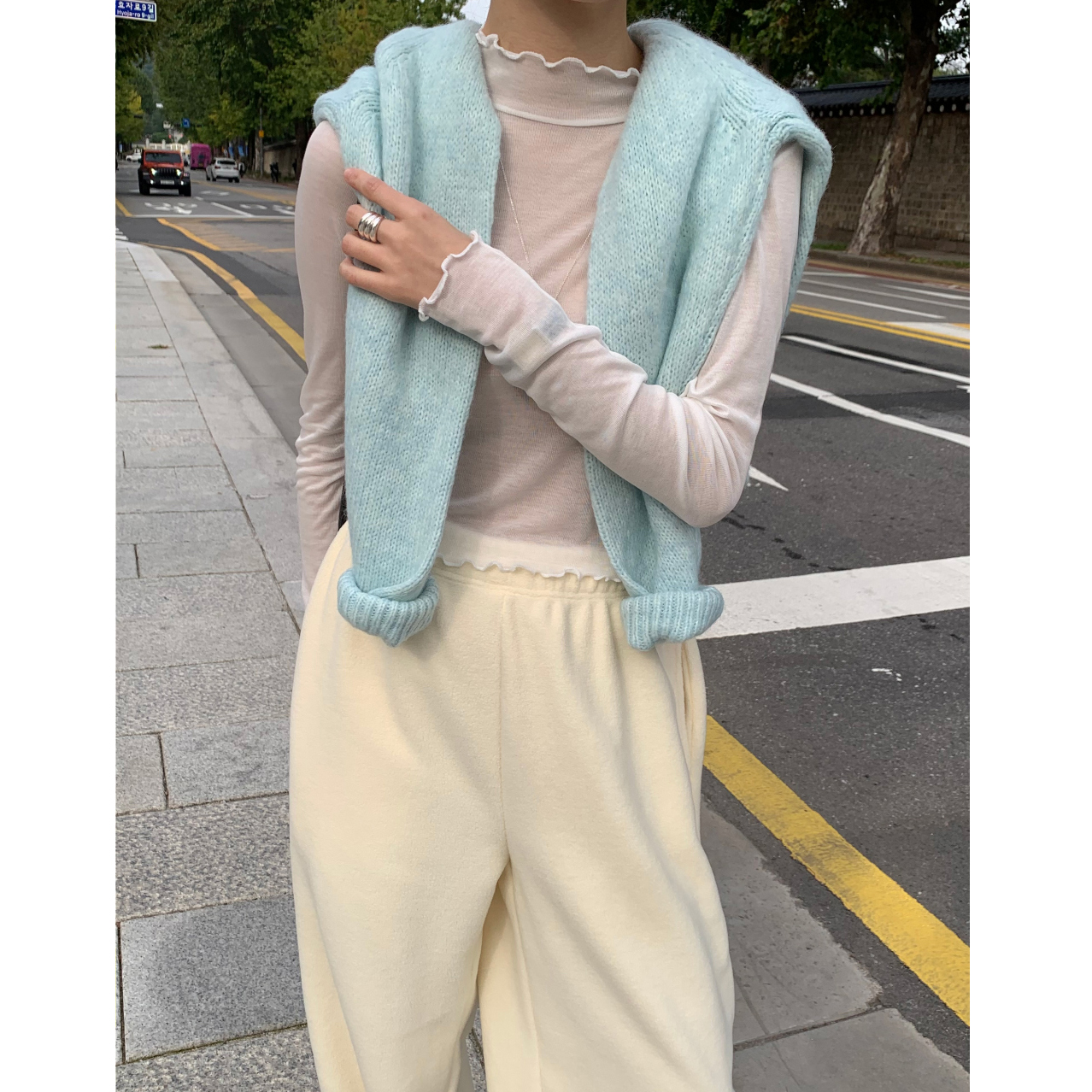 뿌요 부드러운 파스텔 라운드 니트
