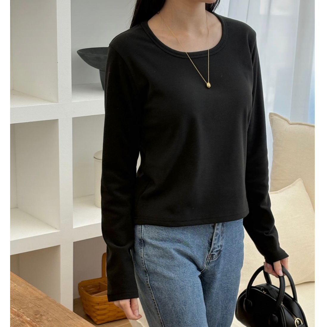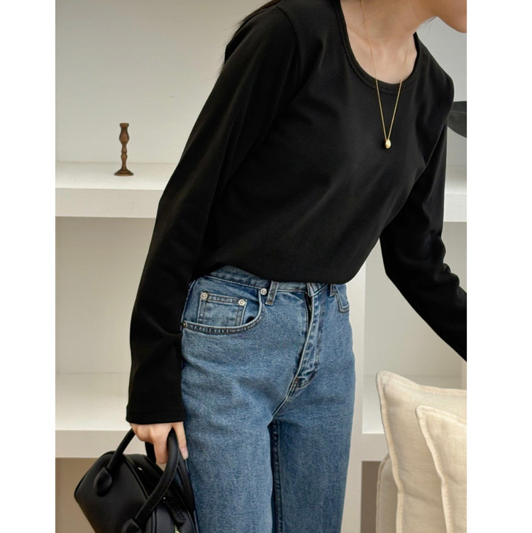 리송 기본핏 긴팔 기모 티셔츠