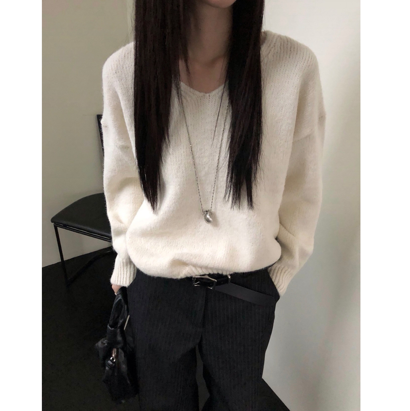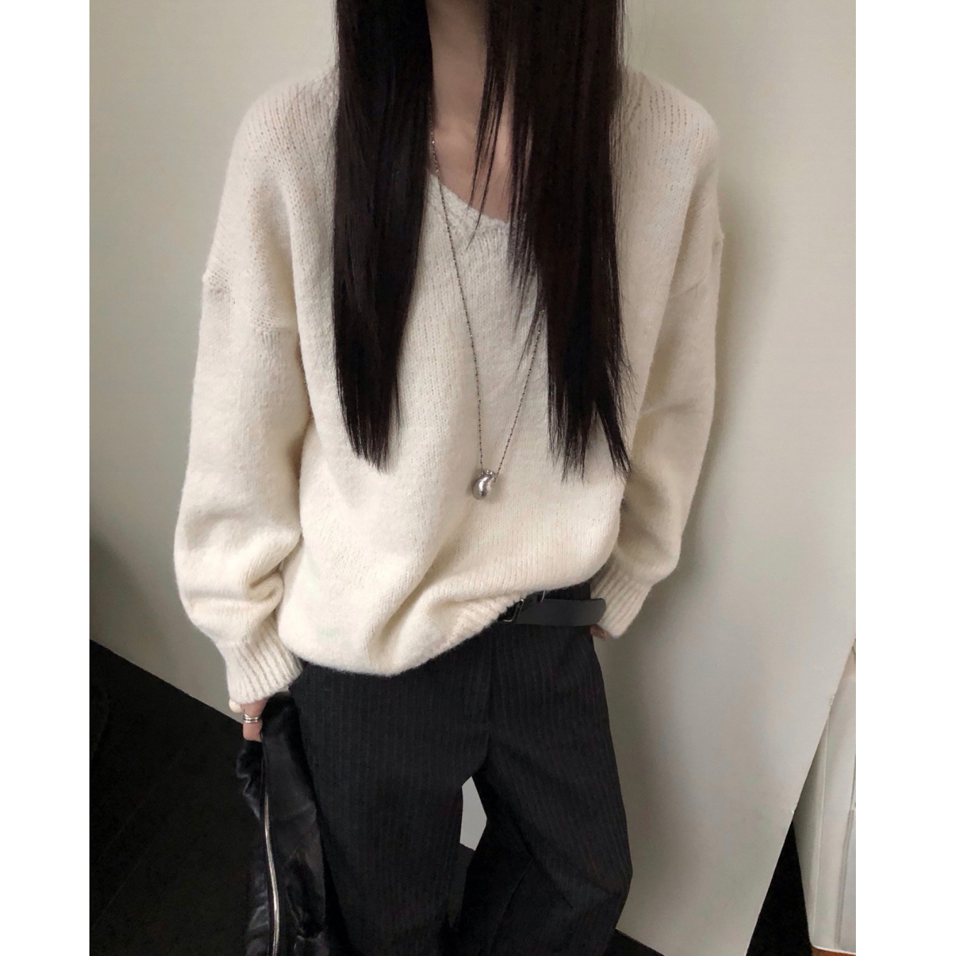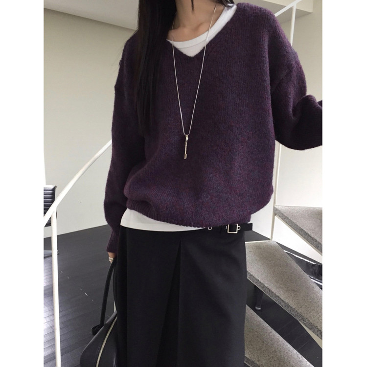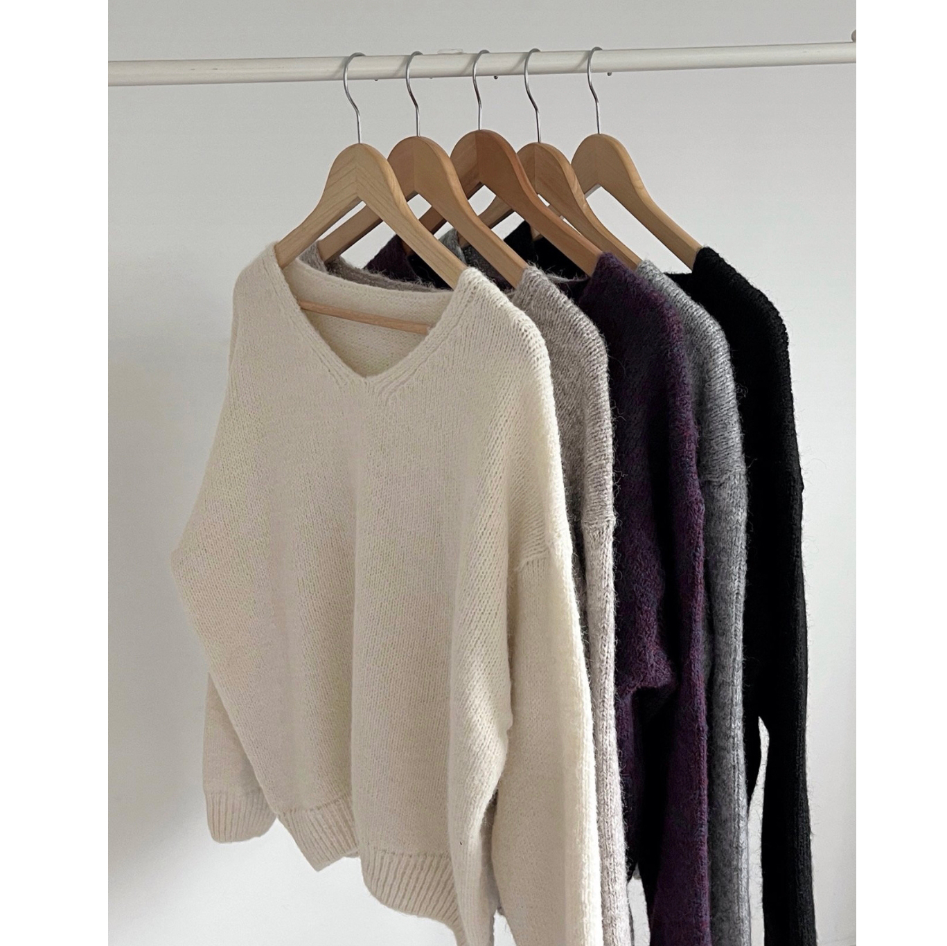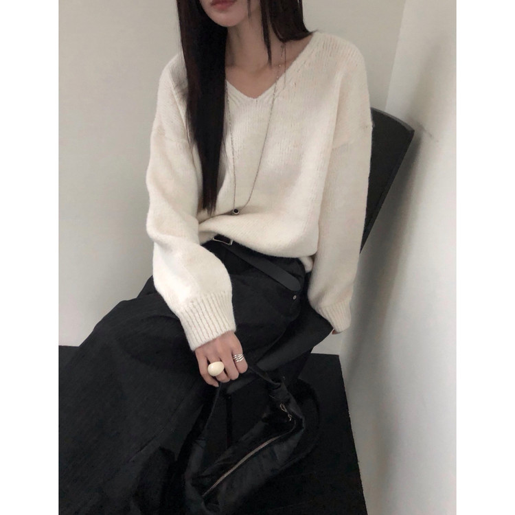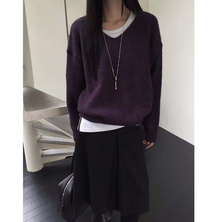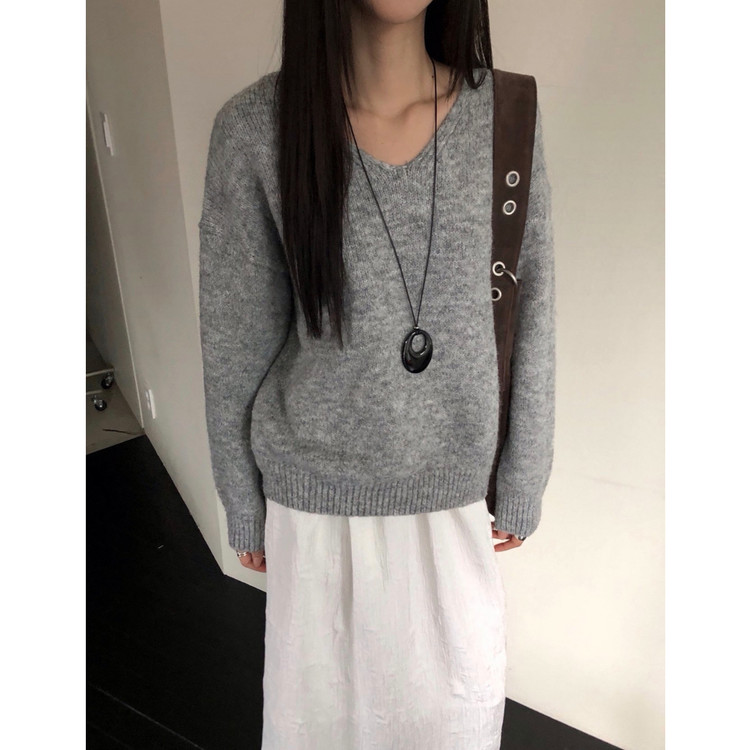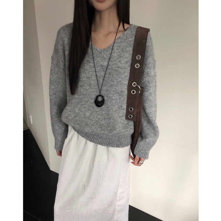 긱 루즈핏 브이넥 울 기본 니트