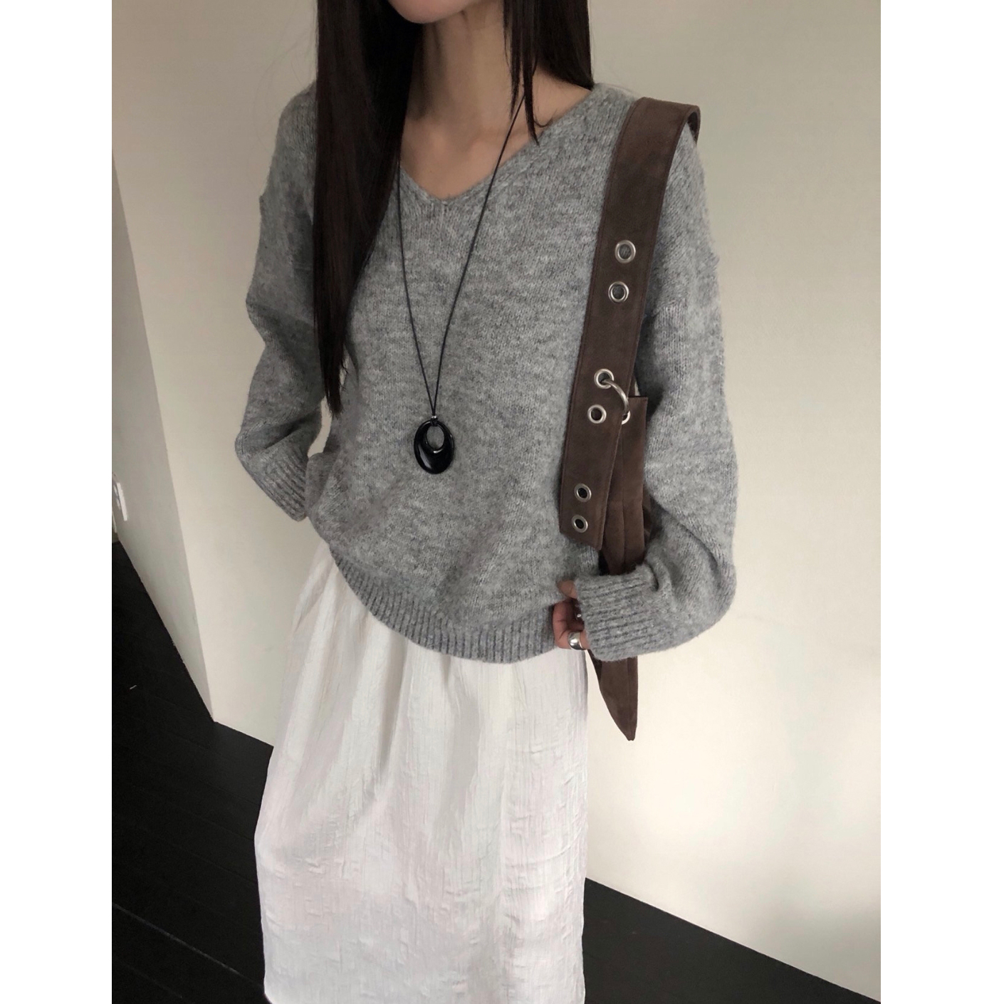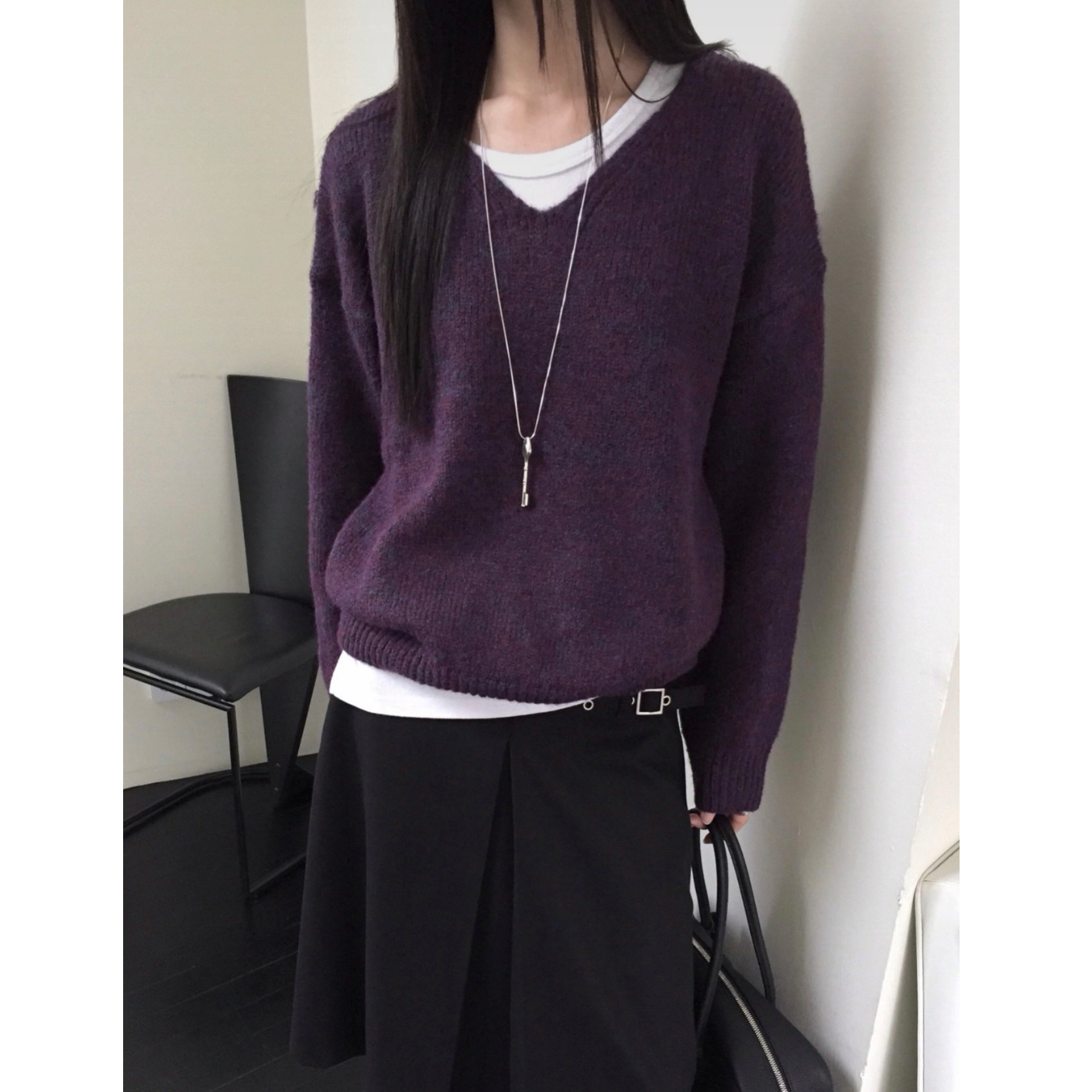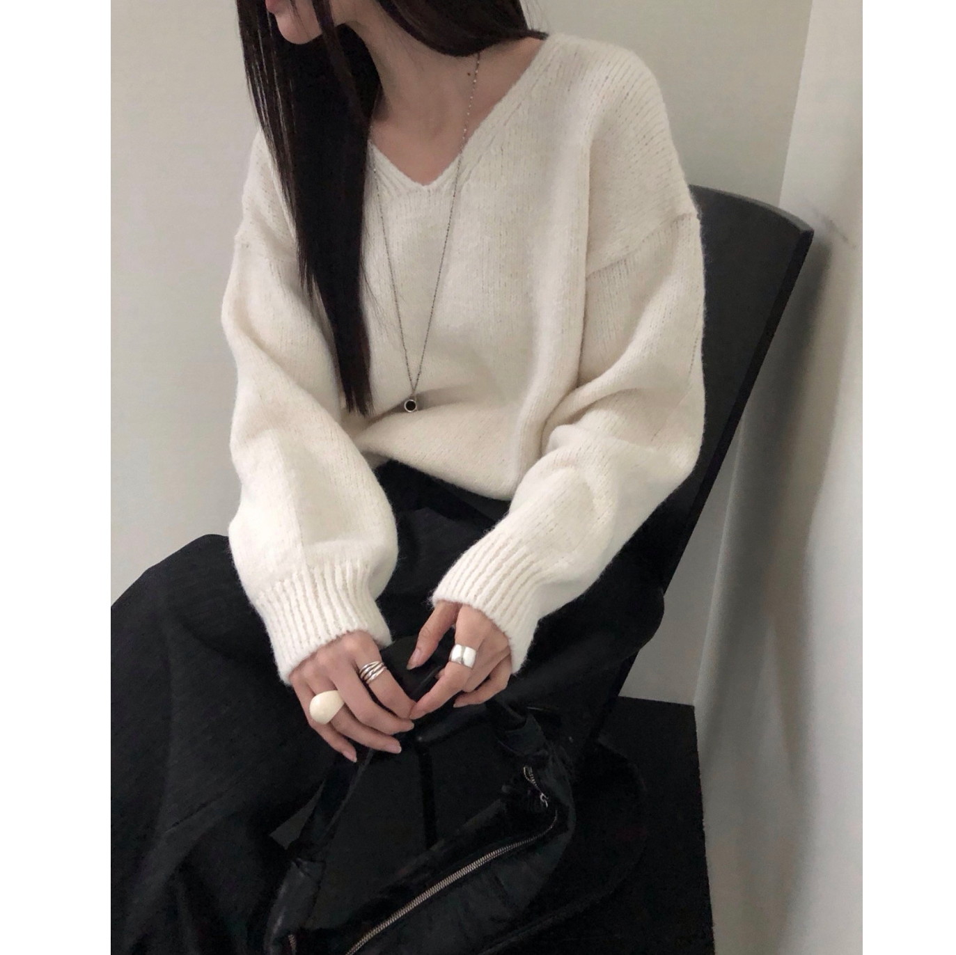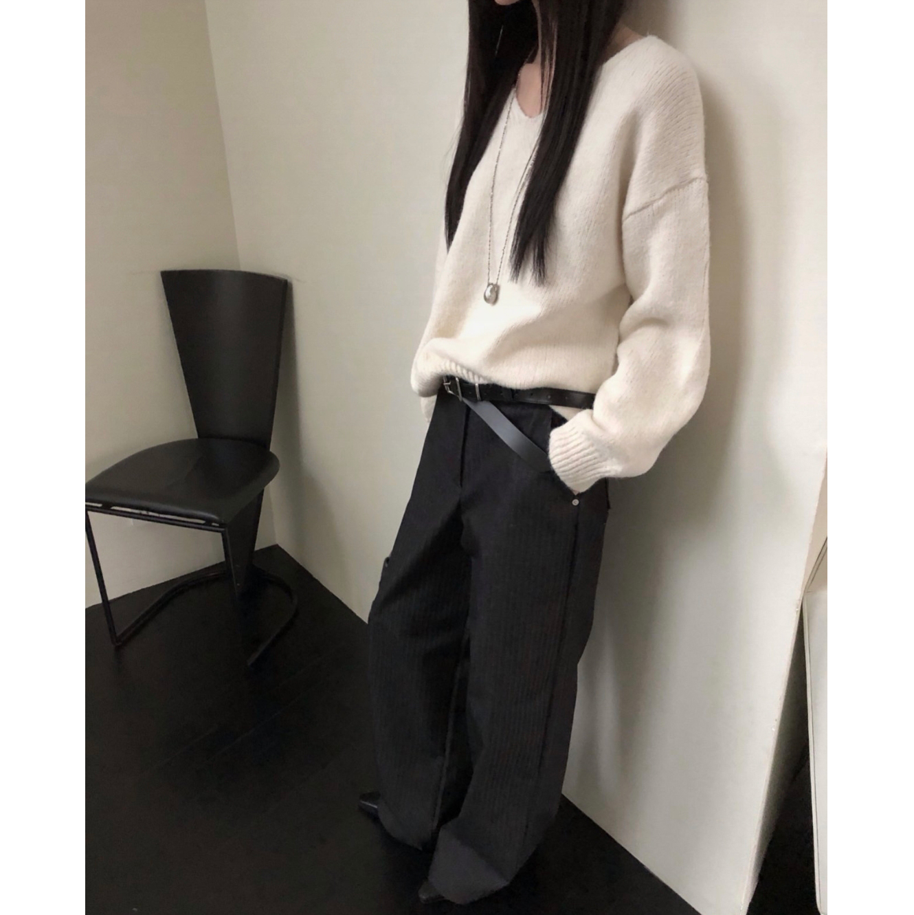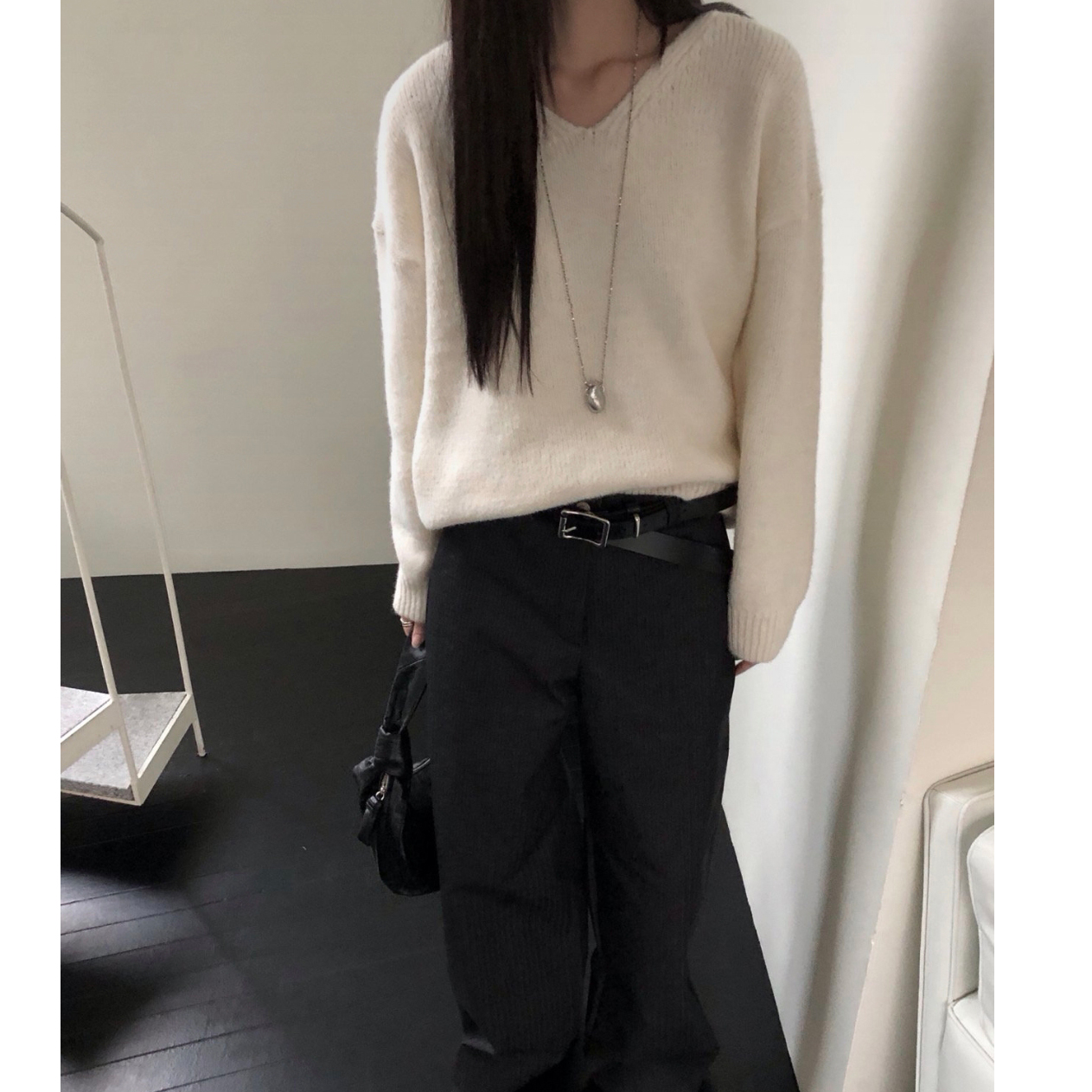 긱 루즈핏 브이넥 울 기본 니트