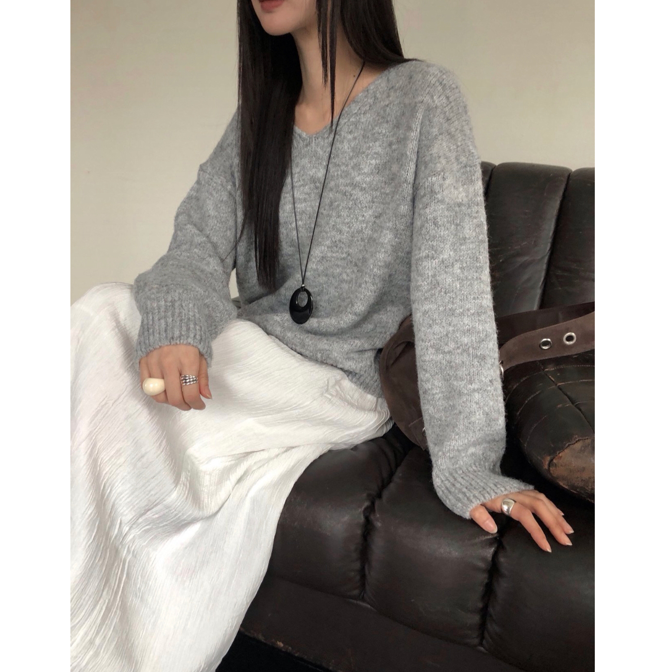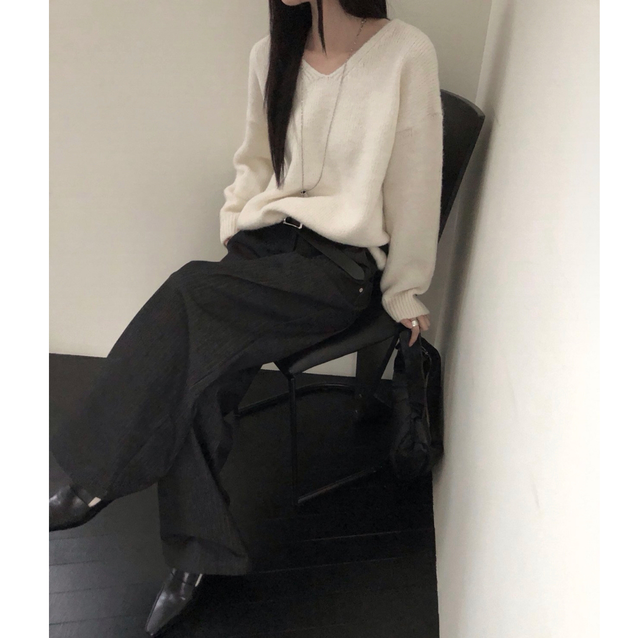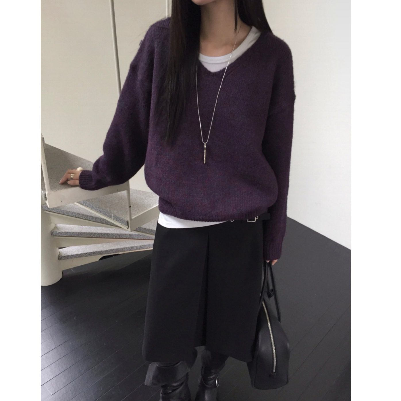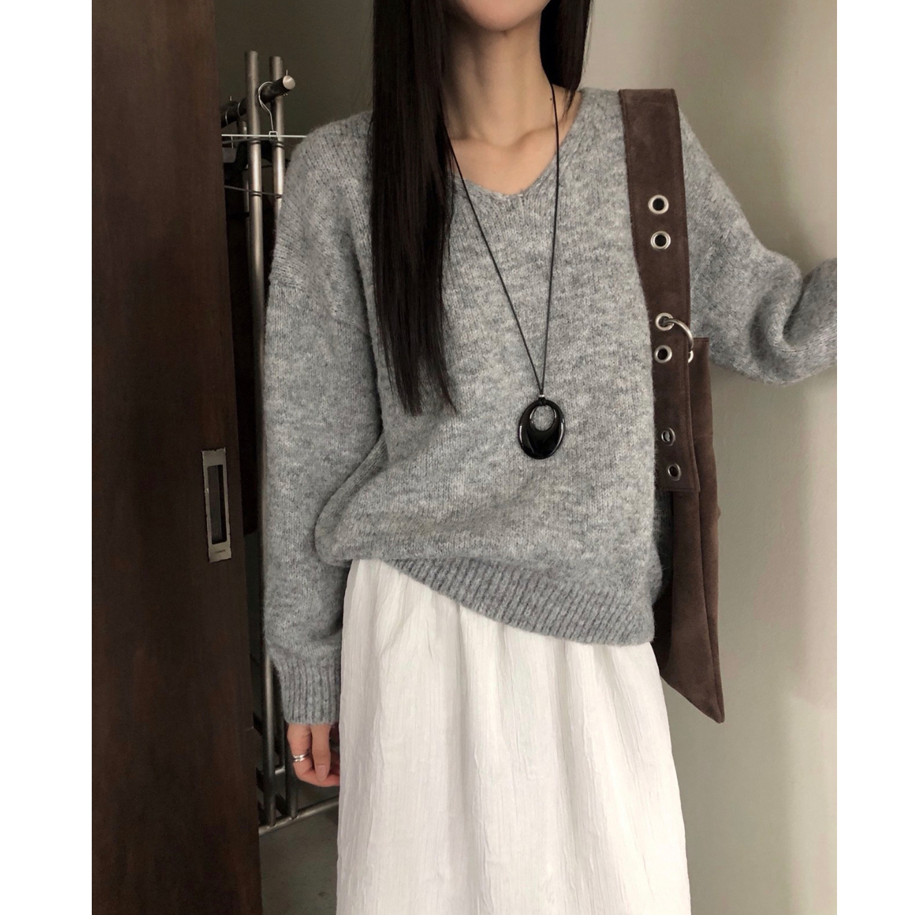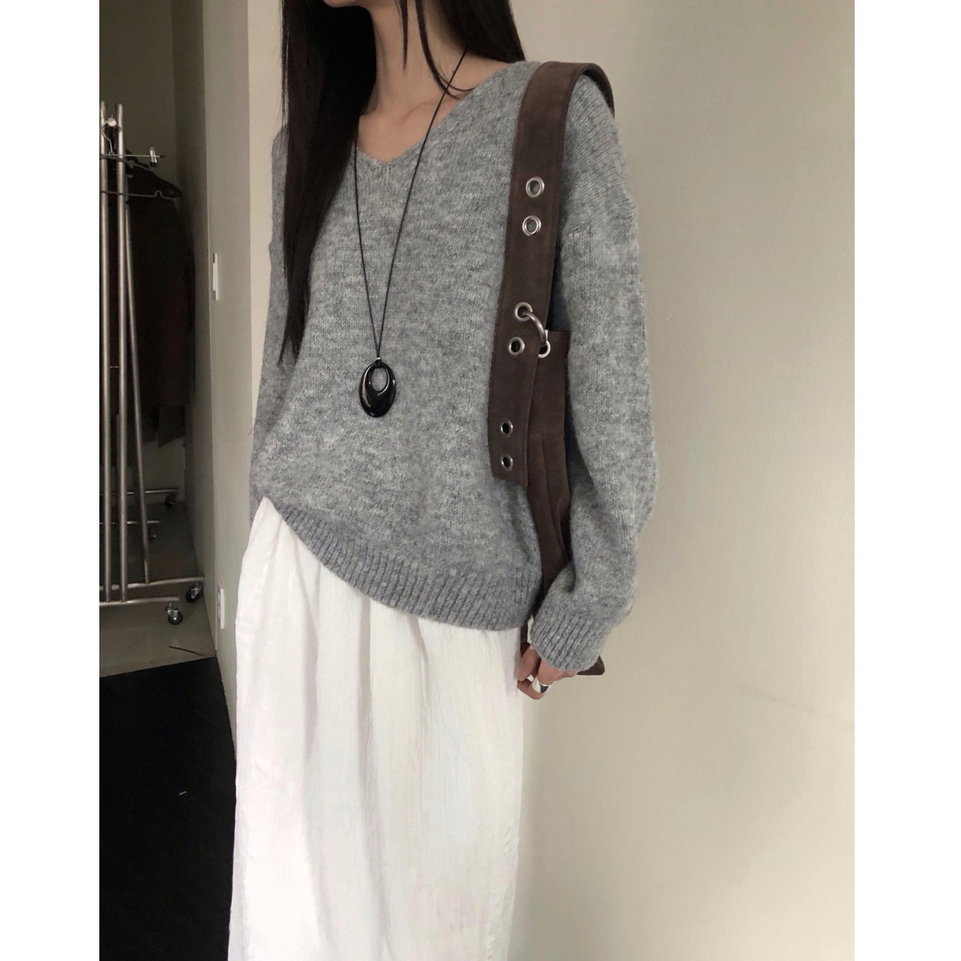 긱 루즈핏 브이넥 울 기본 니트