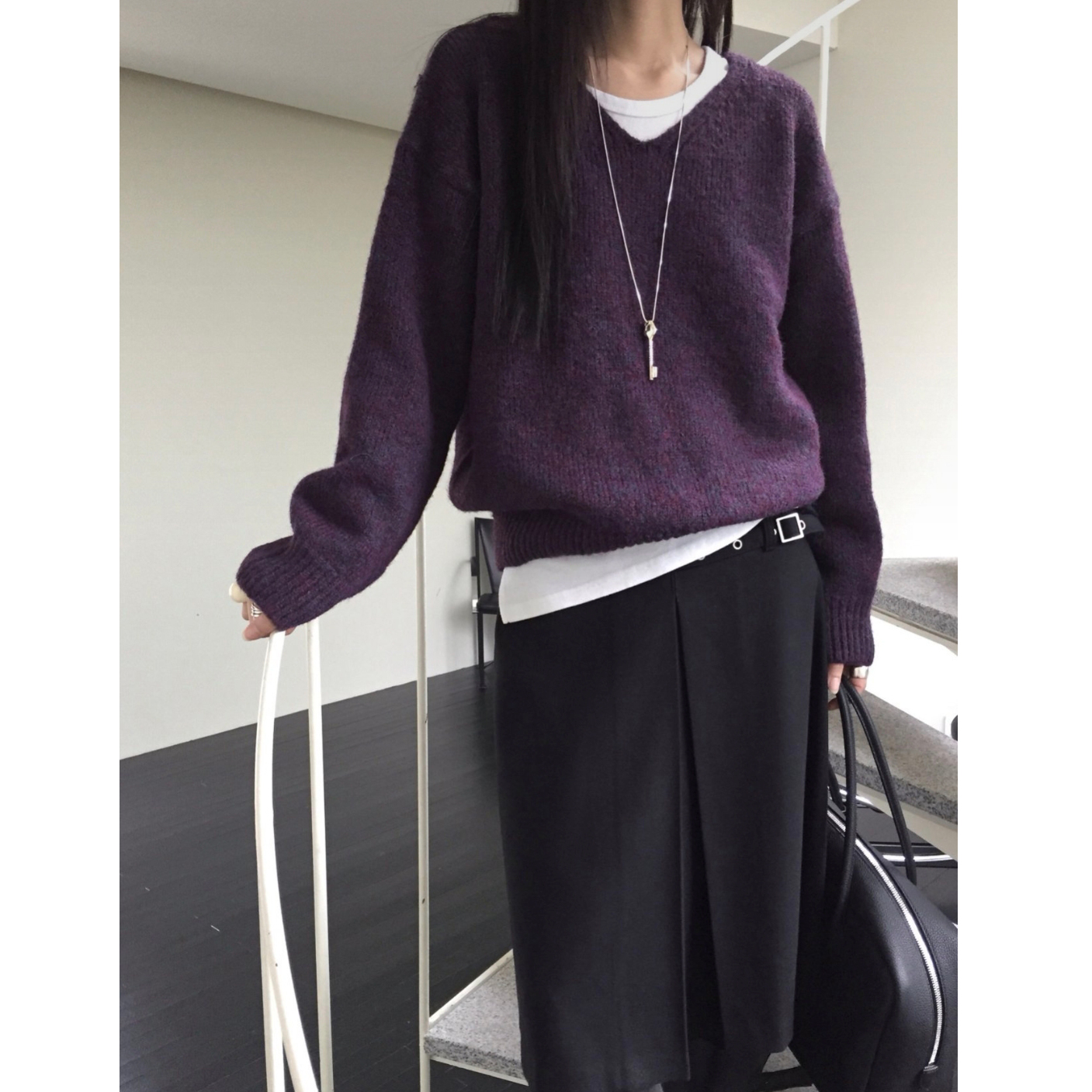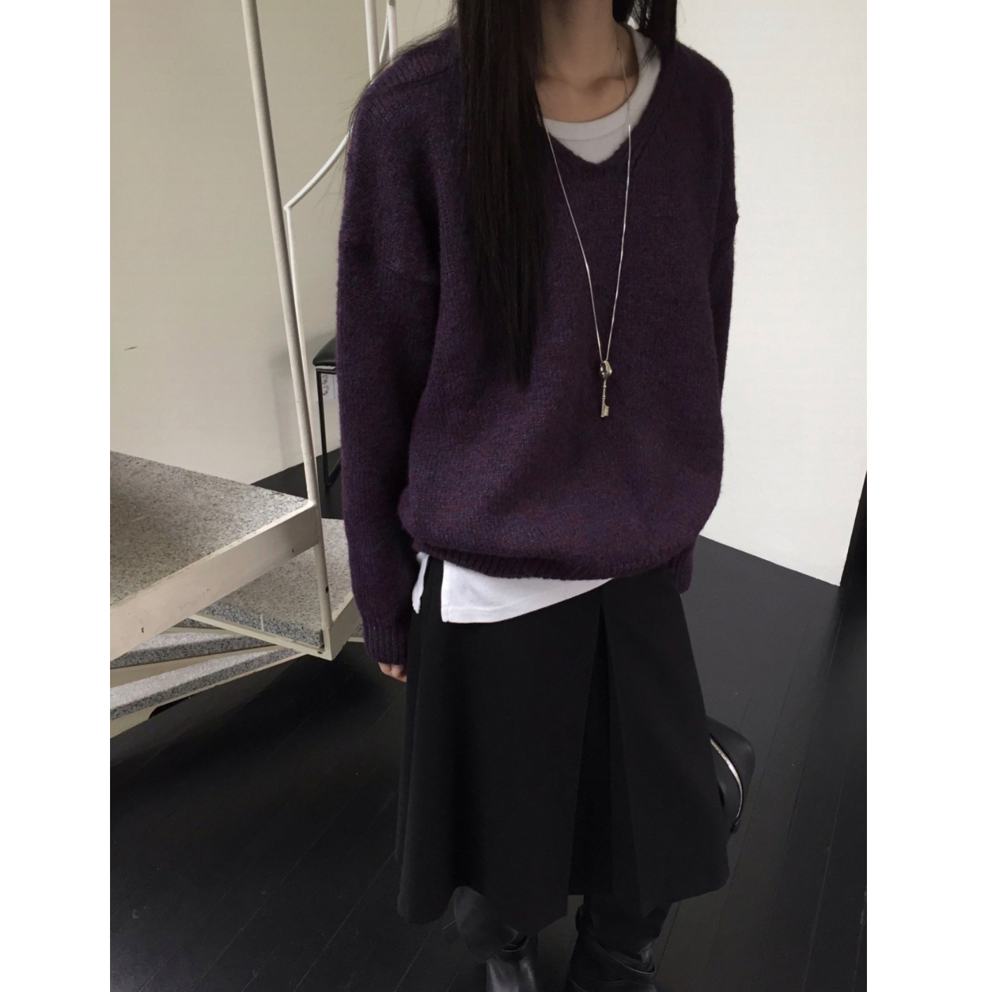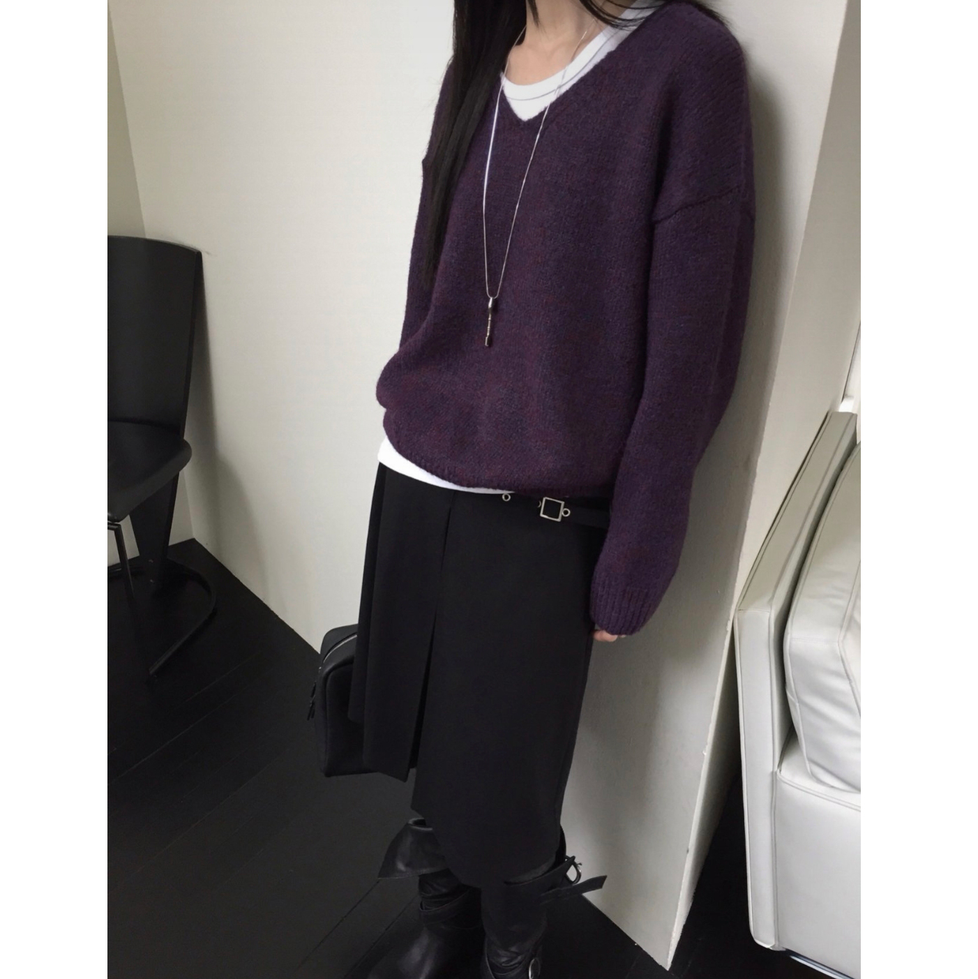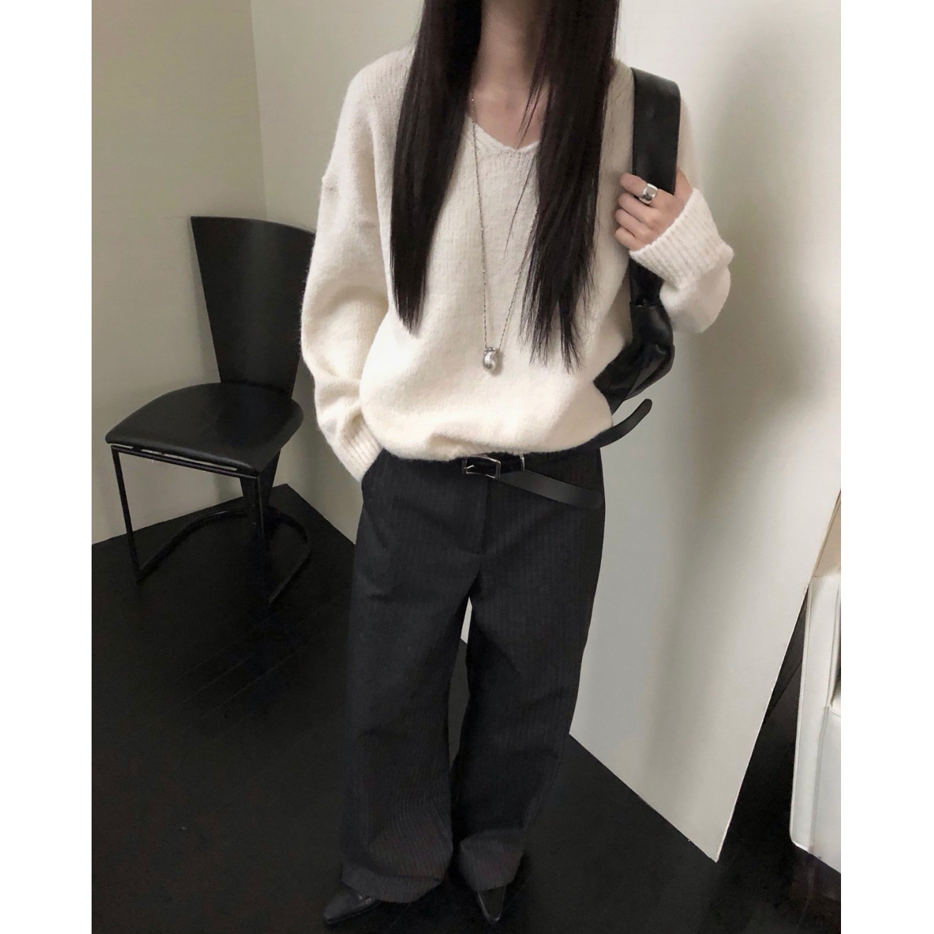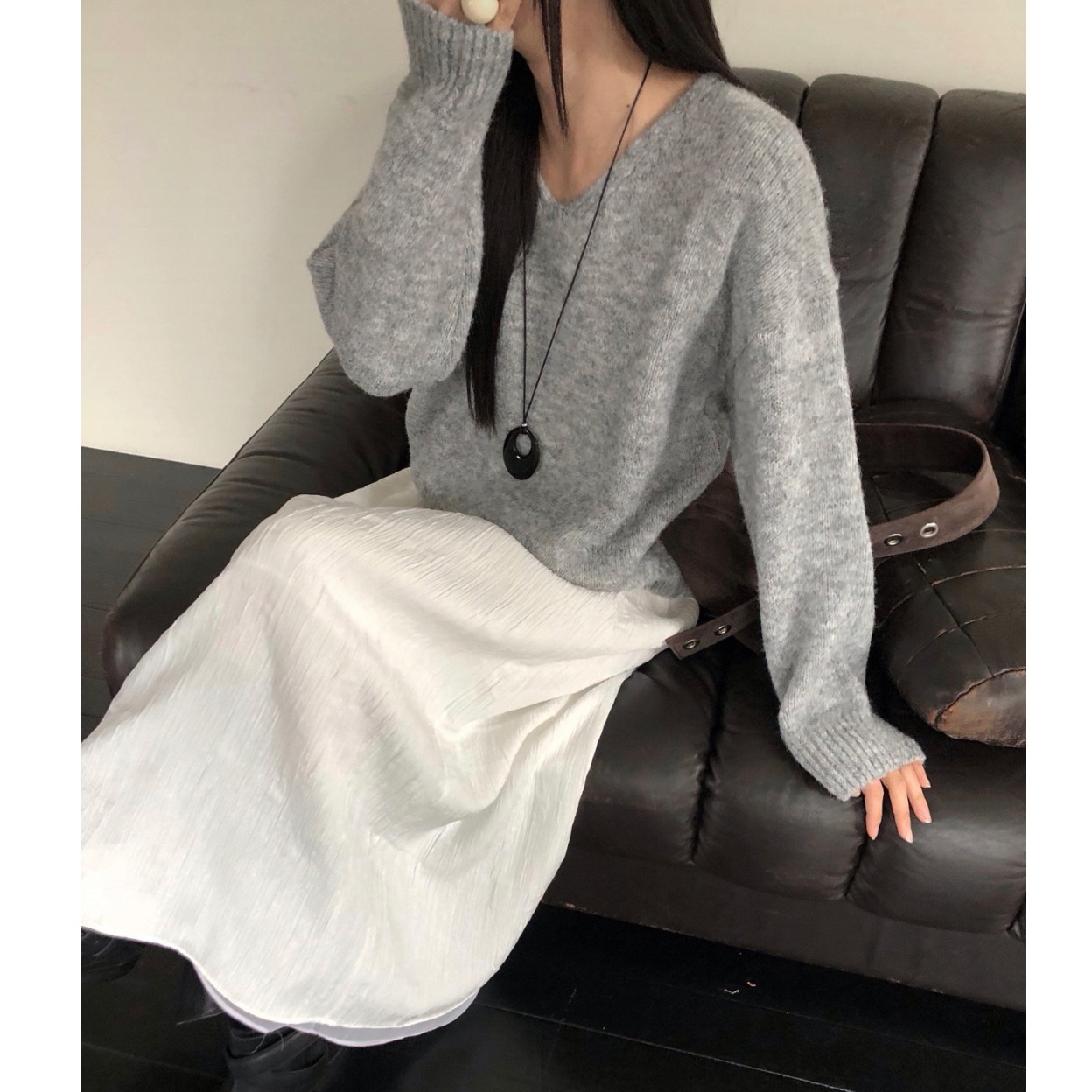 긱 루즈핏 브이넥 울 기본 니트
