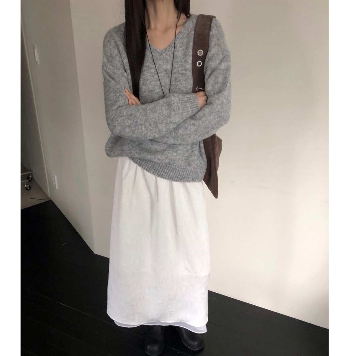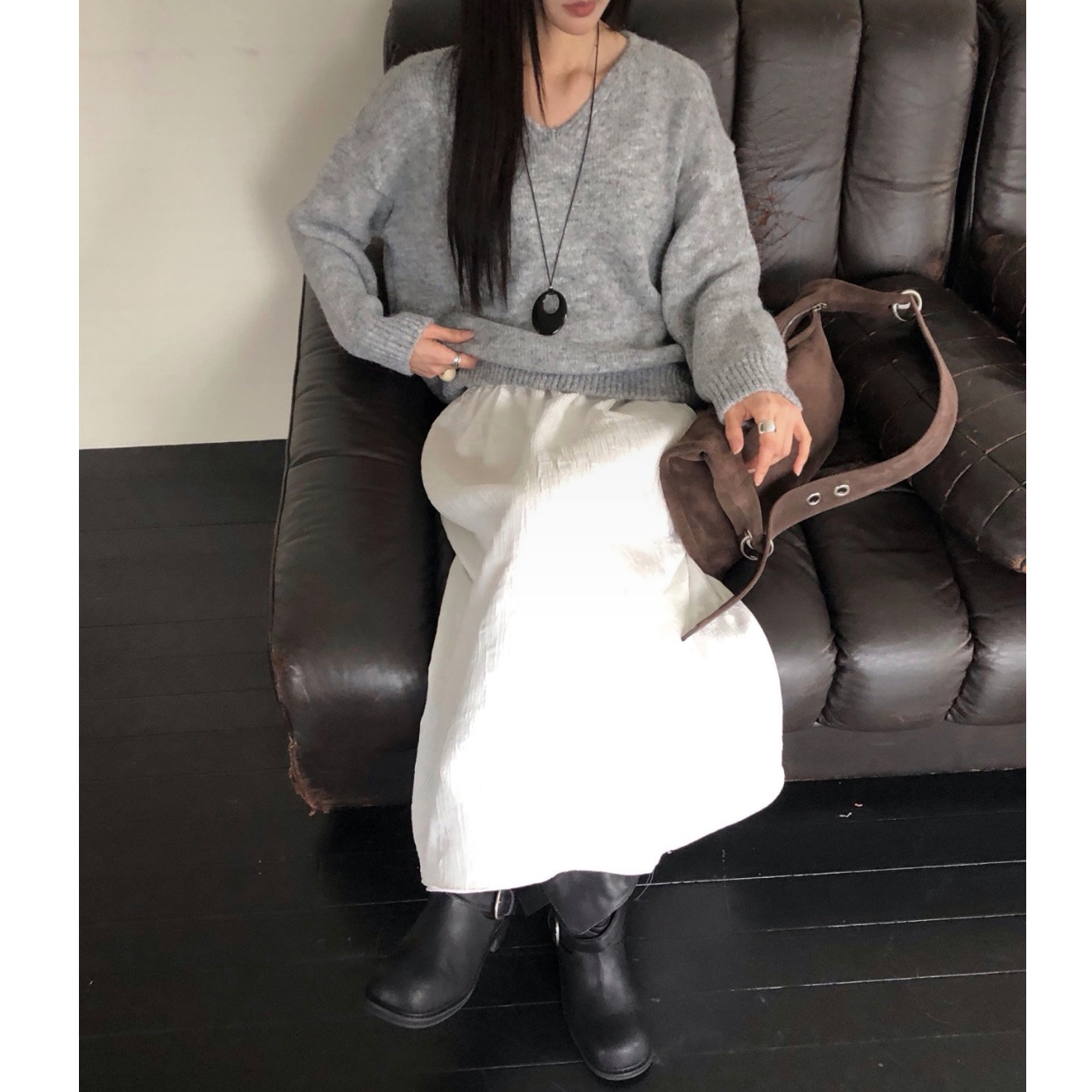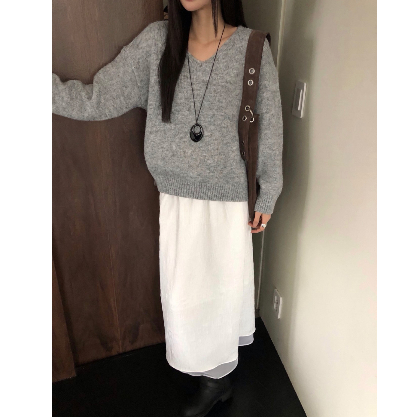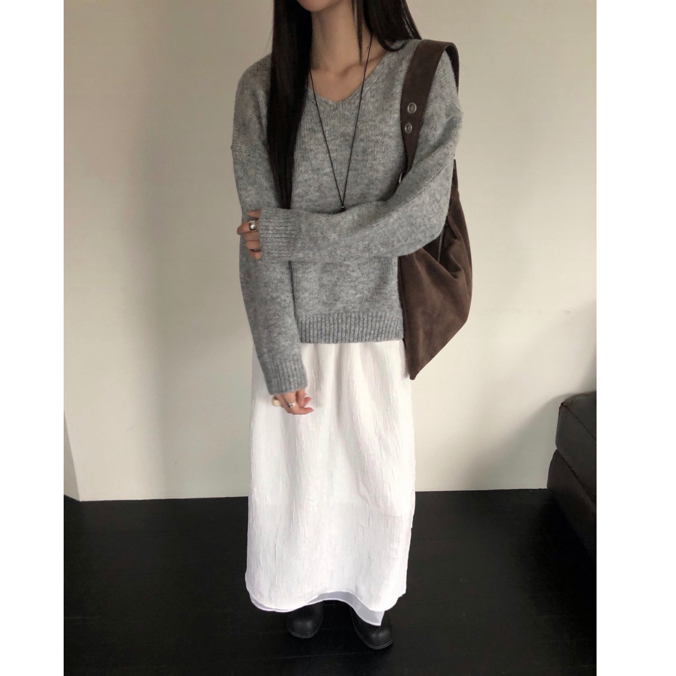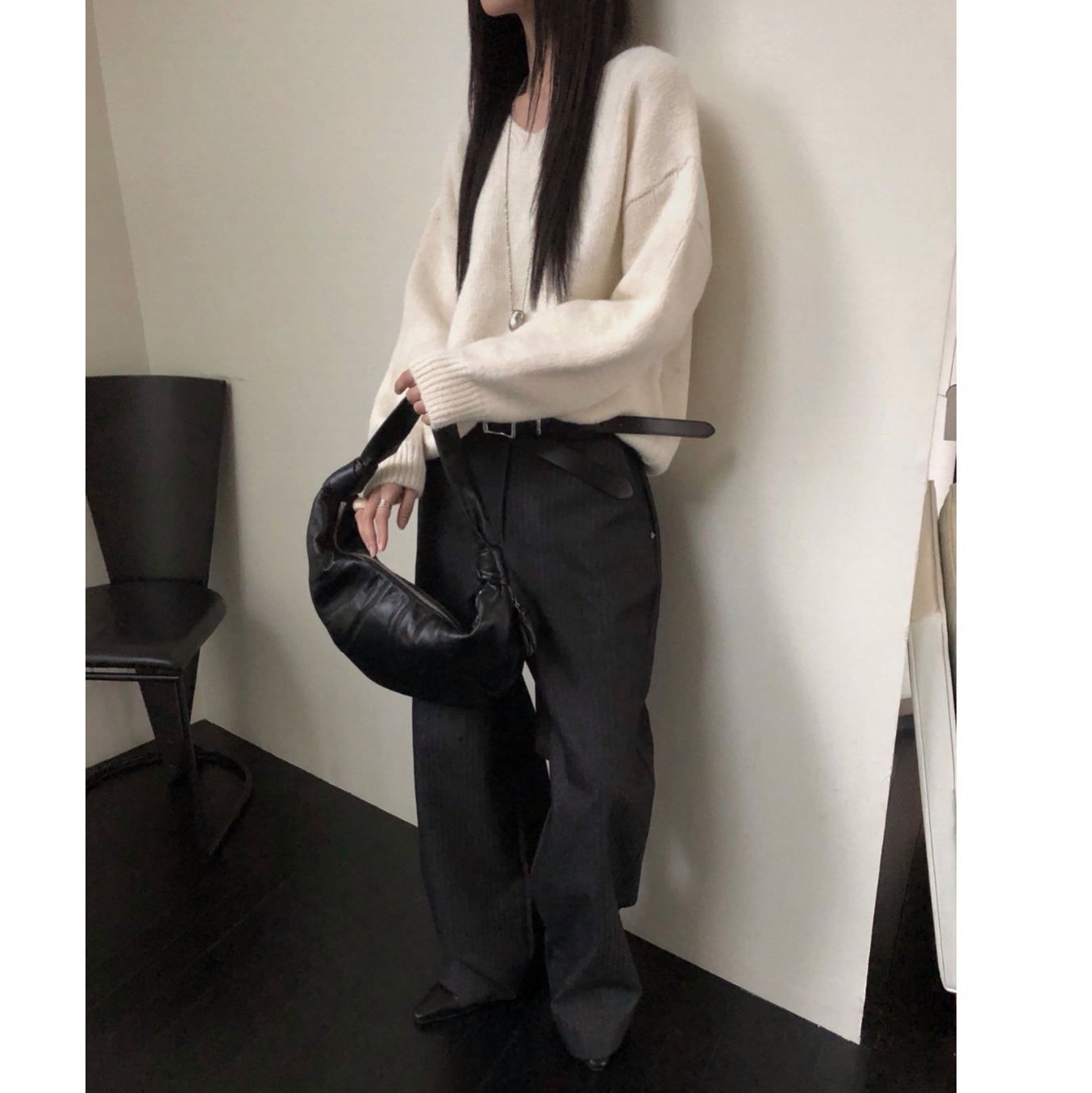 긱 루즈핏 브이넥 울 기본 니트