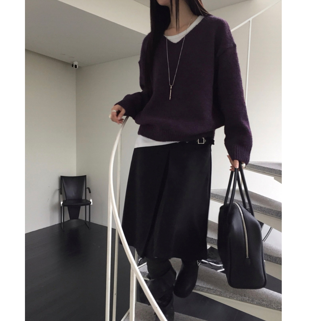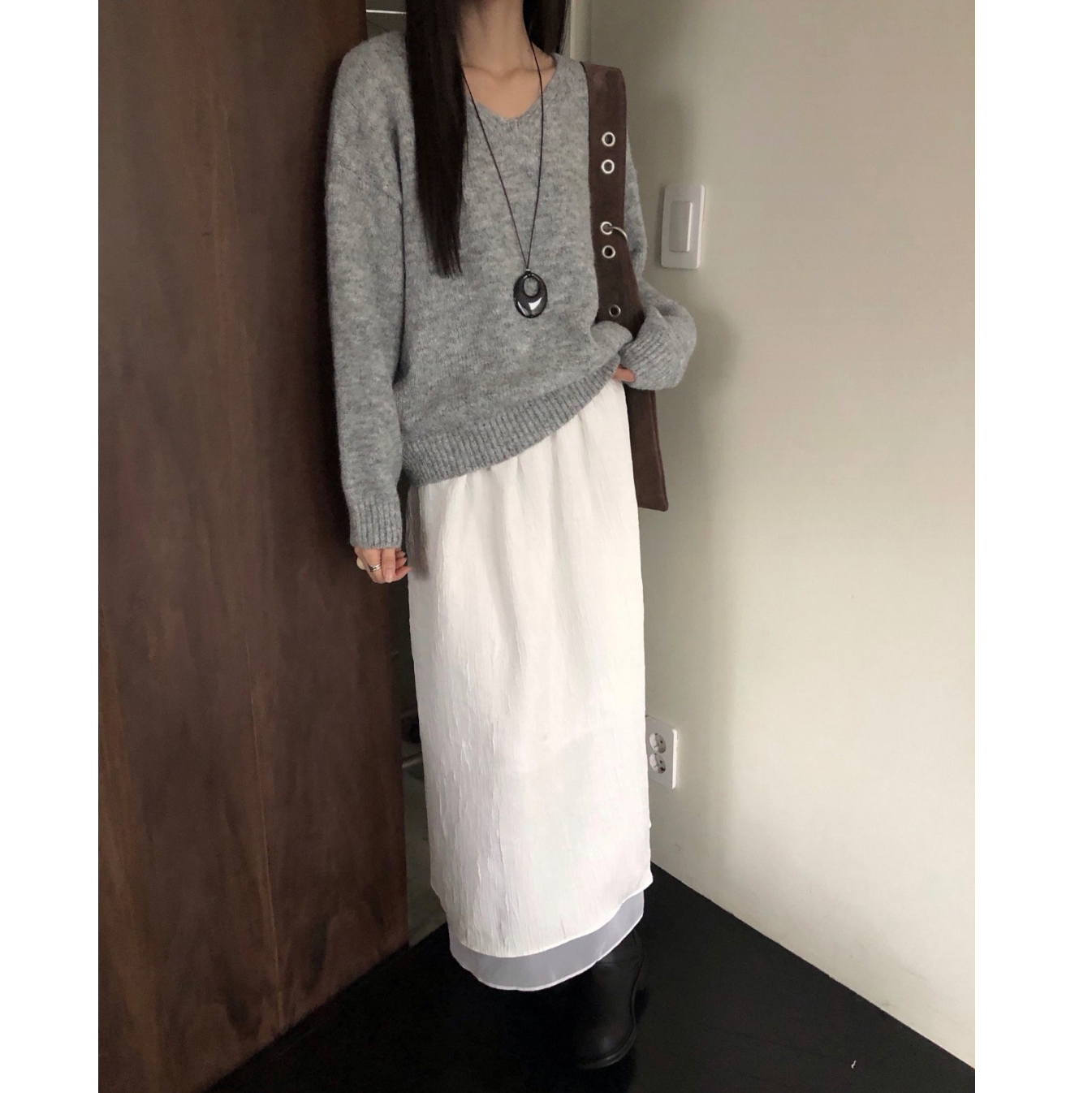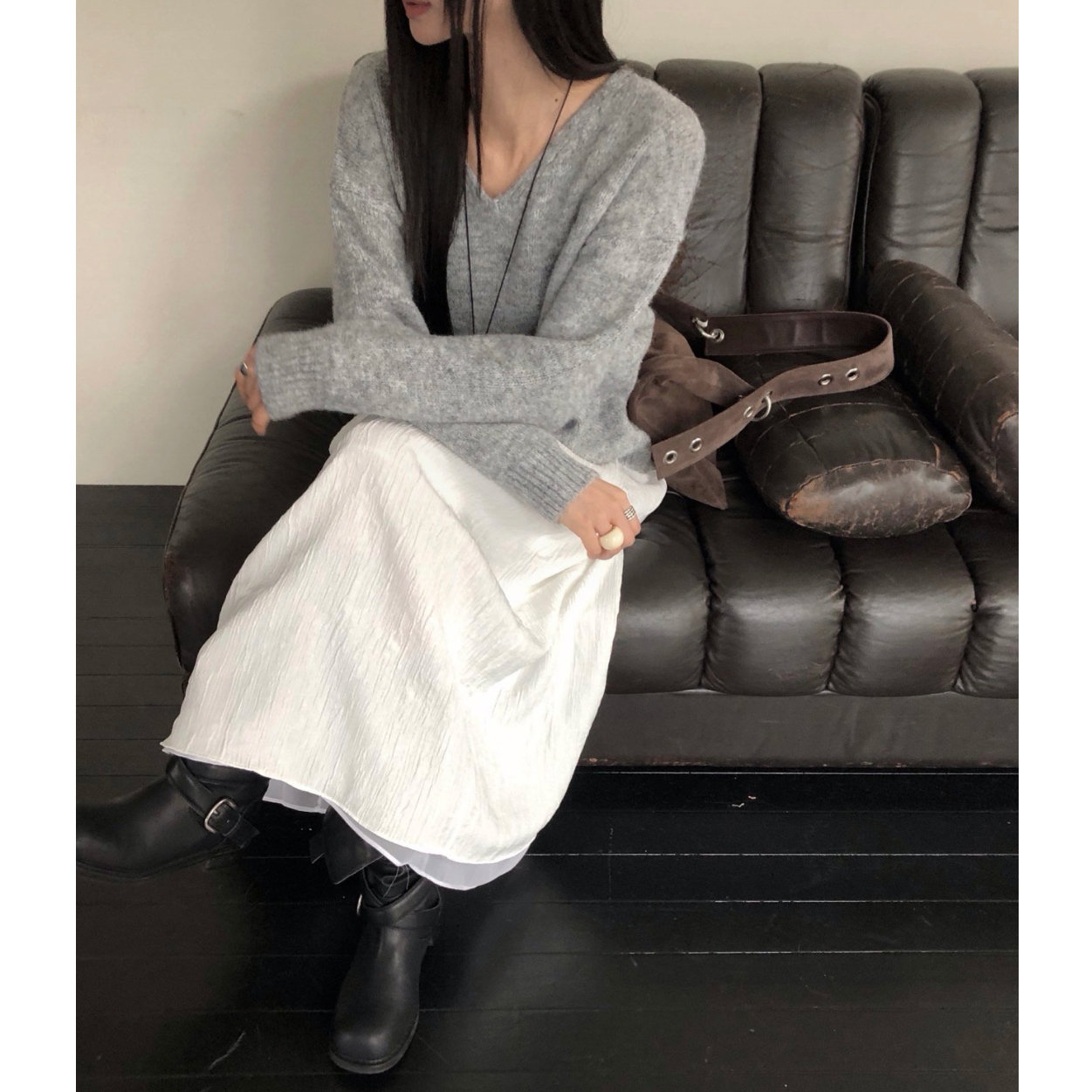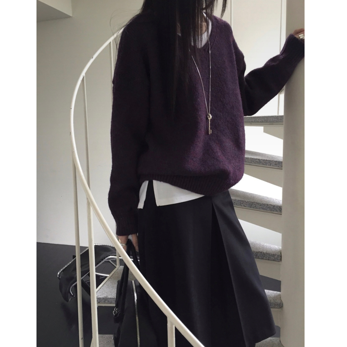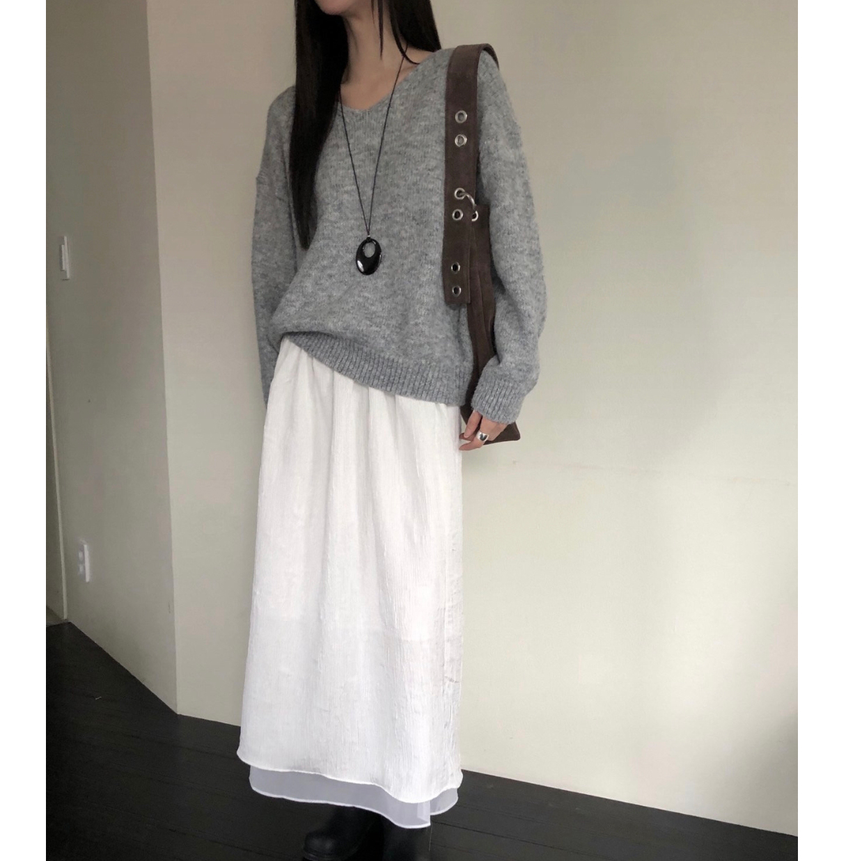 긱 루즈핏 브이넥 울 기본 니트