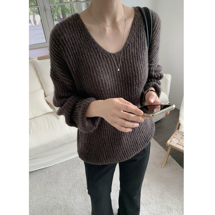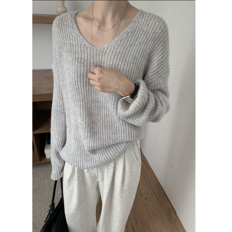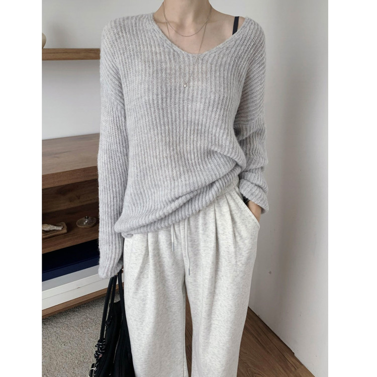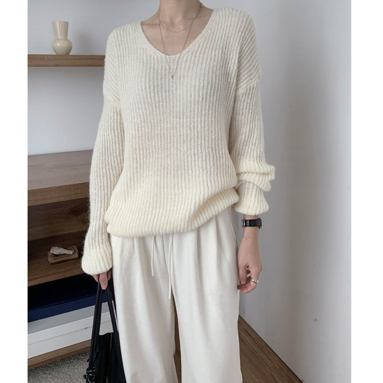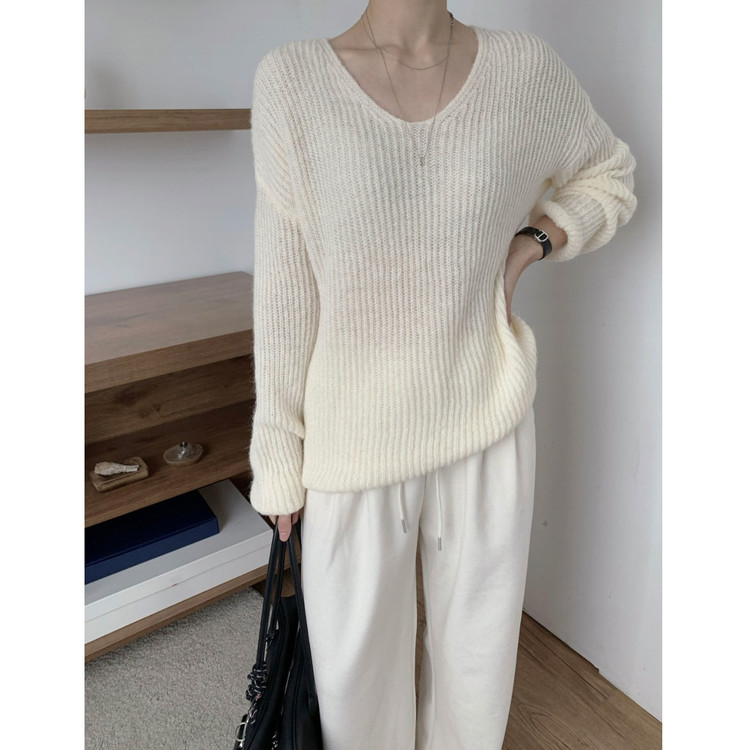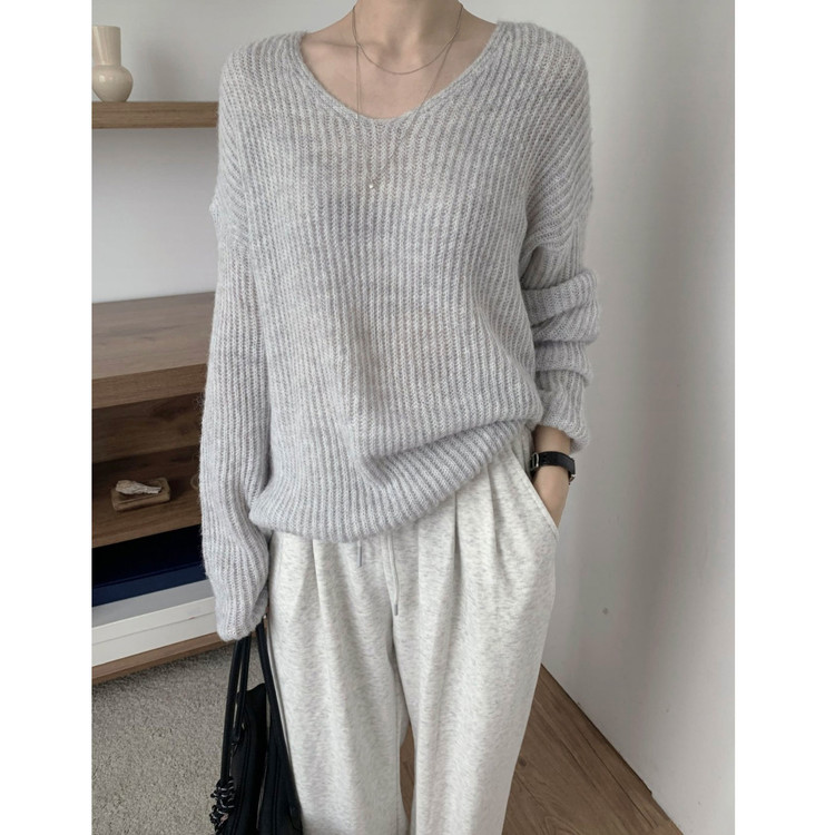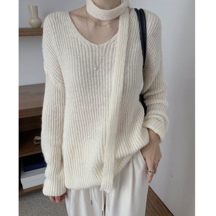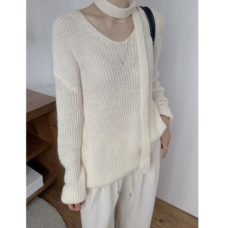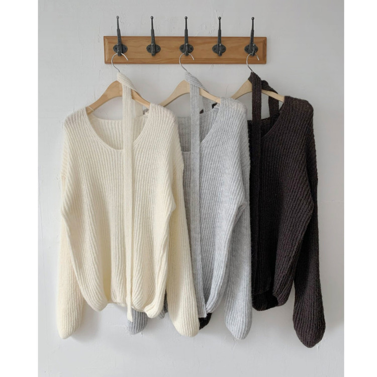 욜로 브이넥 타이 세트 루르핏 골지 니트