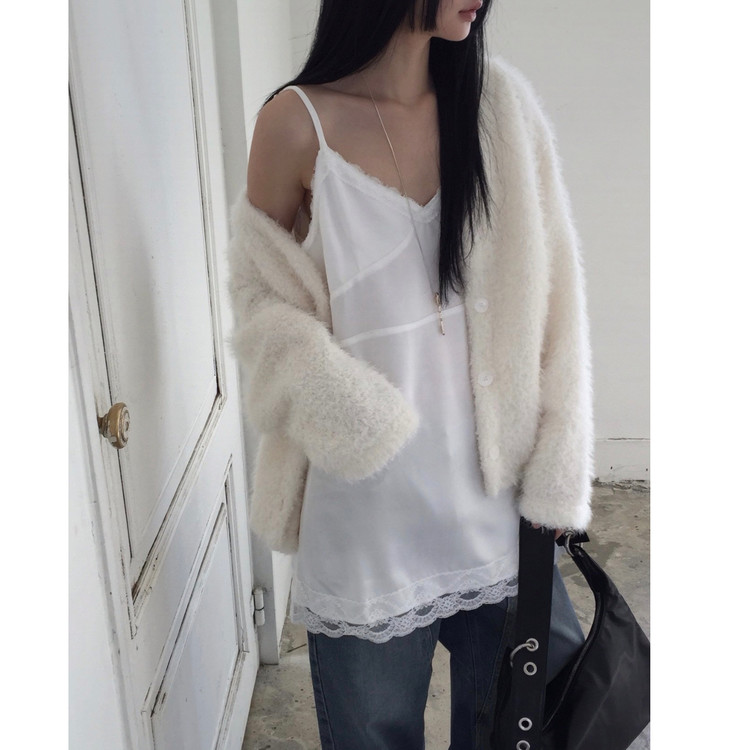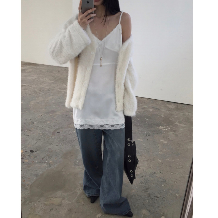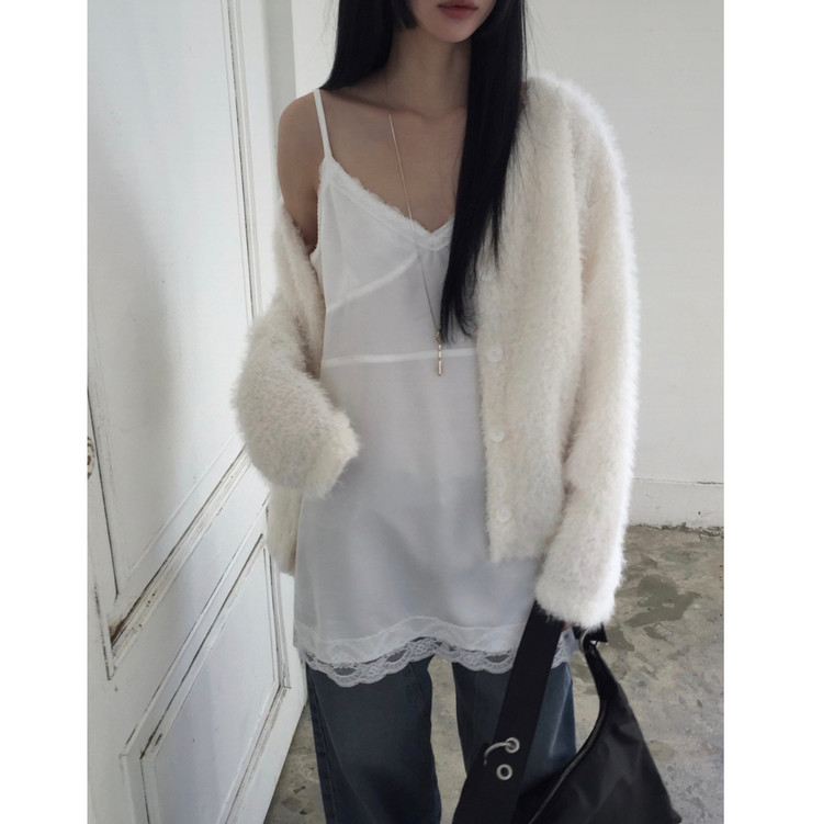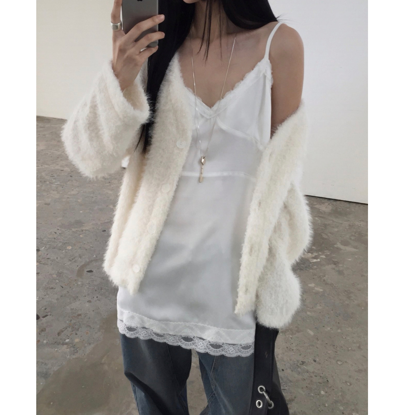26SS 야키 레이스 슬립 레이어드 미니 원피스