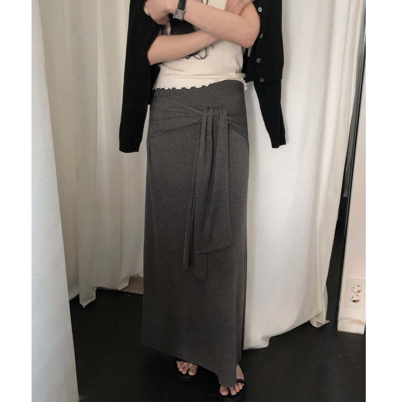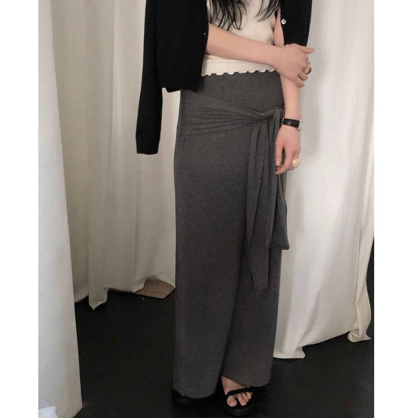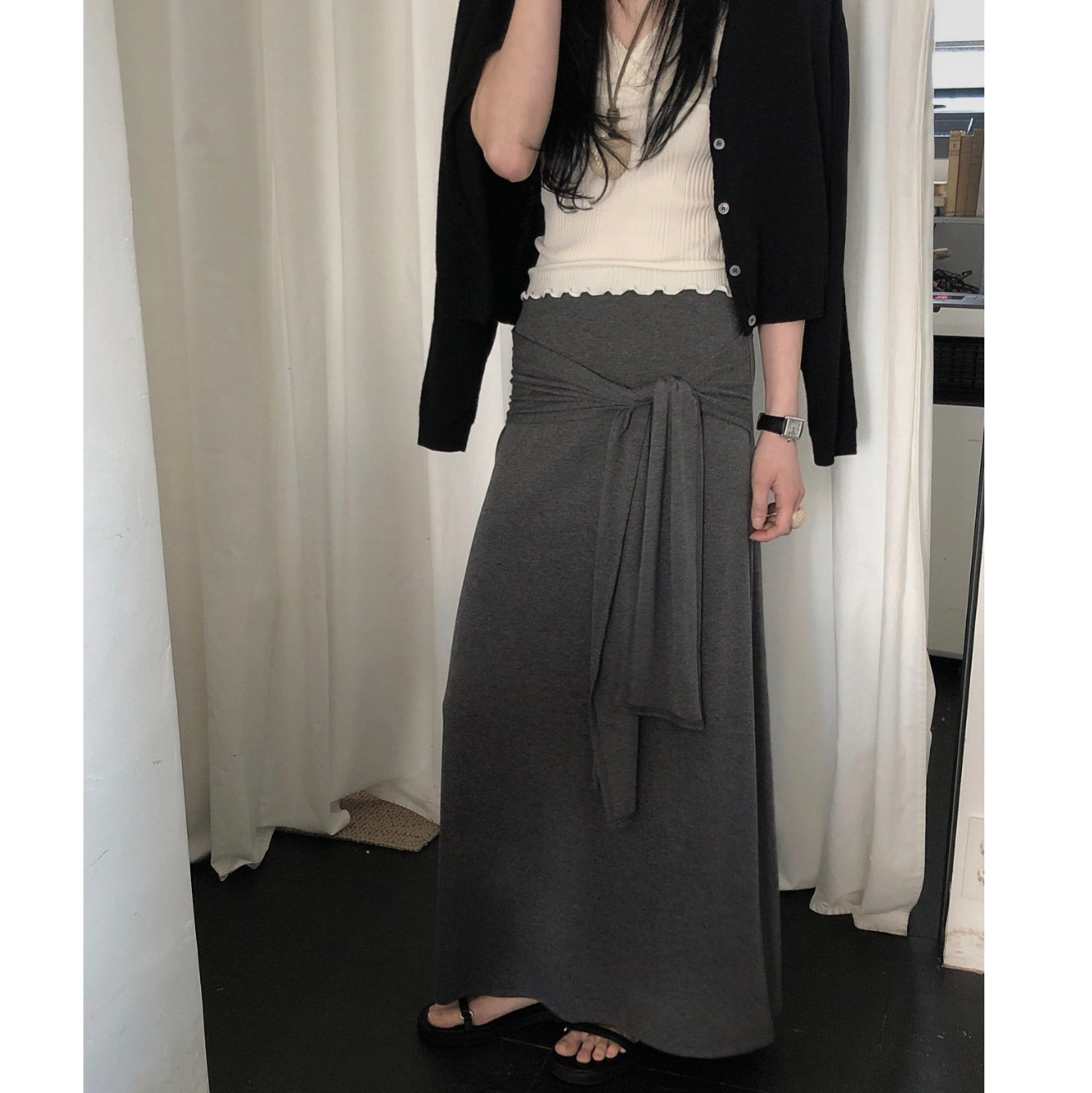 26SS 리본 스카프 롱스커트