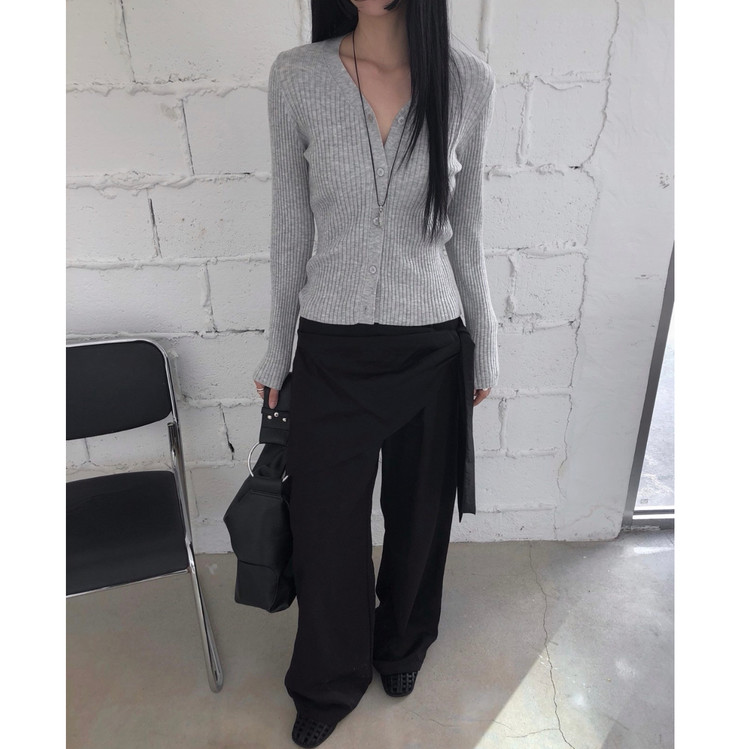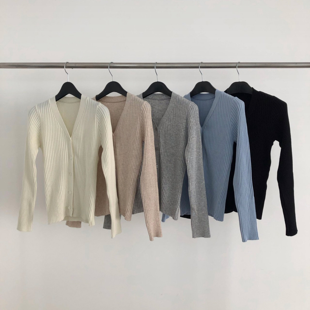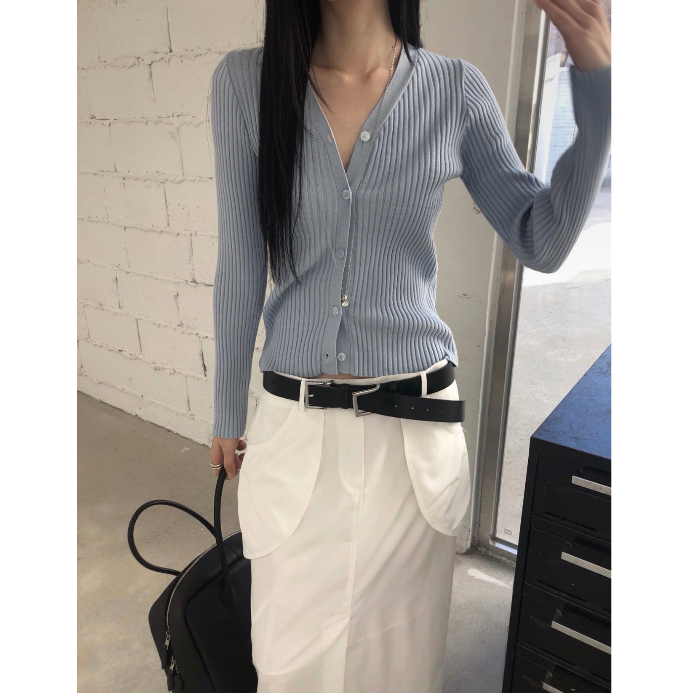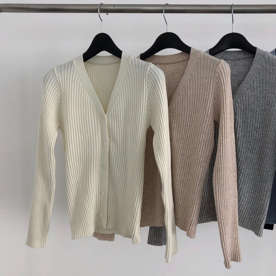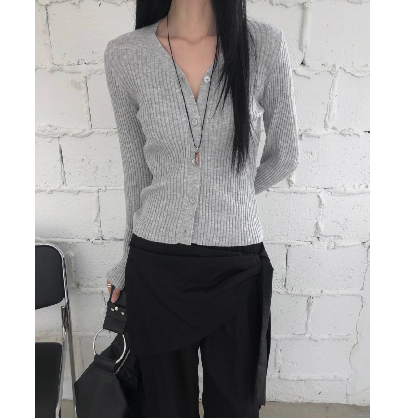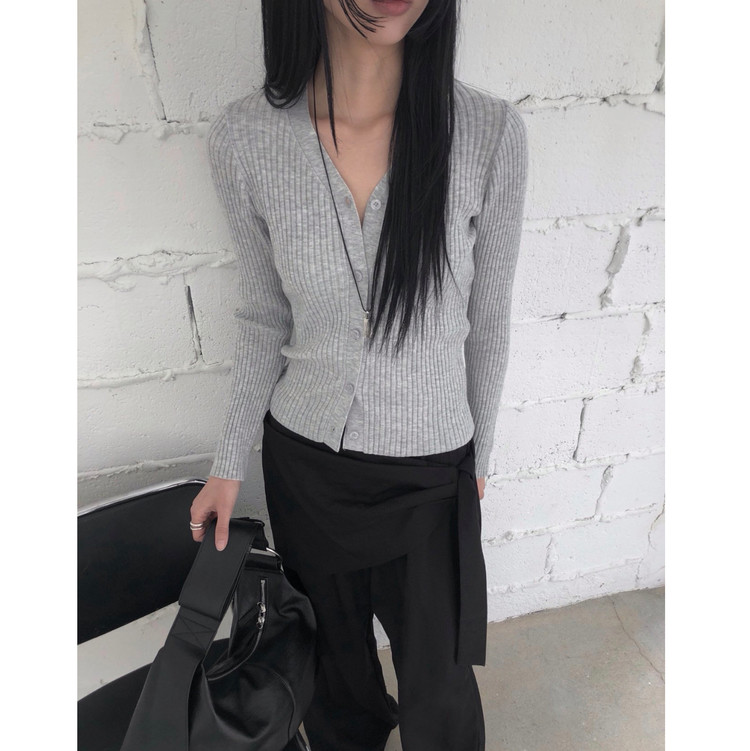 26SS 니즈 슬림핏 브이넥 골지 니트 가디건