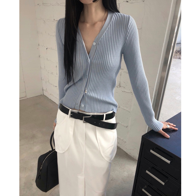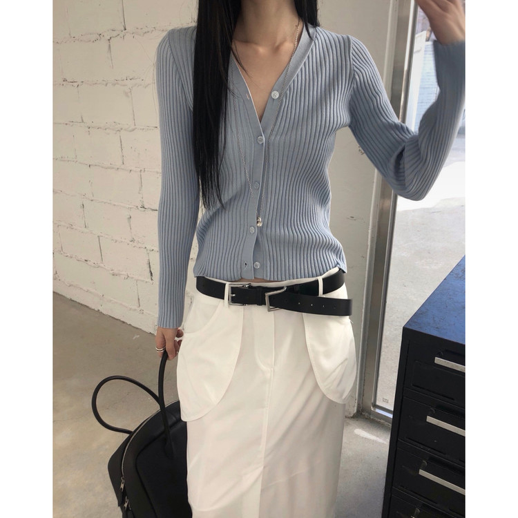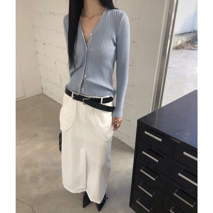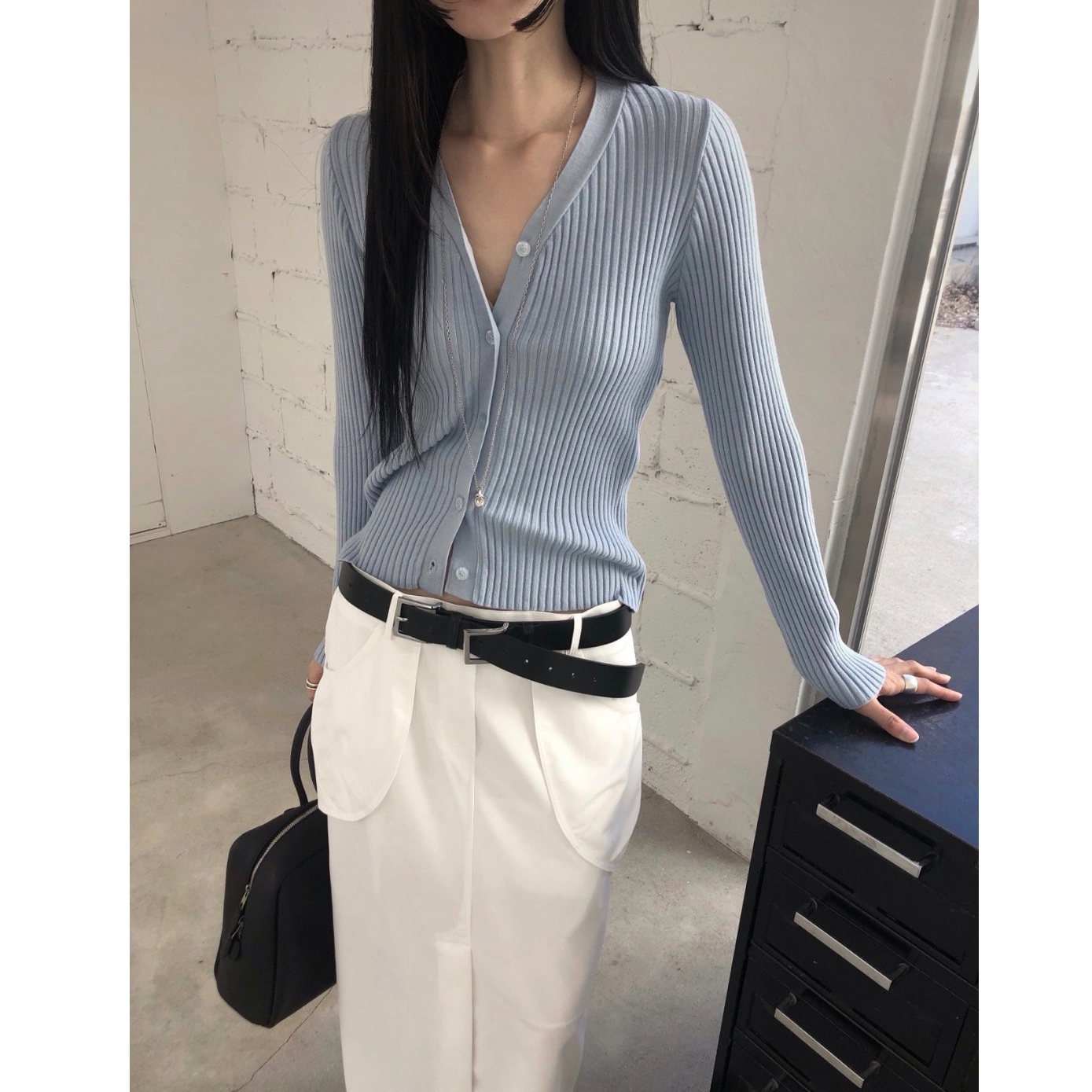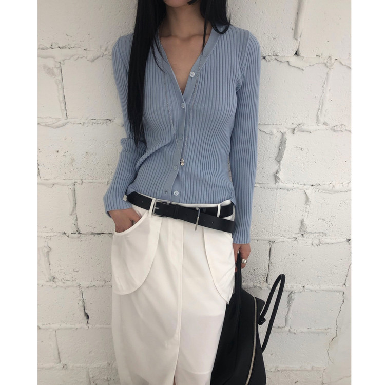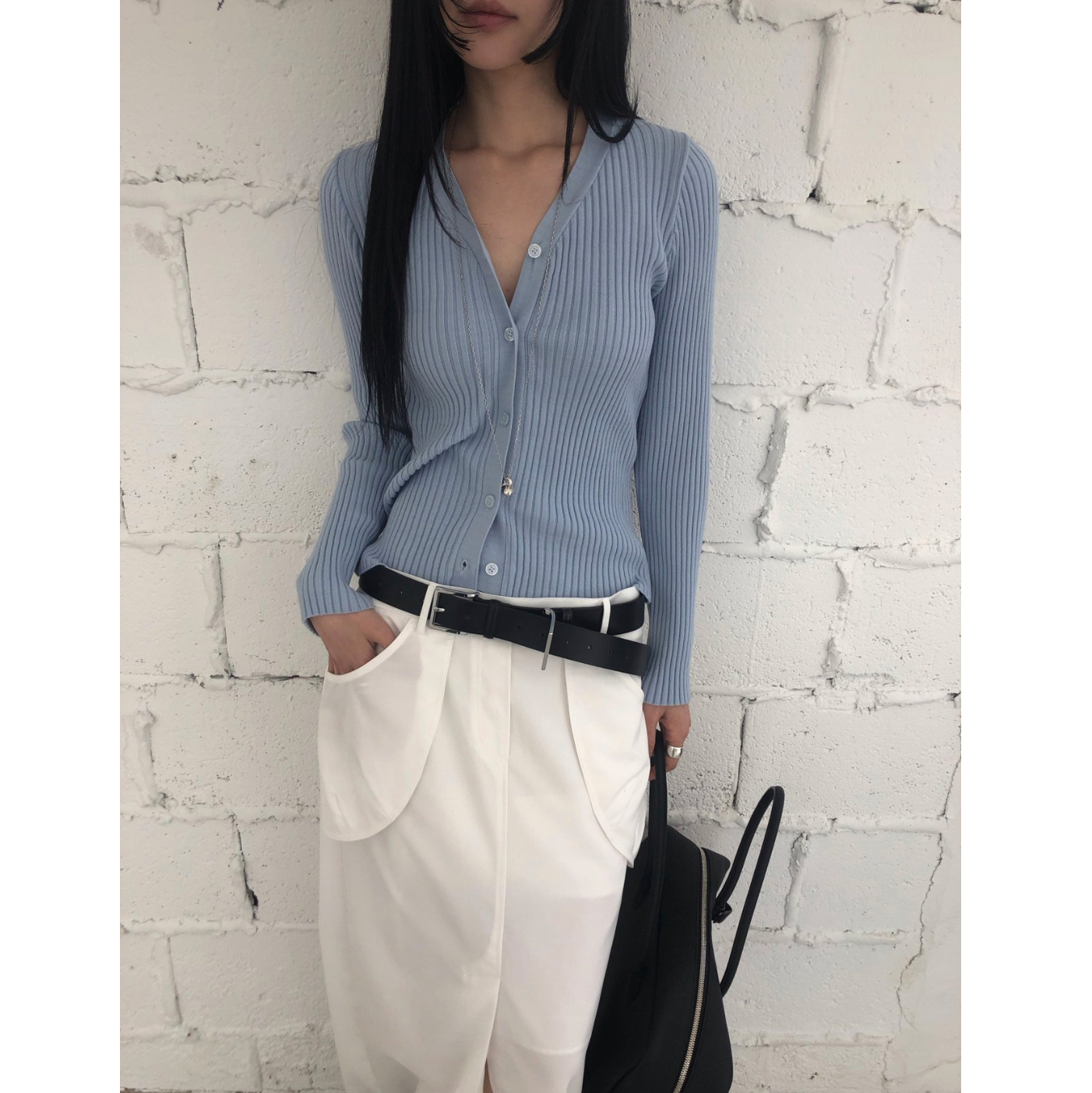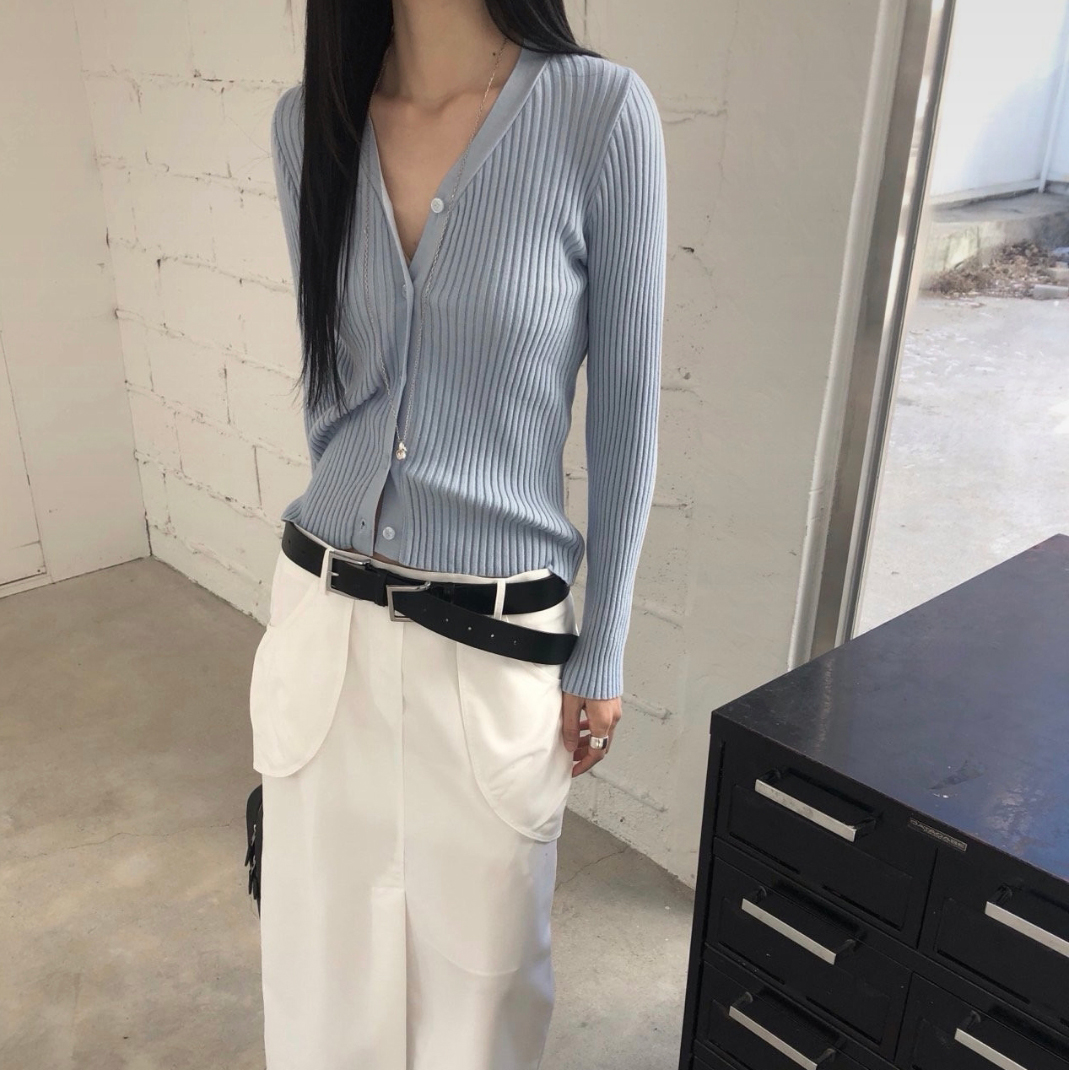 26SS 니즈 슬림핏 브이넥 골지 니트 가디건