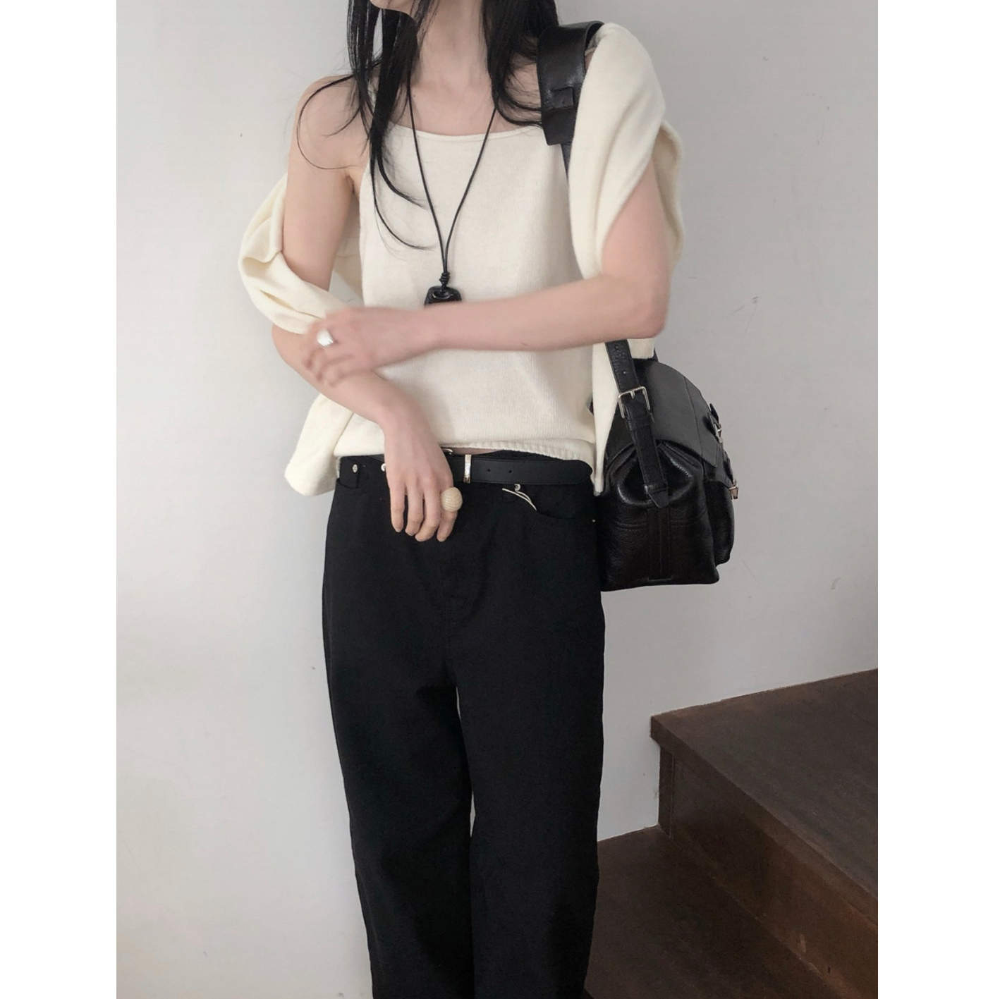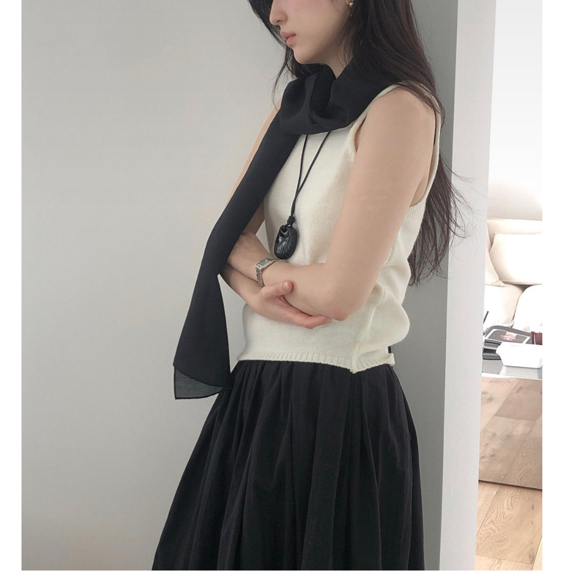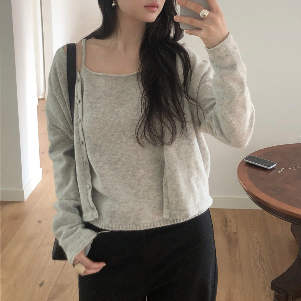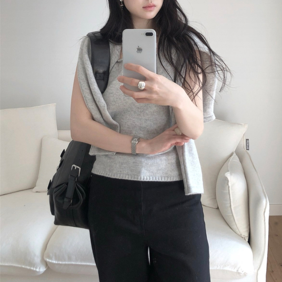 26SS 테미 라쿤 끈 나시 뷔스티에 니트