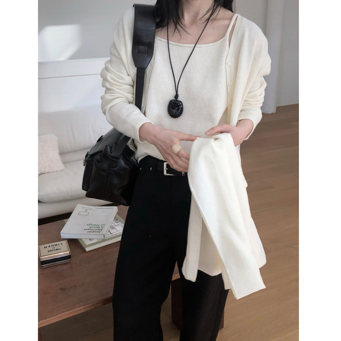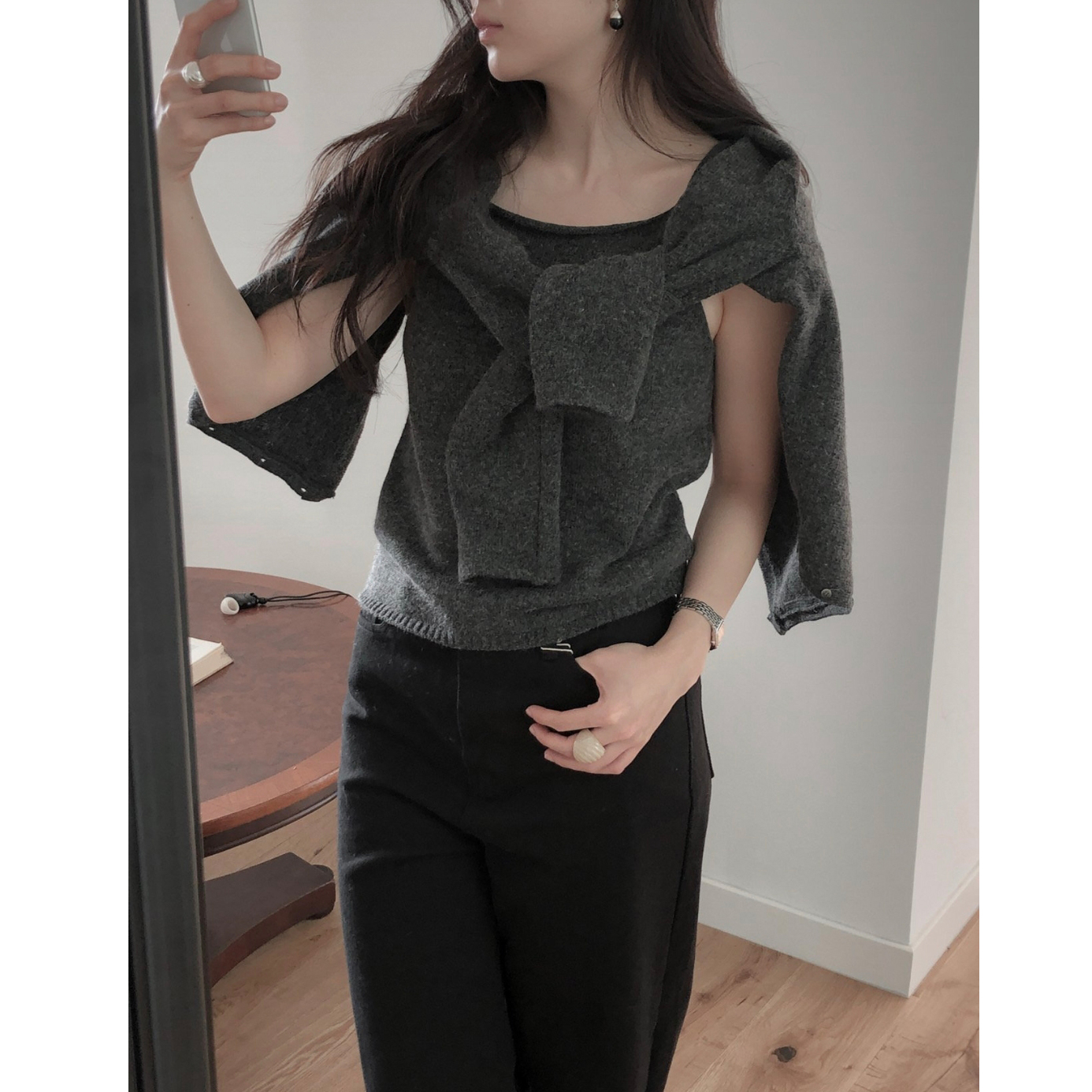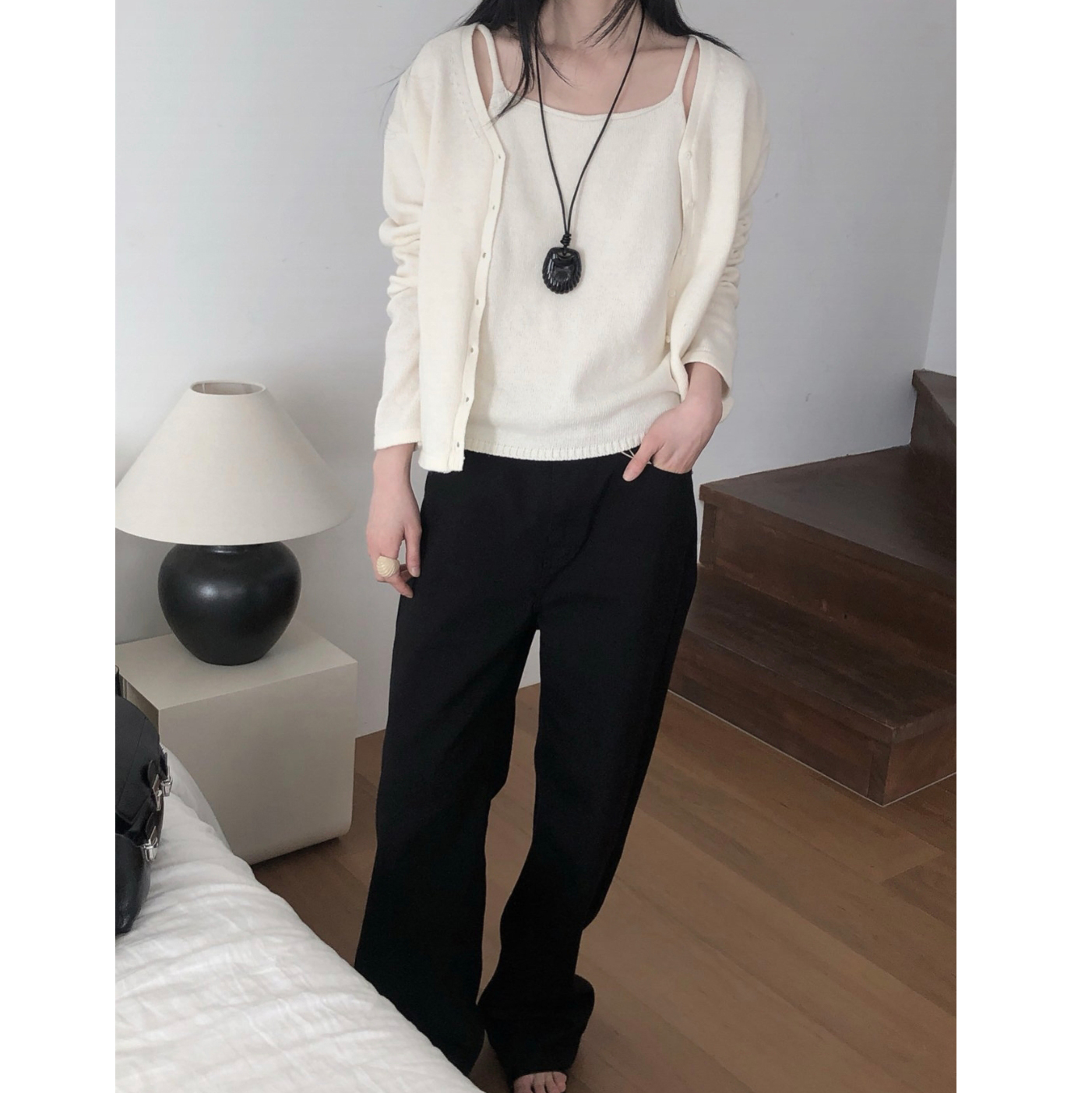 26SS 테미 라쿤 끈 나시 뷔스티에 니트