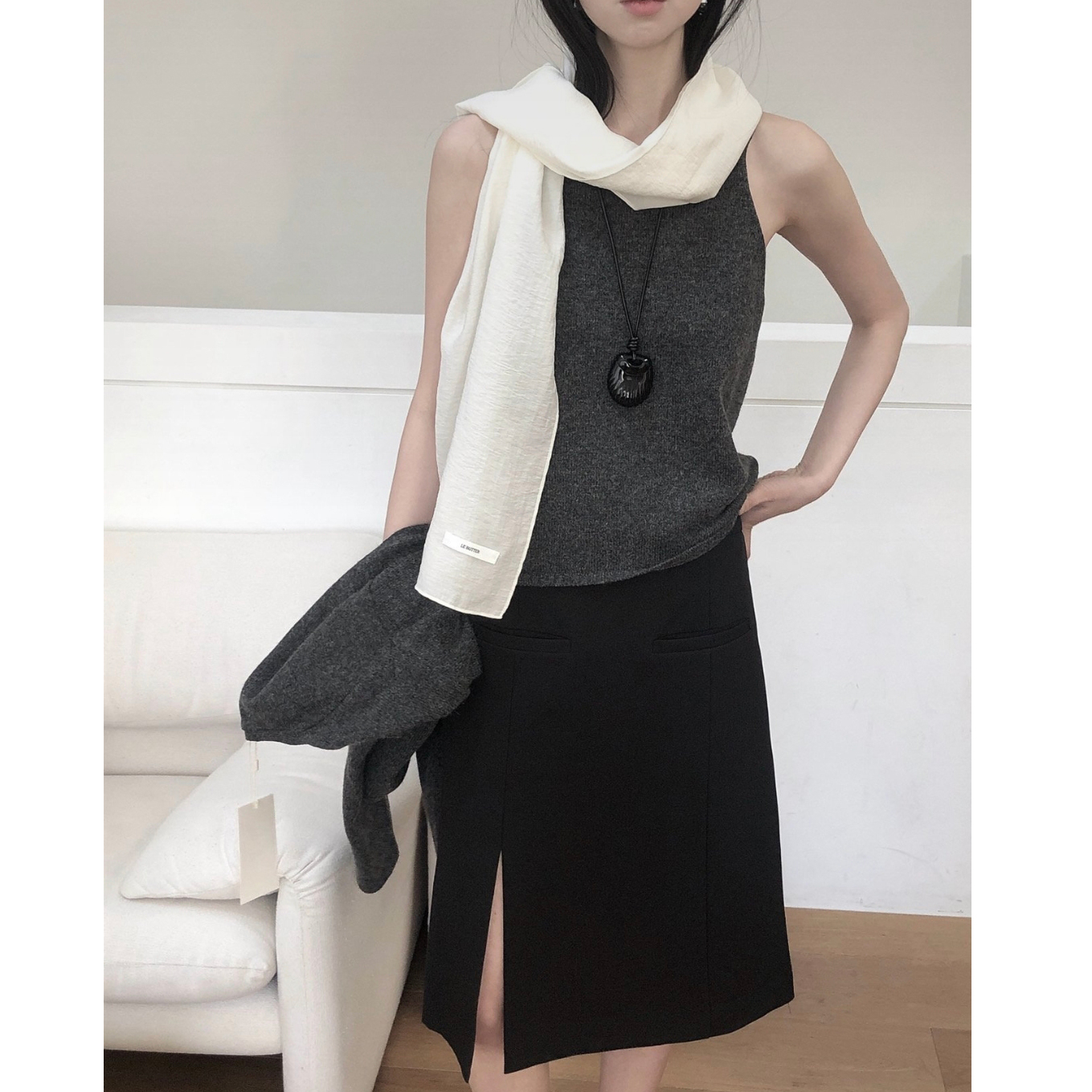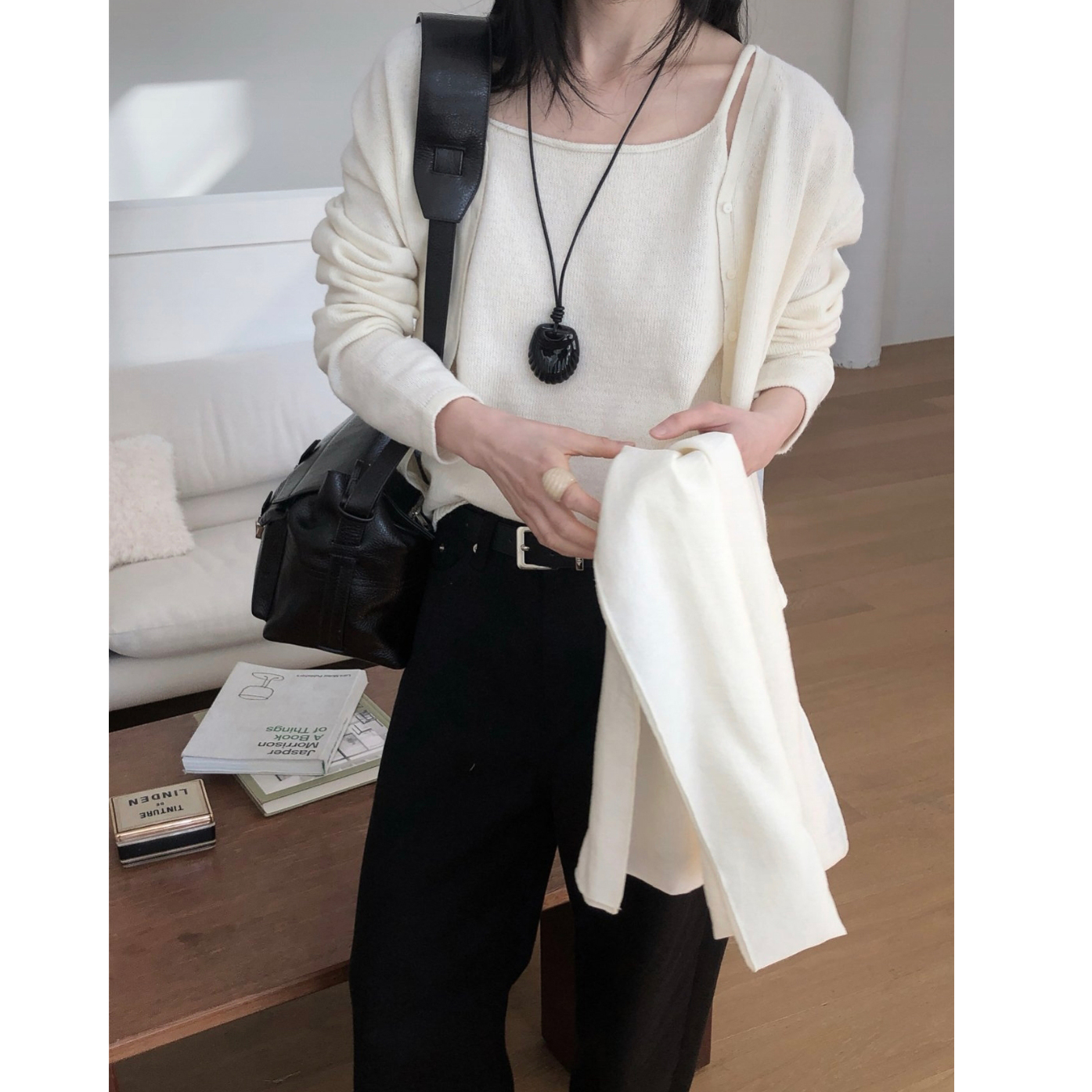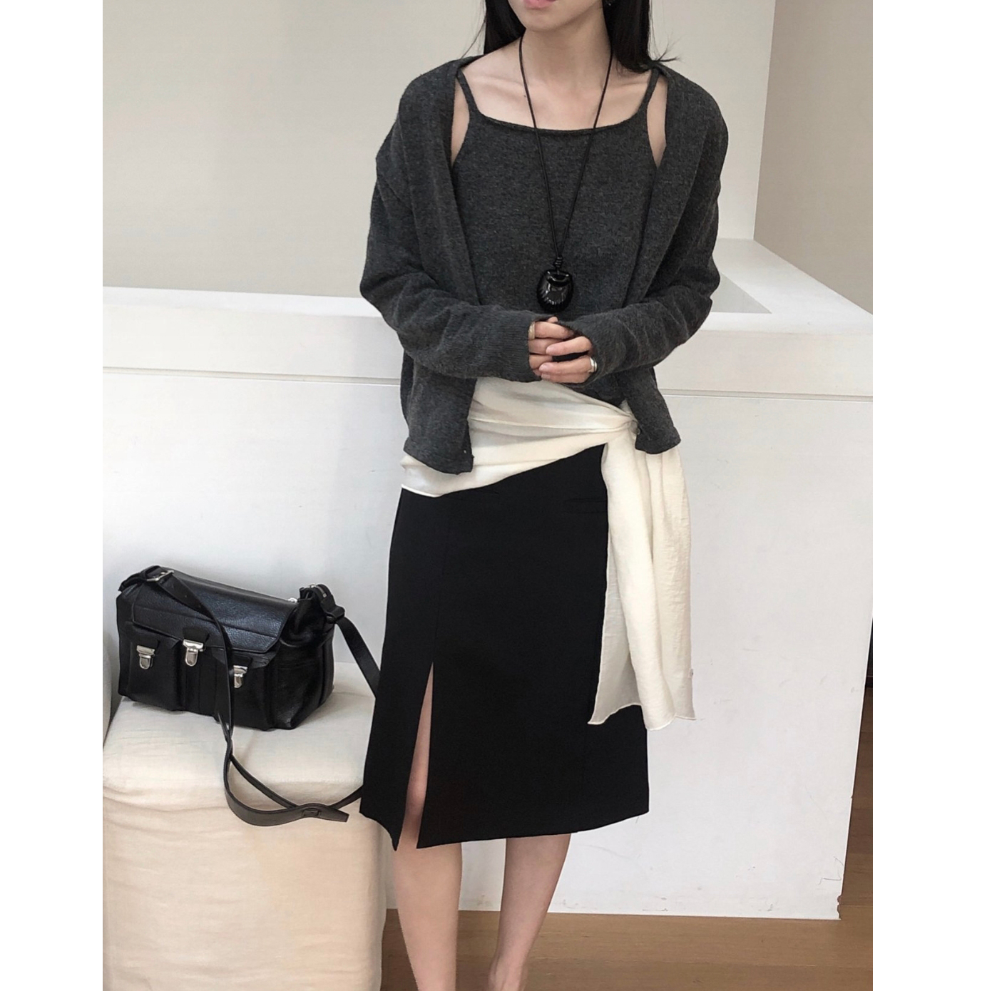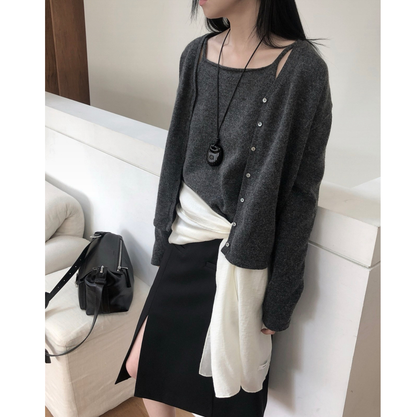 26SS 테미 라쿤 끈 나시 뷔스티에 니트