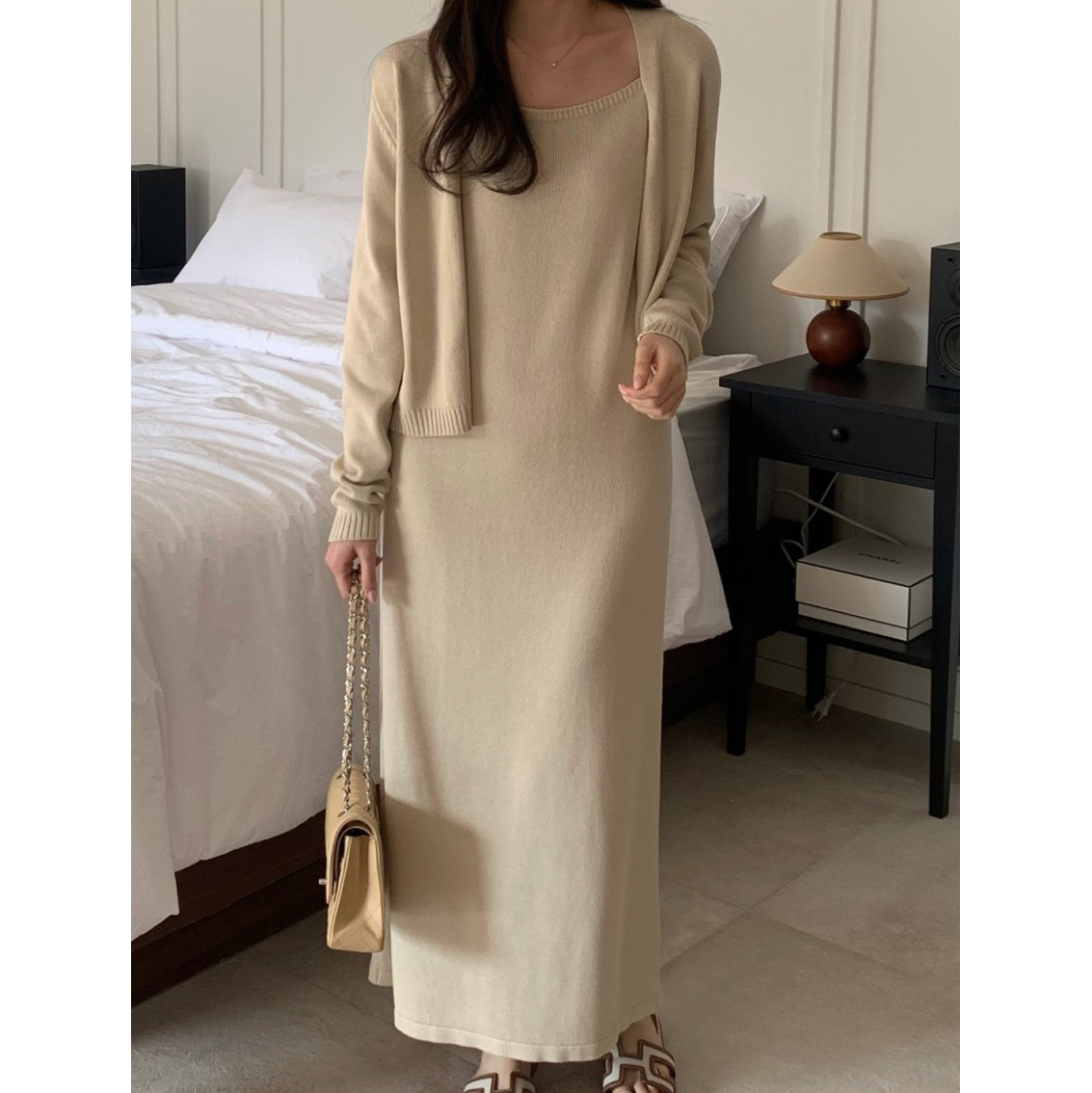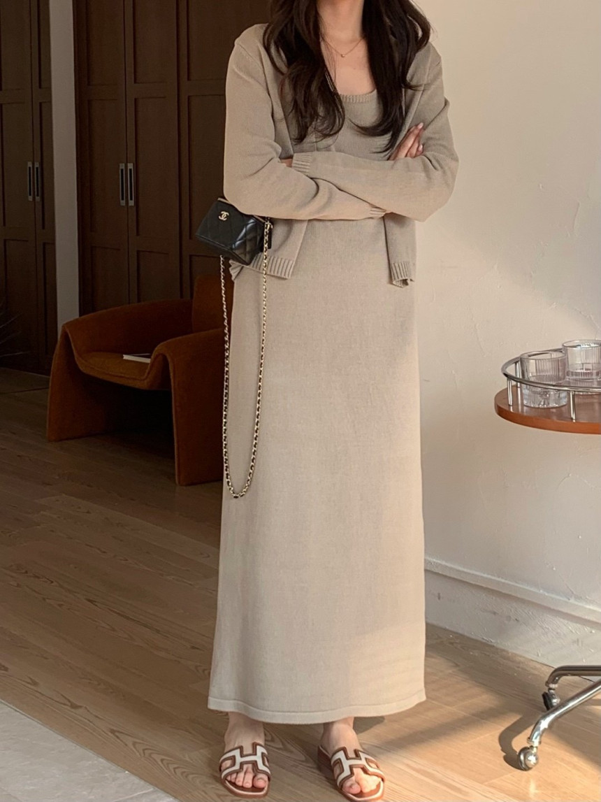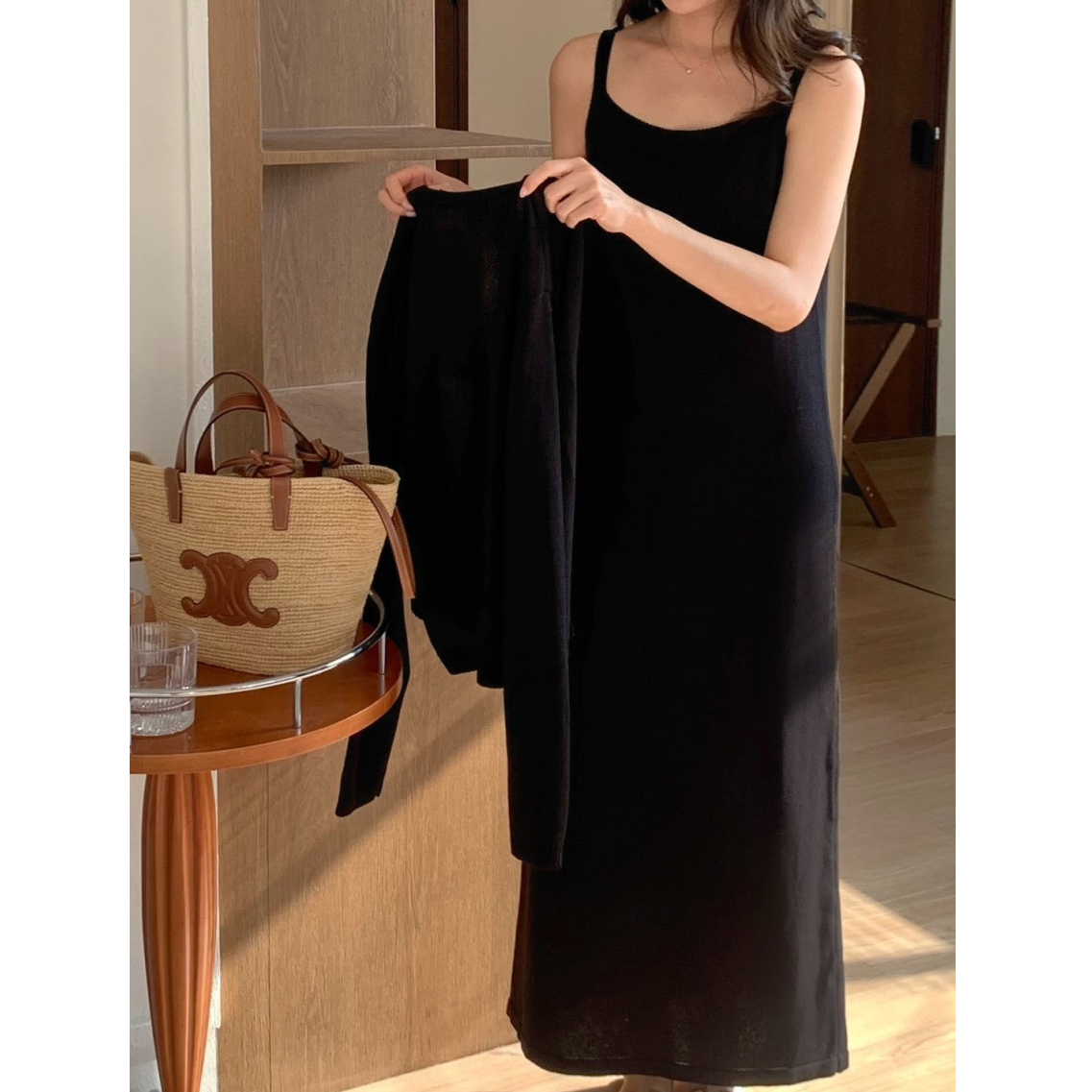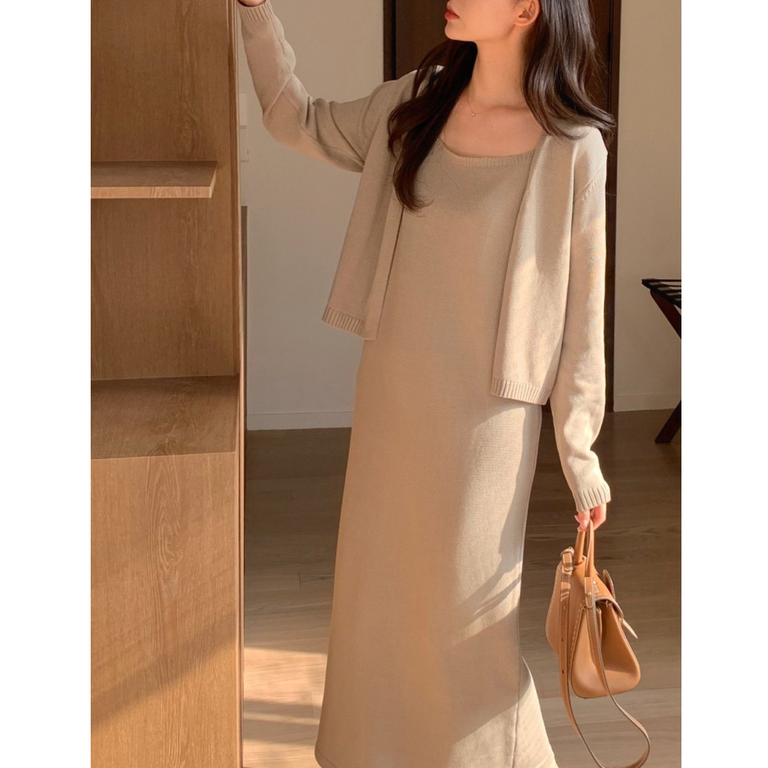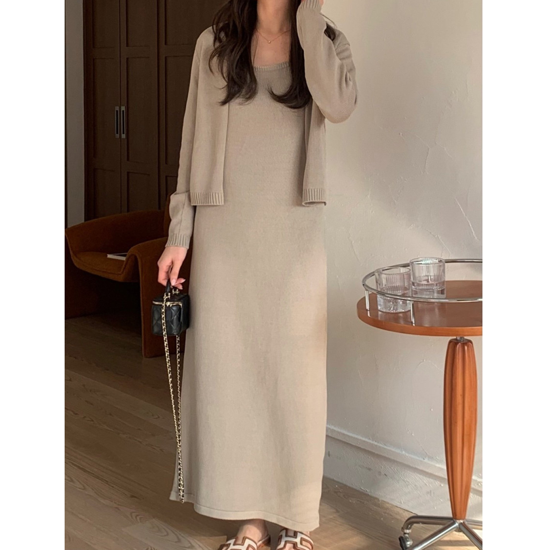 우트 나시 원피스와 가디건 세트 투피스 셋업