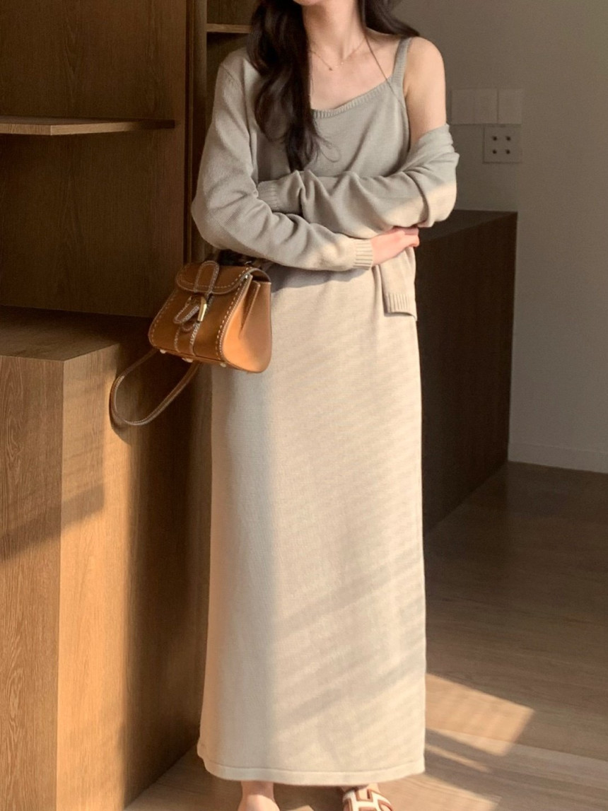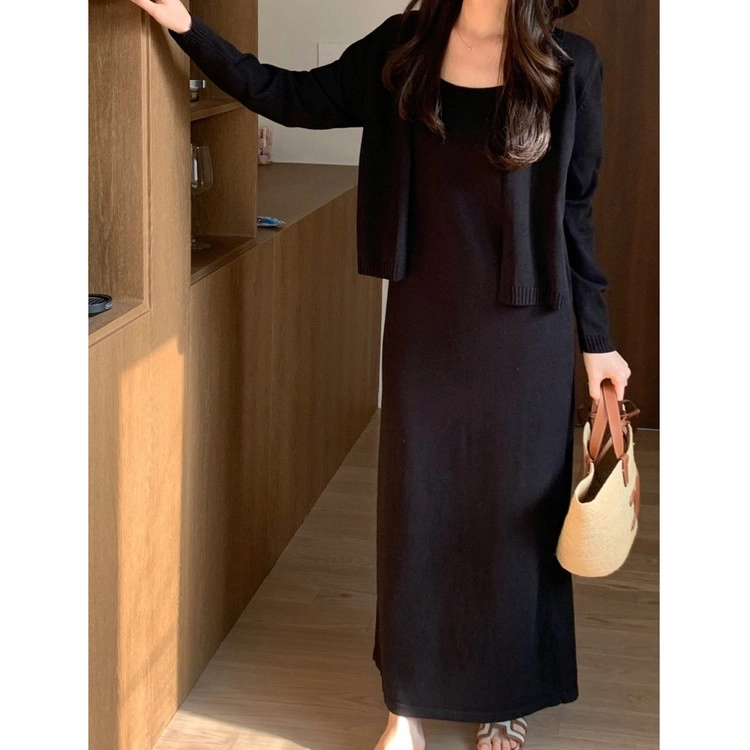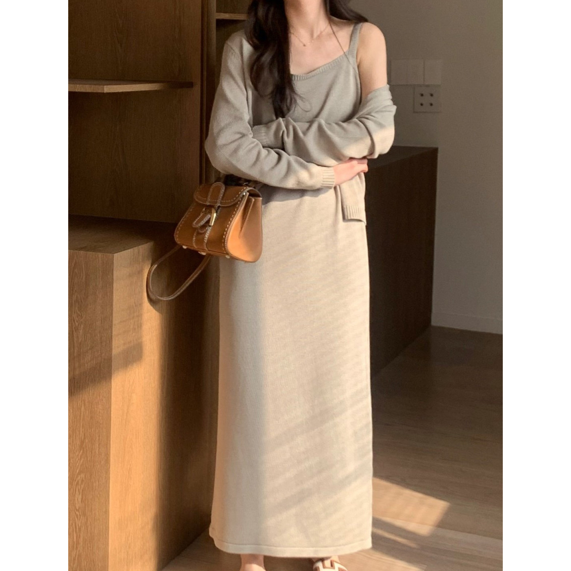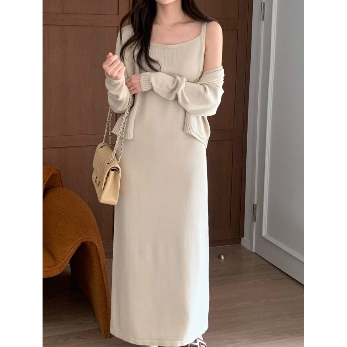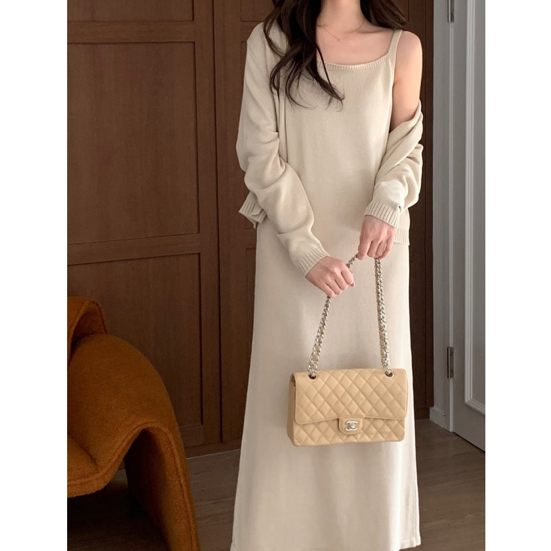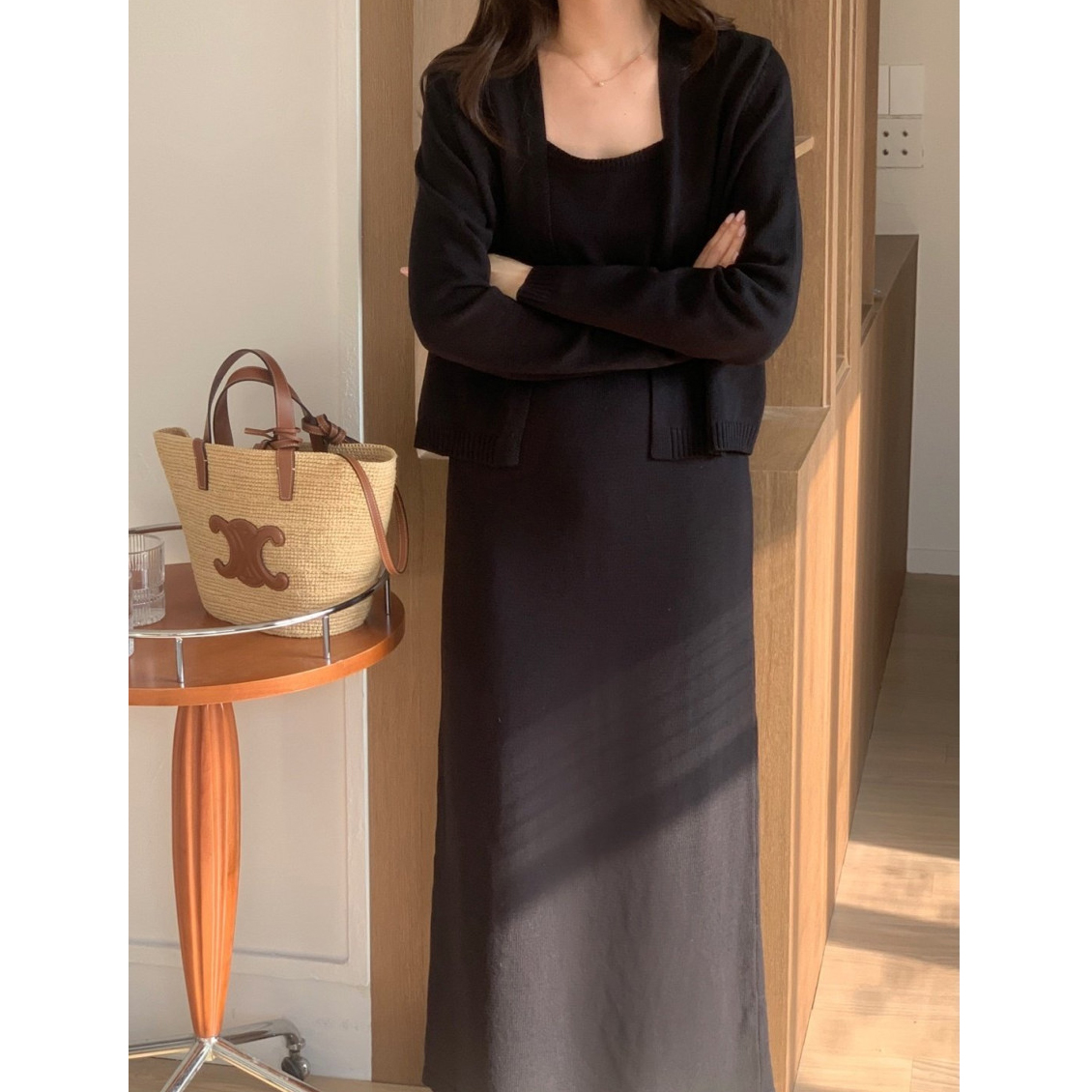 우트 나시 원피스와 가디건 세트 투피스 셋업