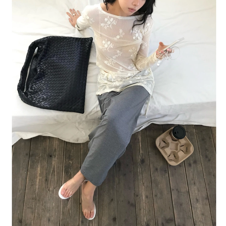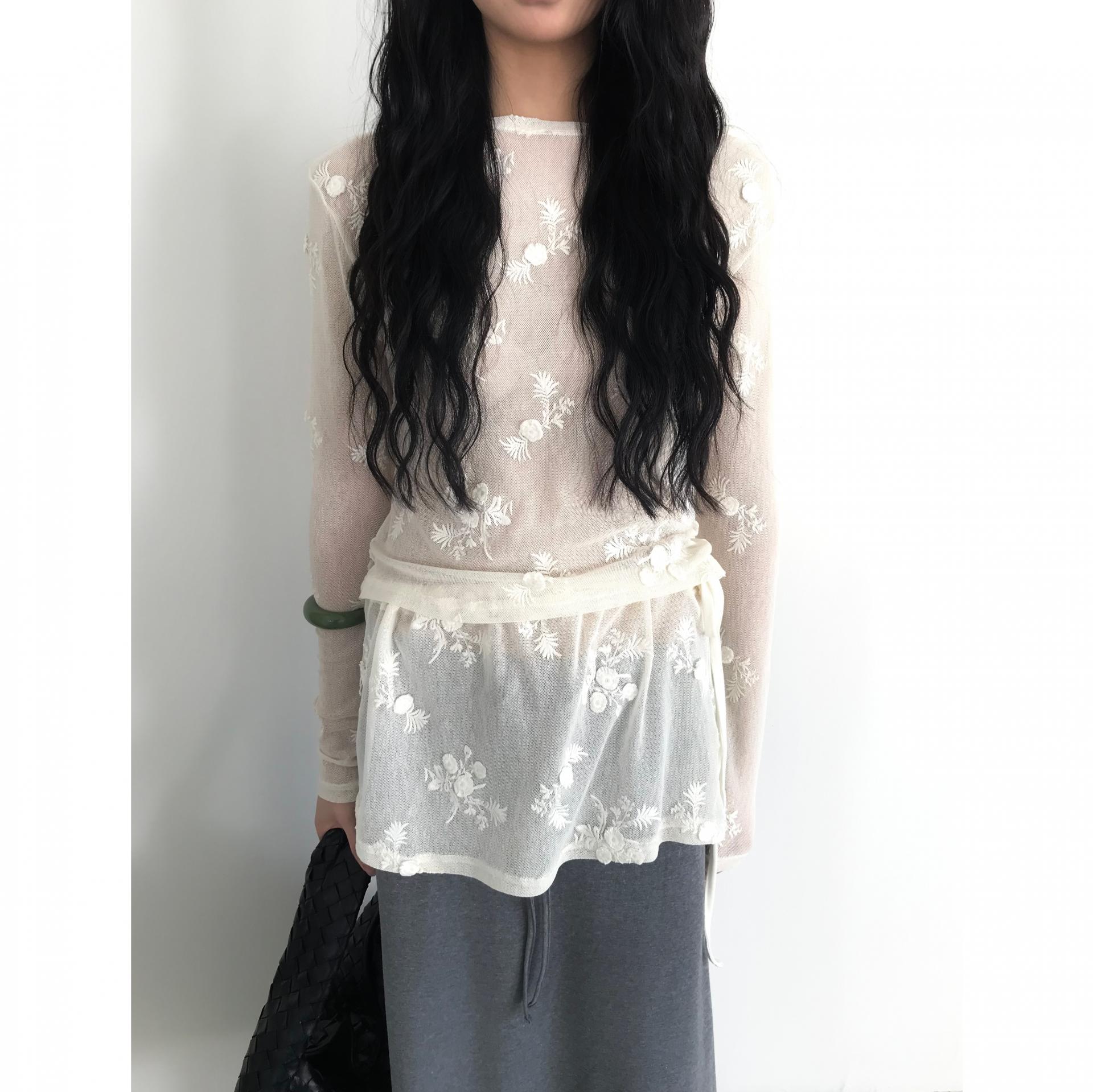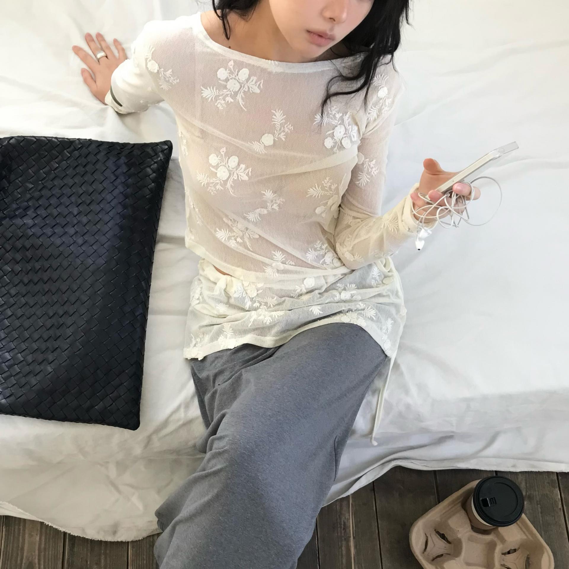 26SS 라원 플라워 시스루 레이스 양면착용 티셔츠