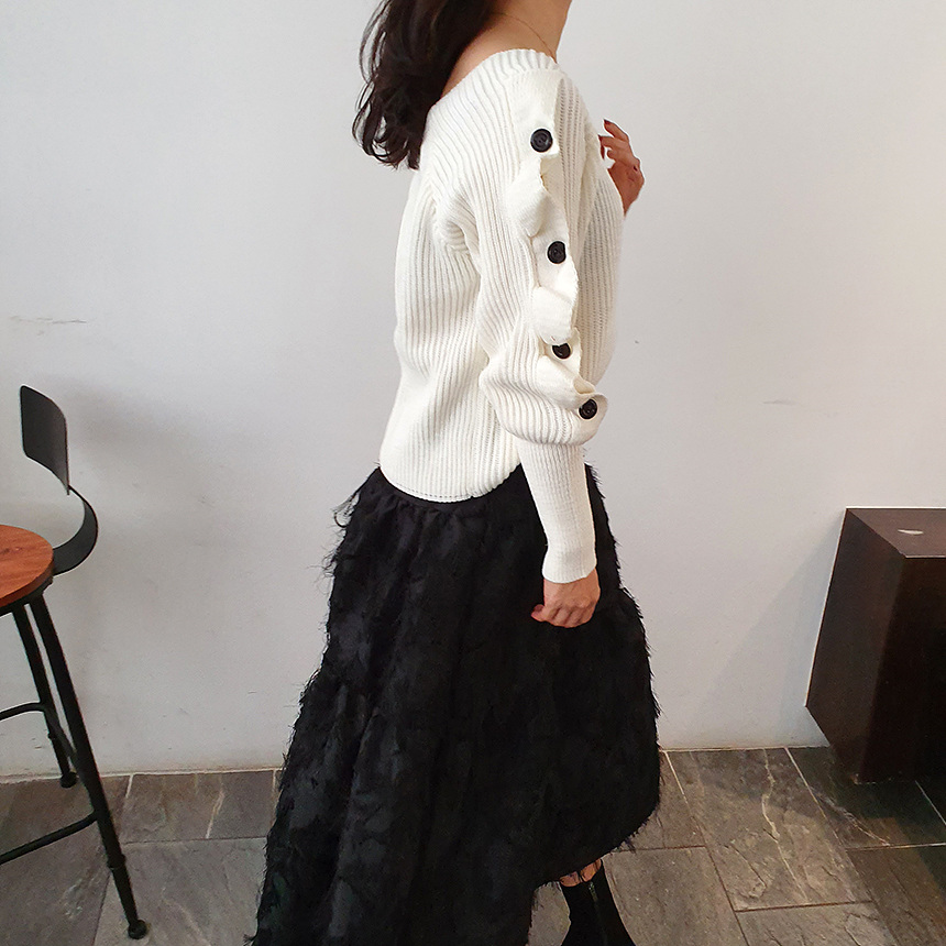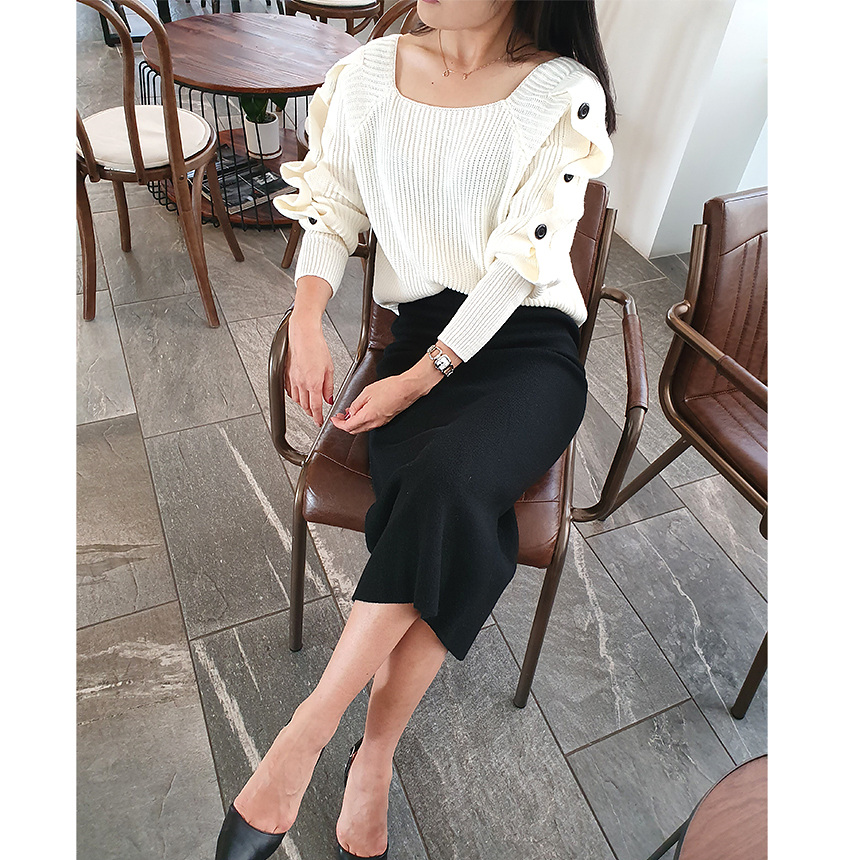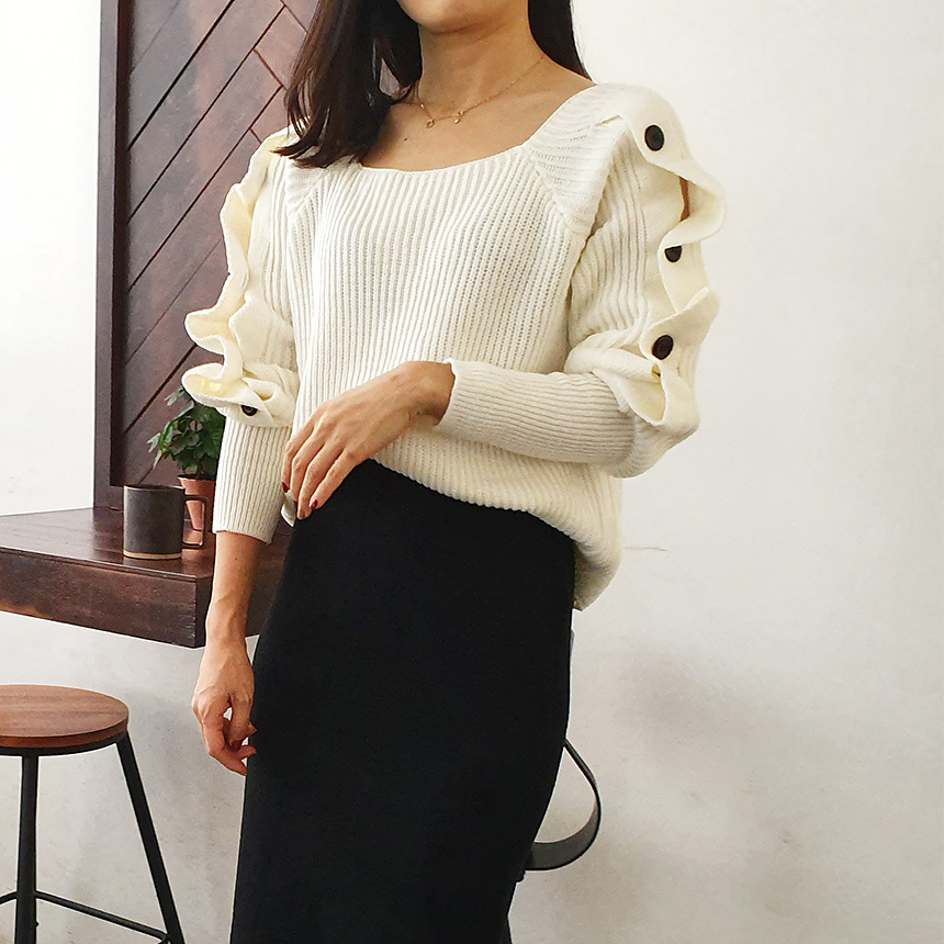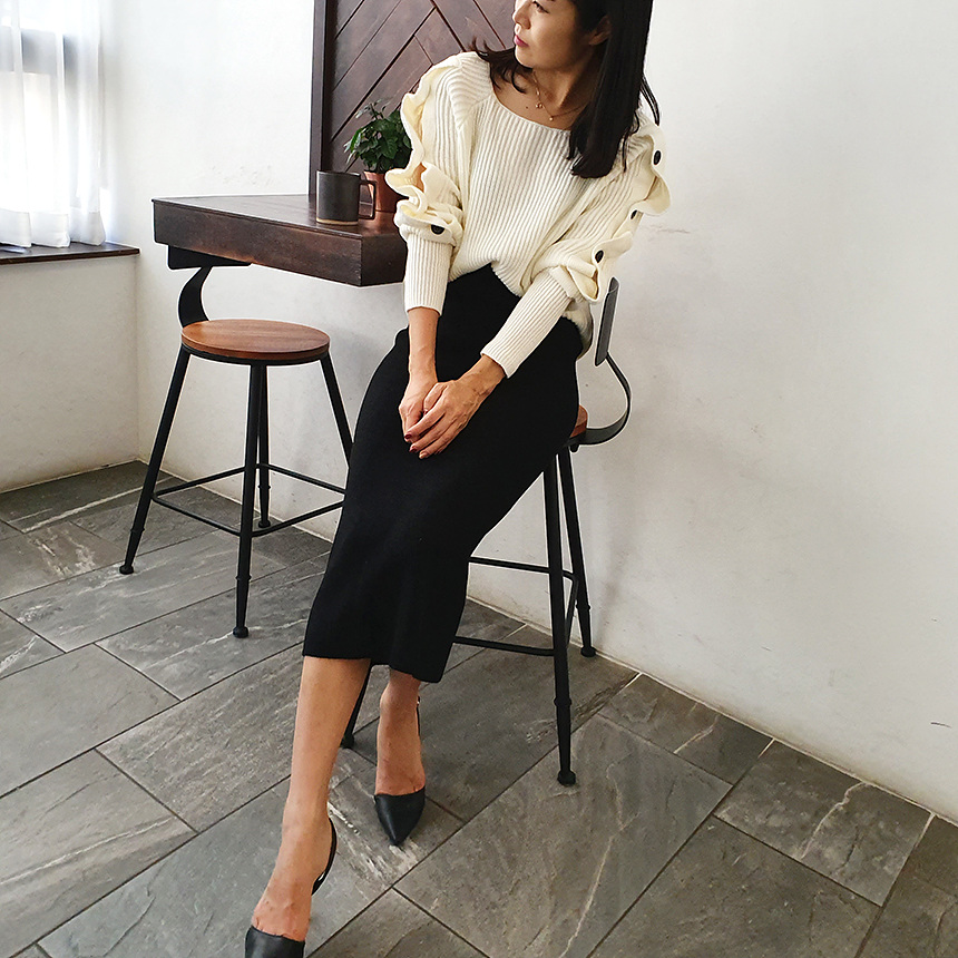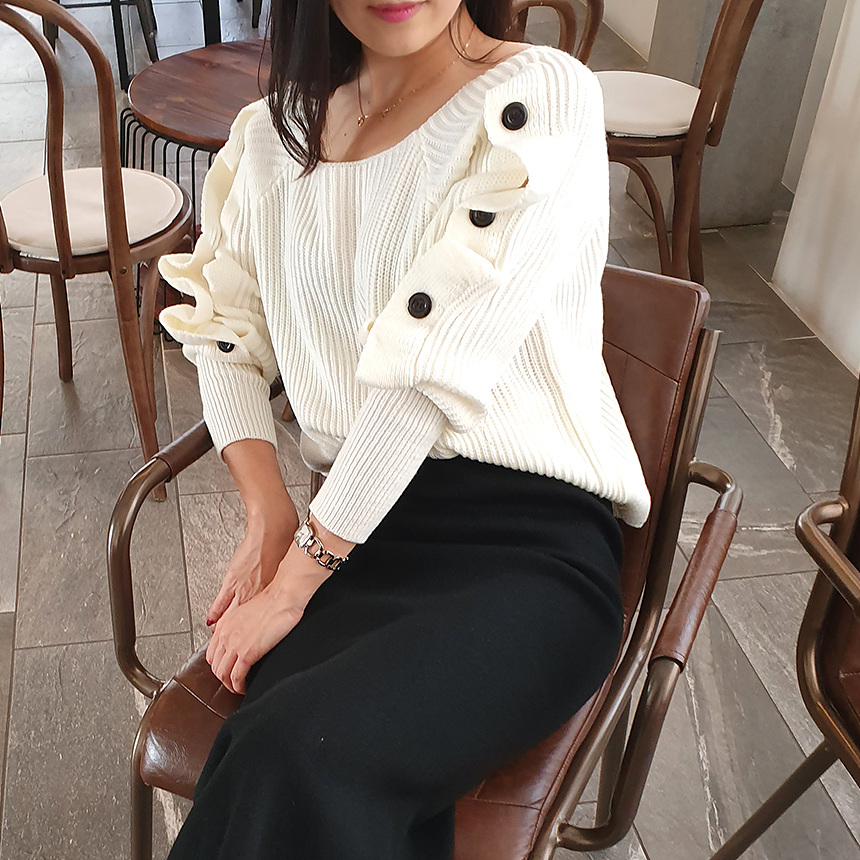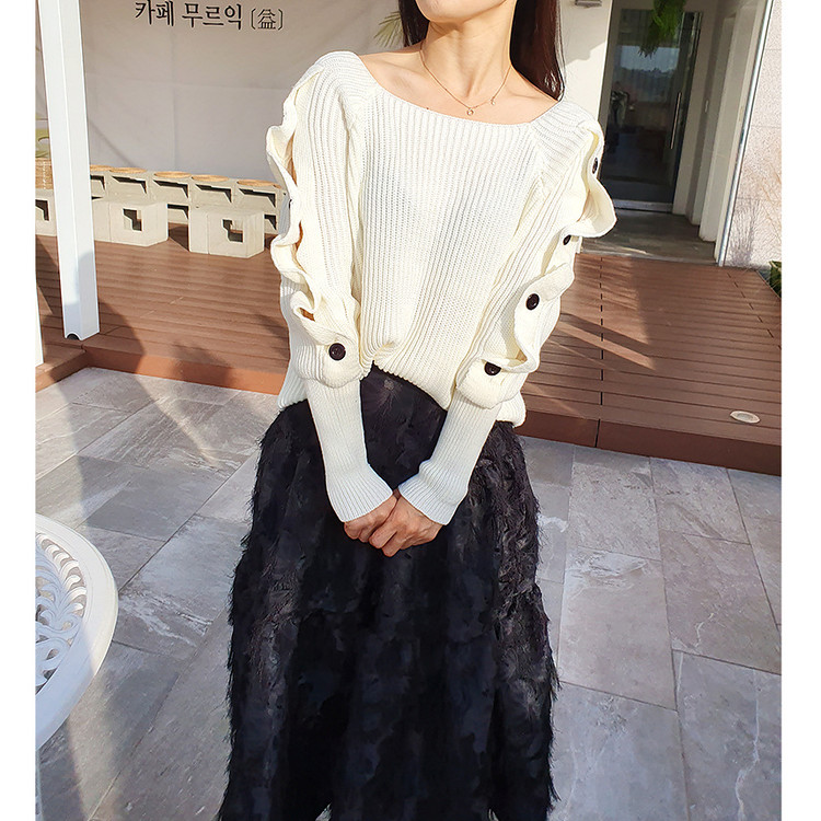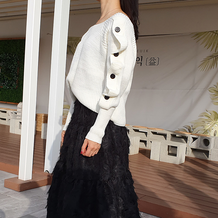창고정리 / 바로발송 어깨 트임 버튼 소매 니트