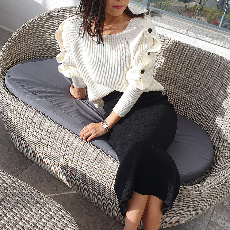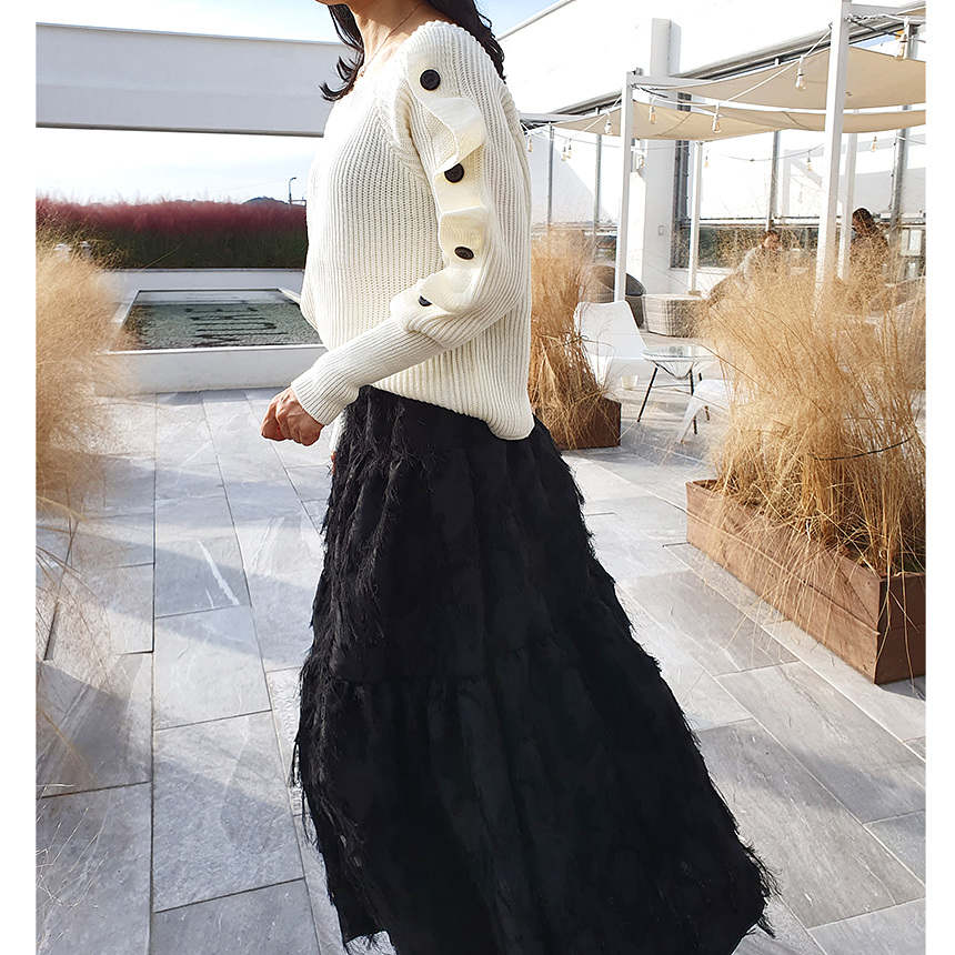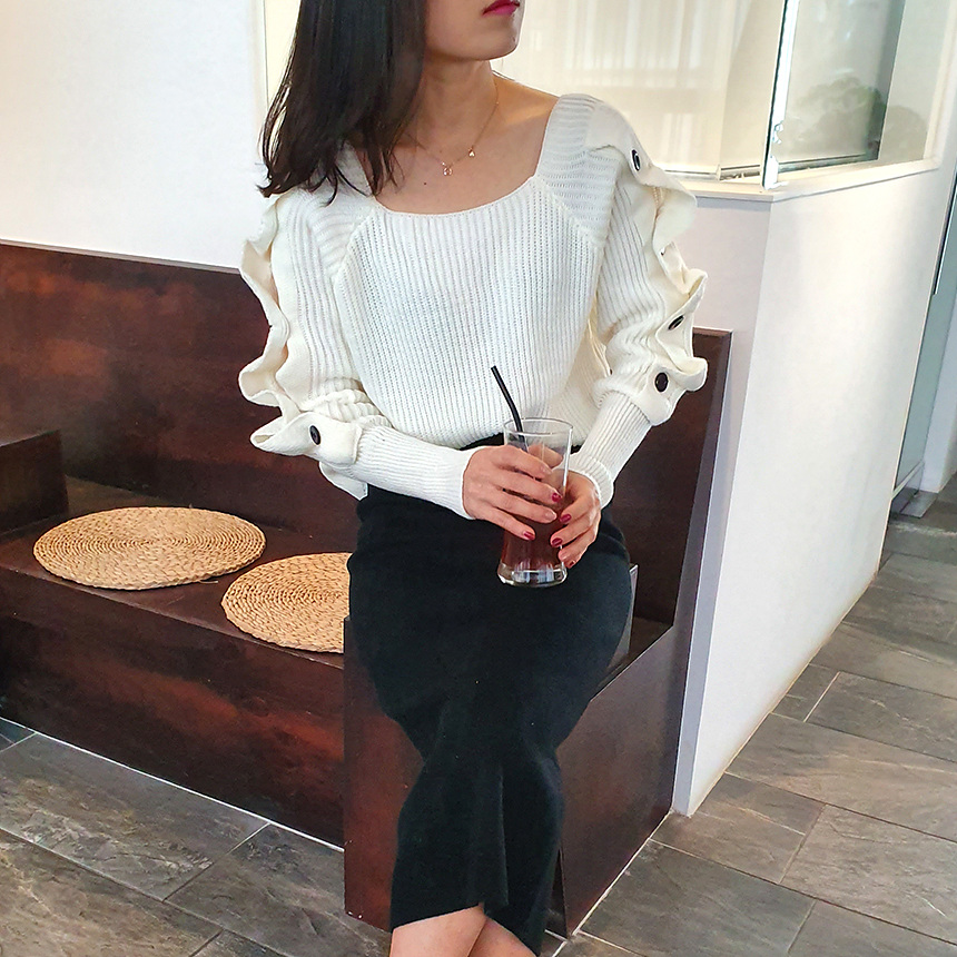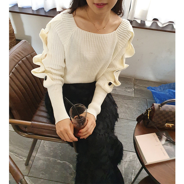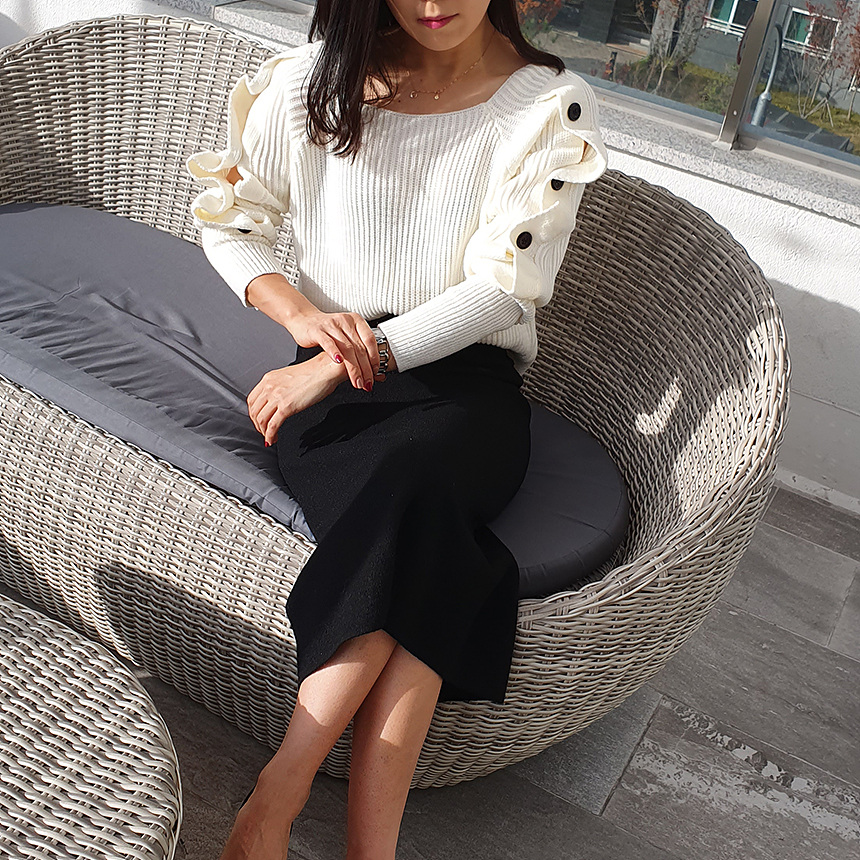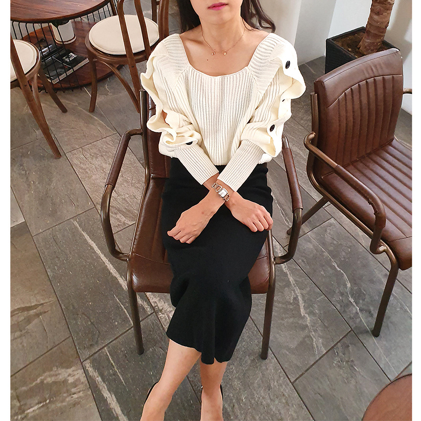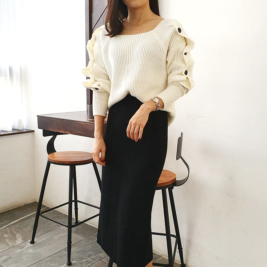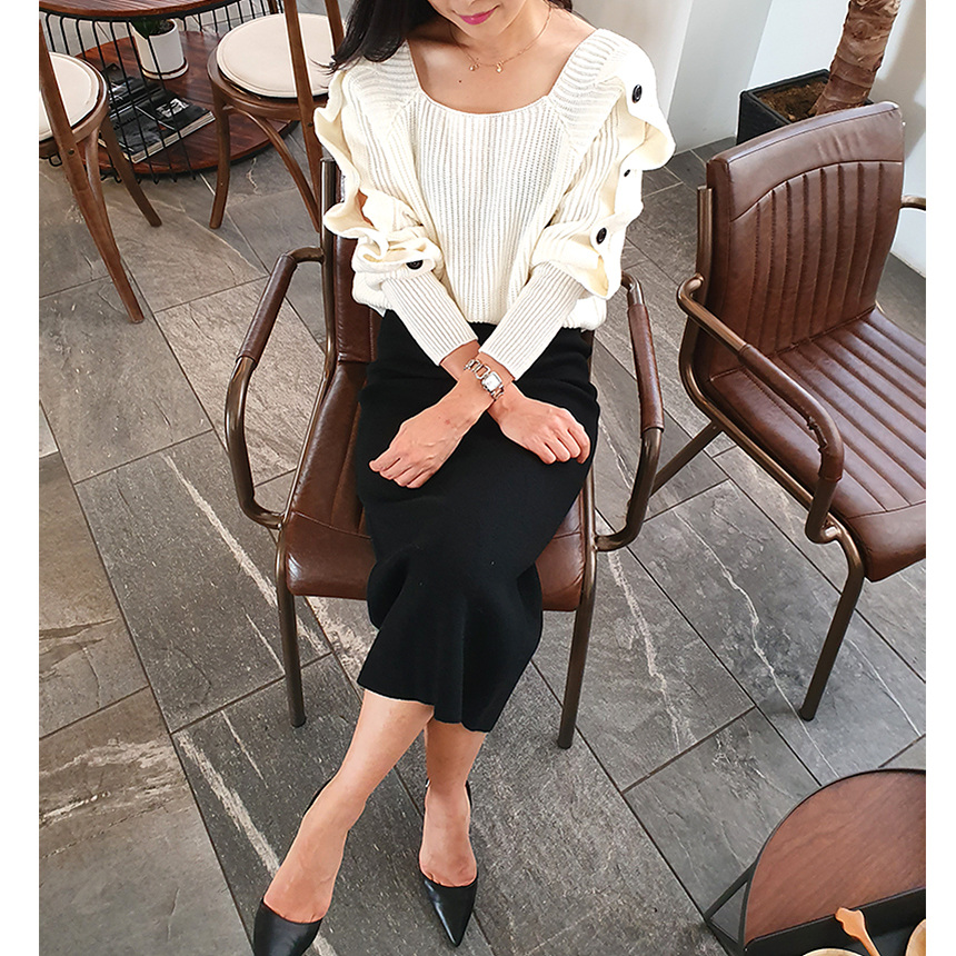 창고정리 / 바로발송 어깨 트임 버튼 소매 니트