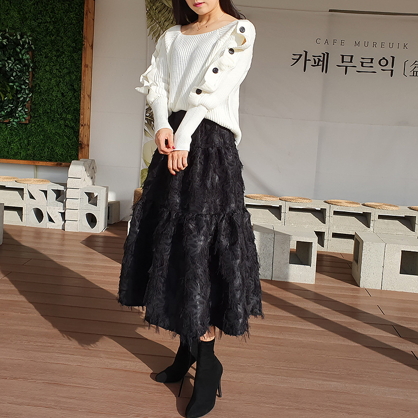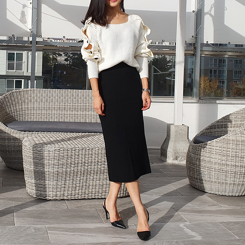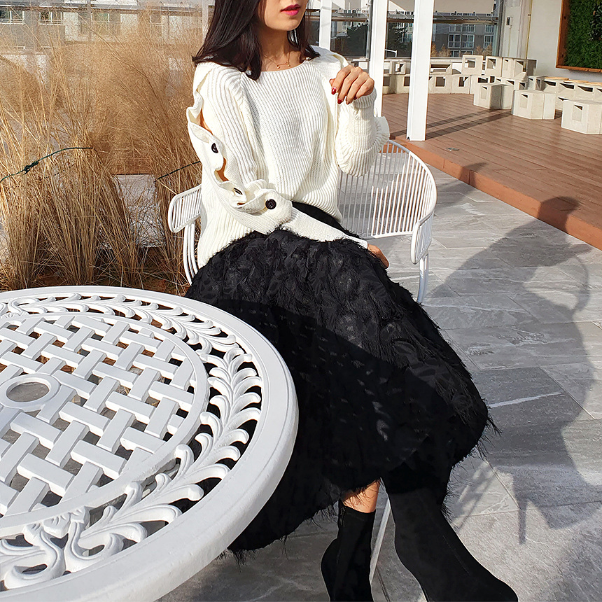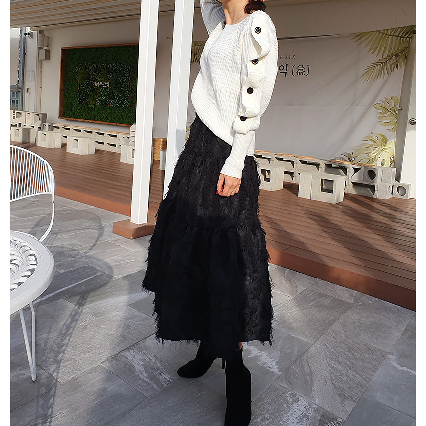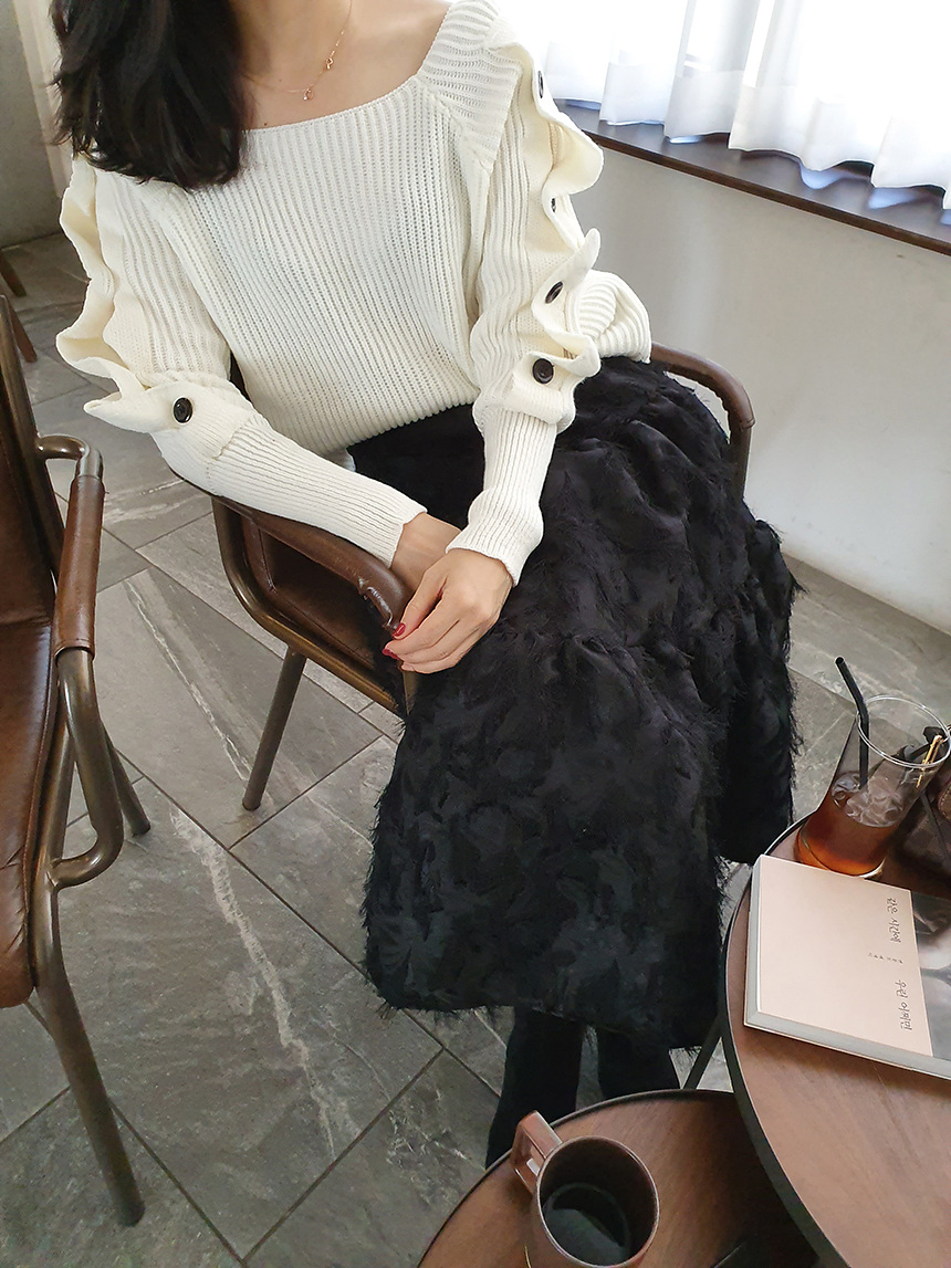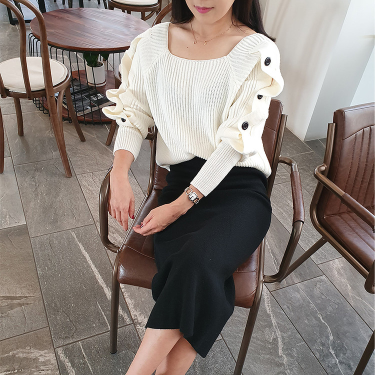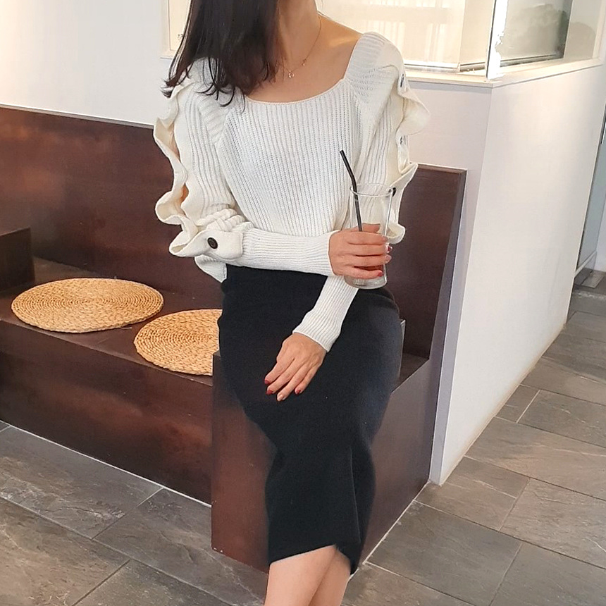 창고정리 / 바로발송 어깨 트임 버튼 소매 니트