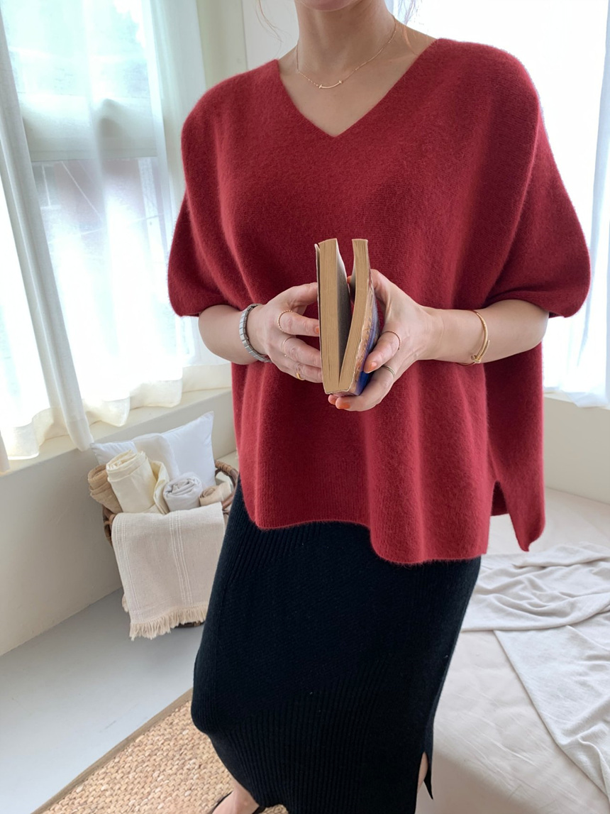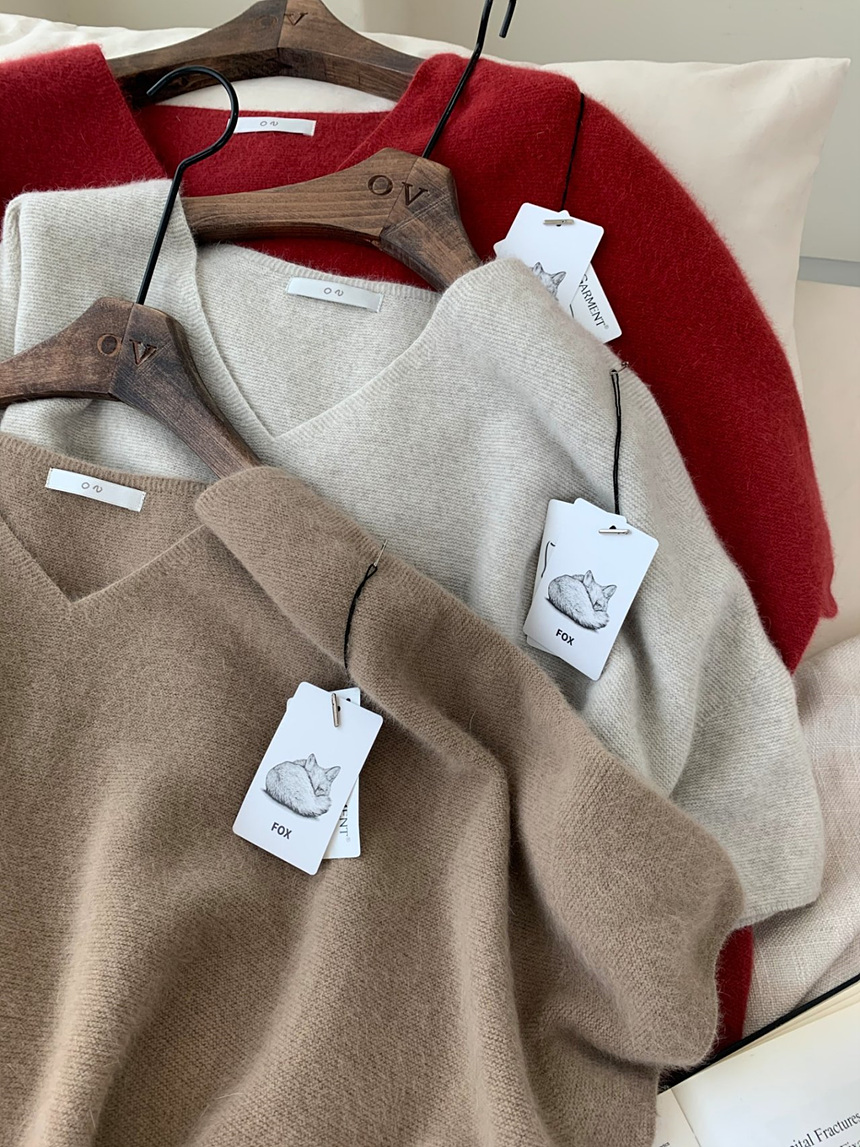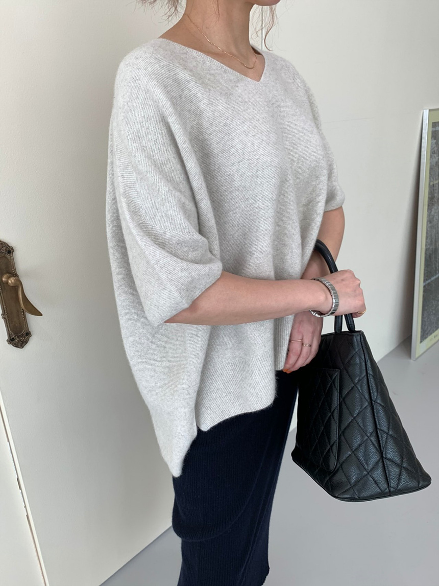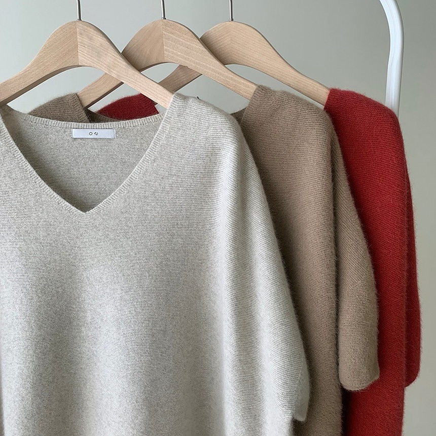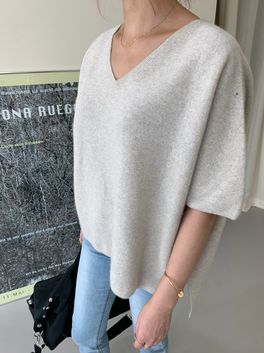 브이넥 홀가 박시 니트에요