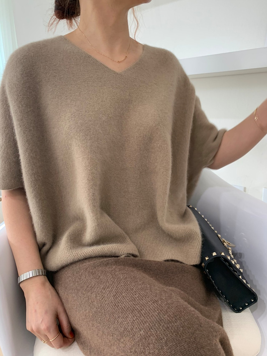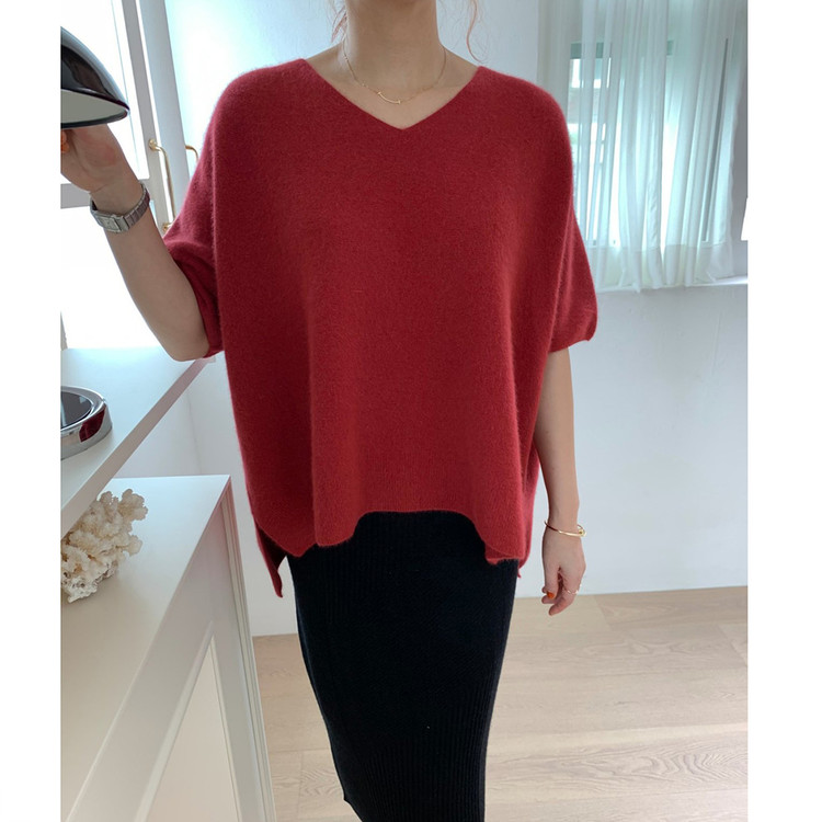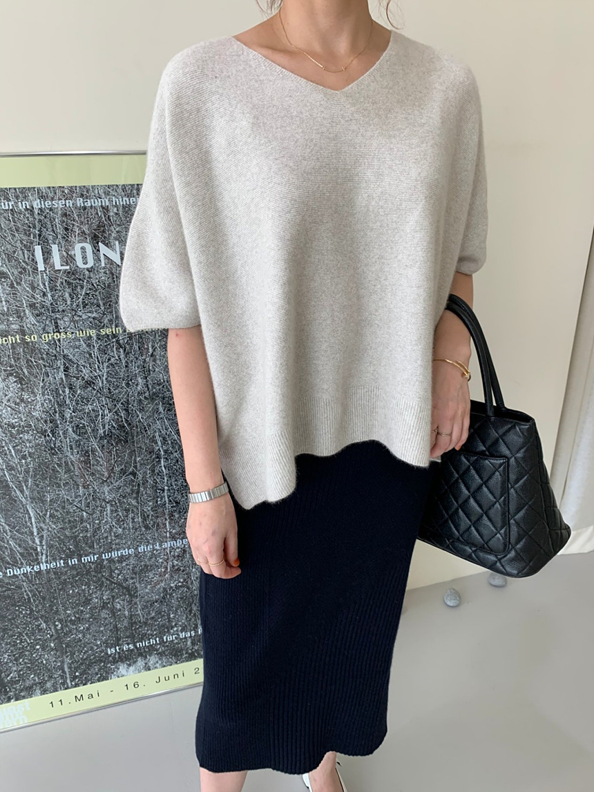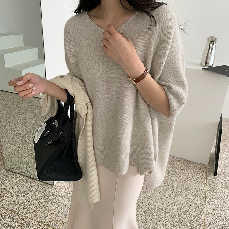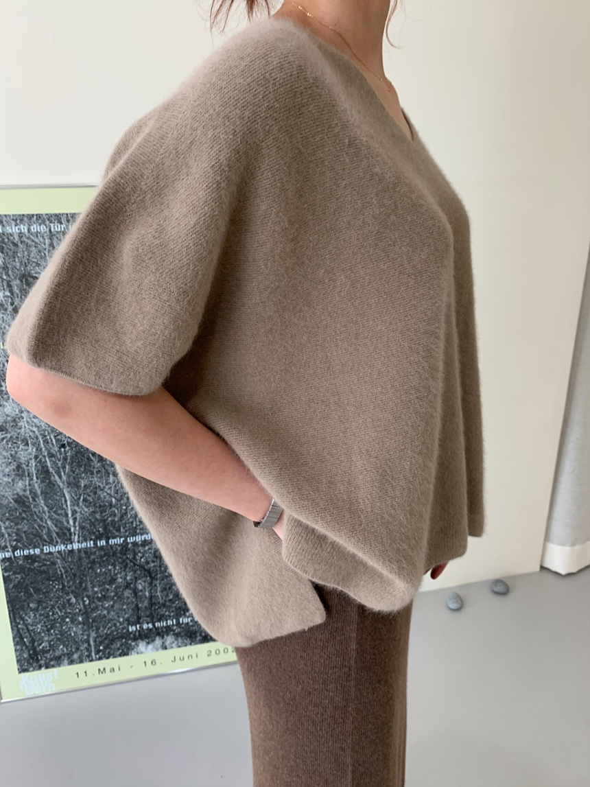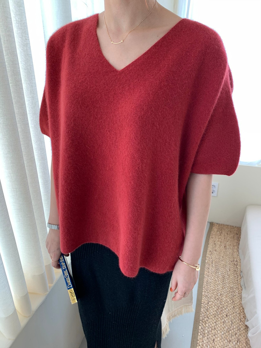 브이넥 홀가 박시 니트에요