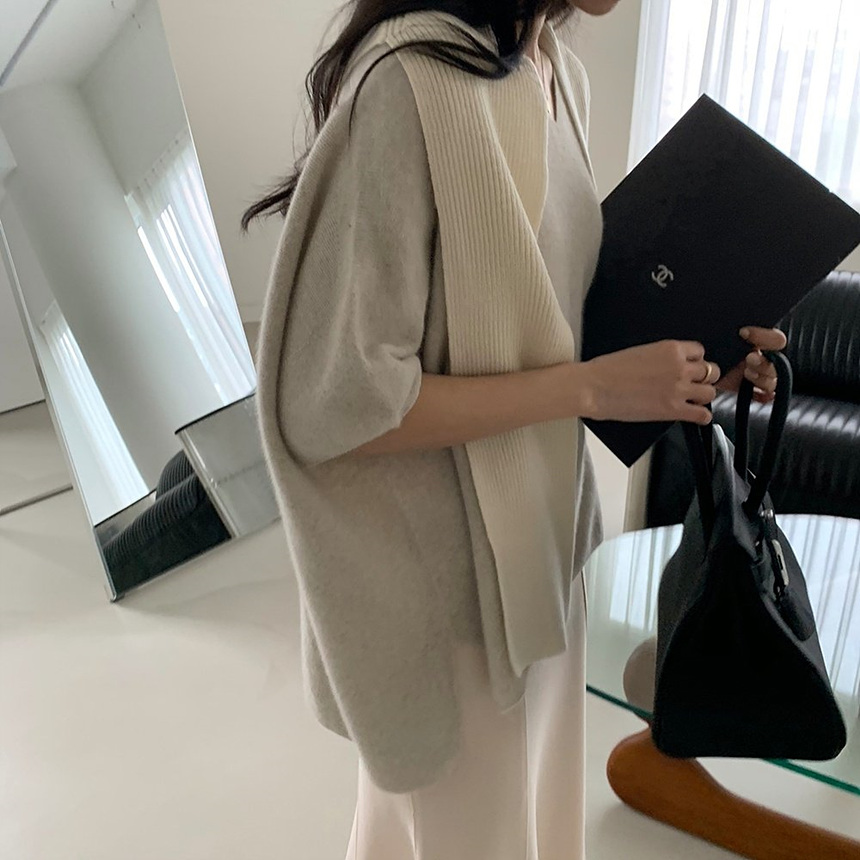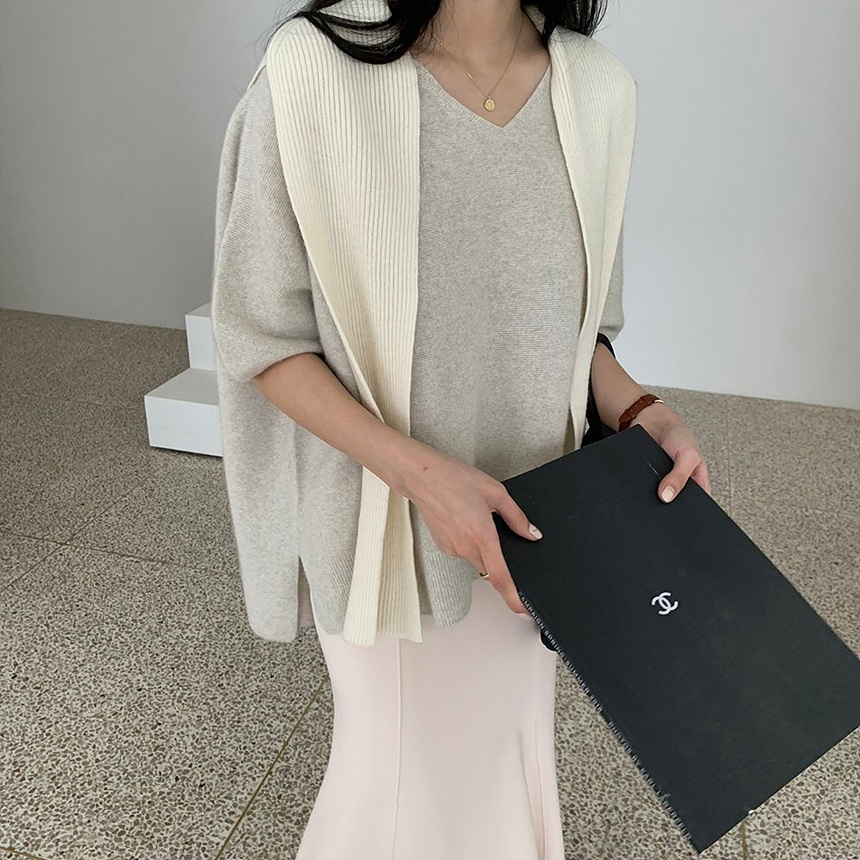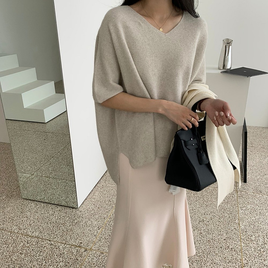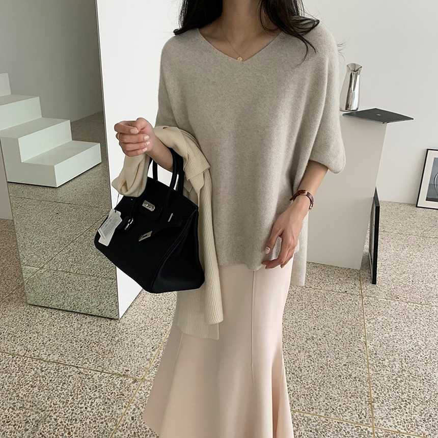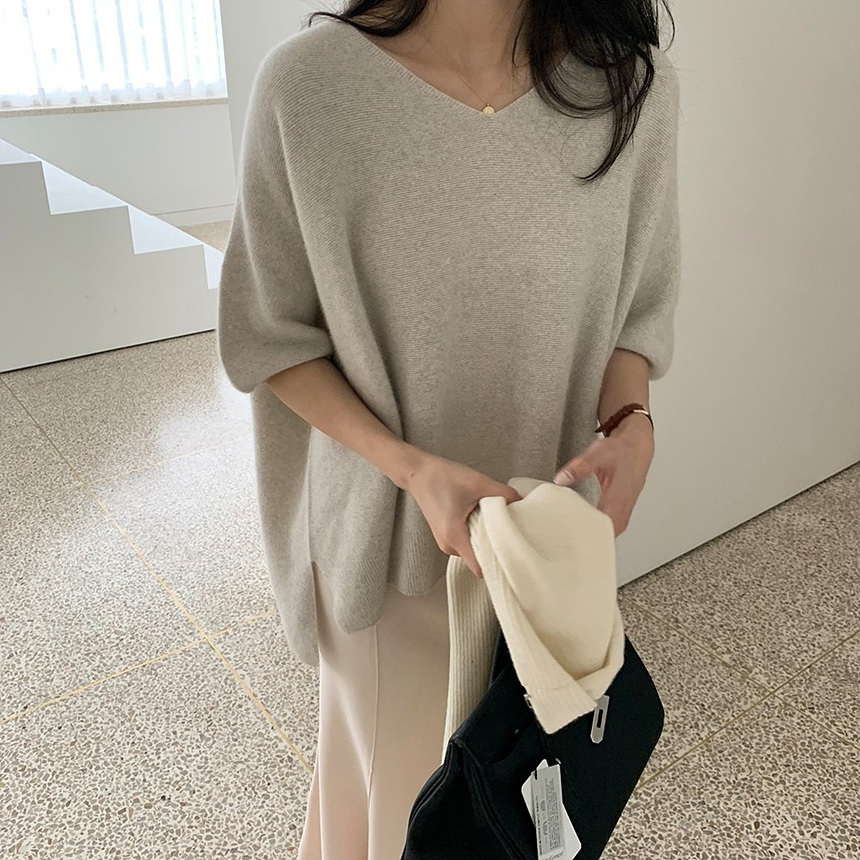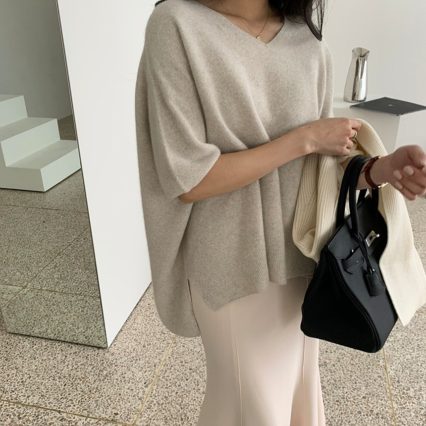 브이넥 홀가 박시 니트에요
