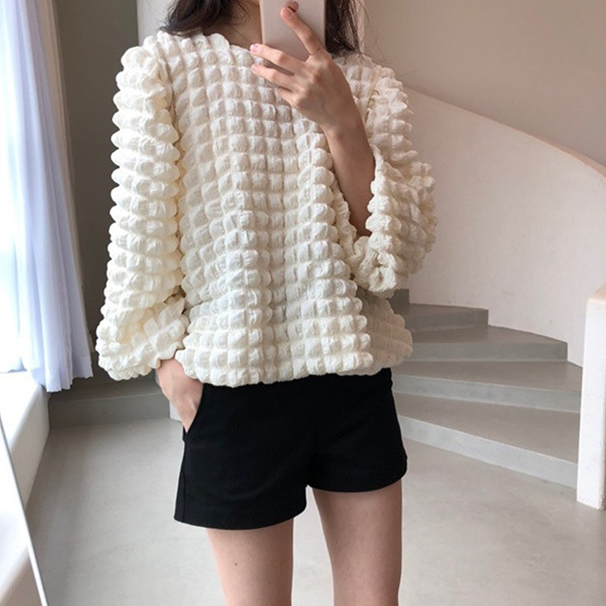 바로발송 퐁퐁 엠보 블라우스