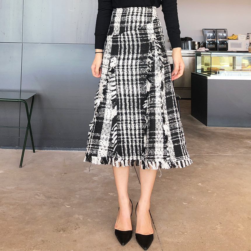 수입 고퀄리티 트위드 머메이드 롱 플레어 에이라인 스커트
