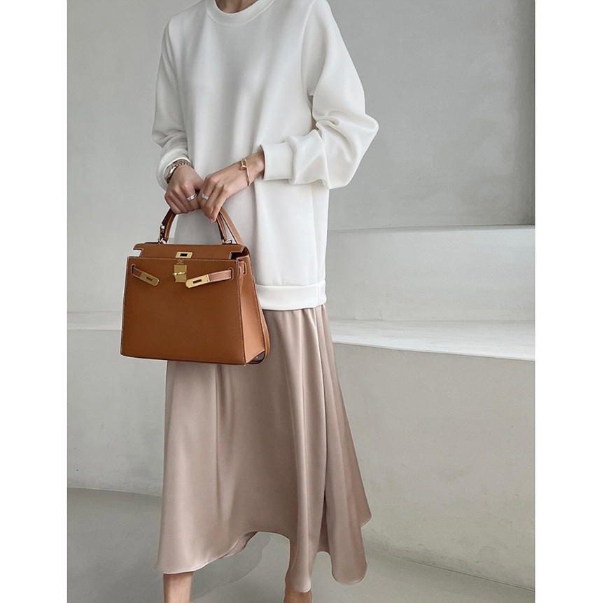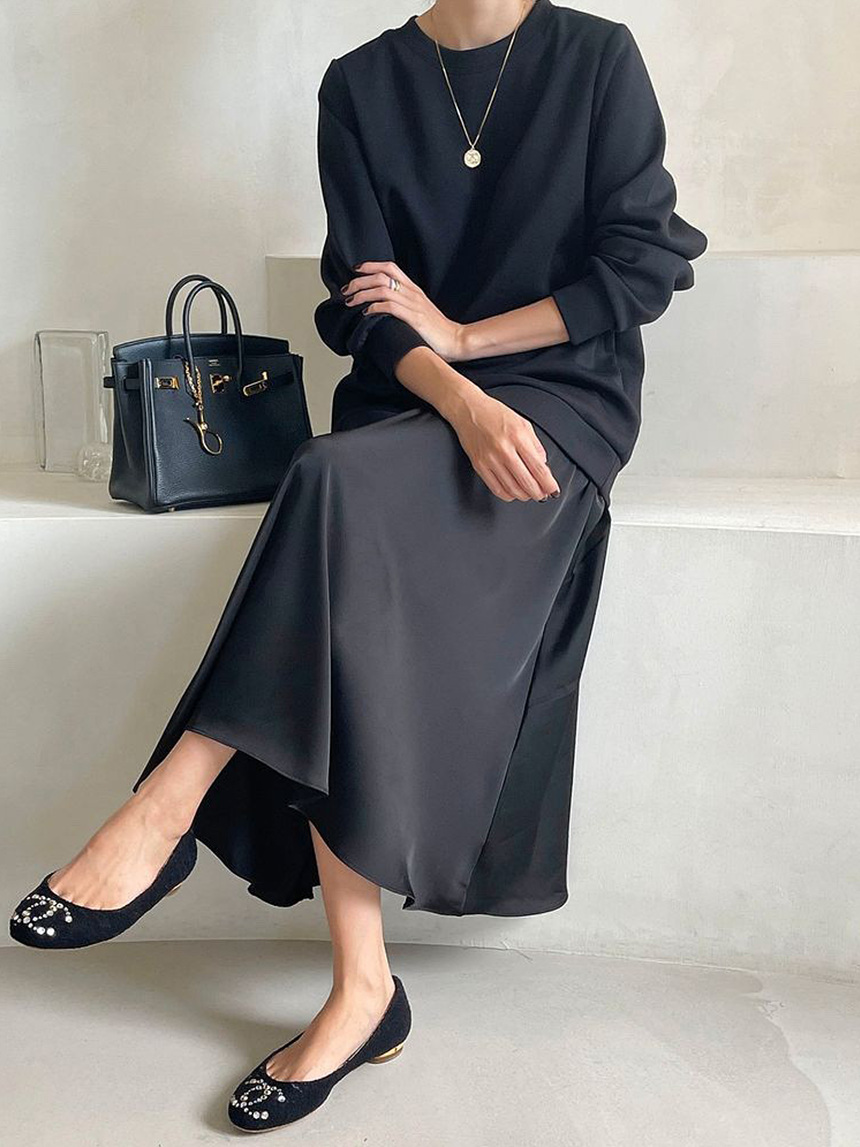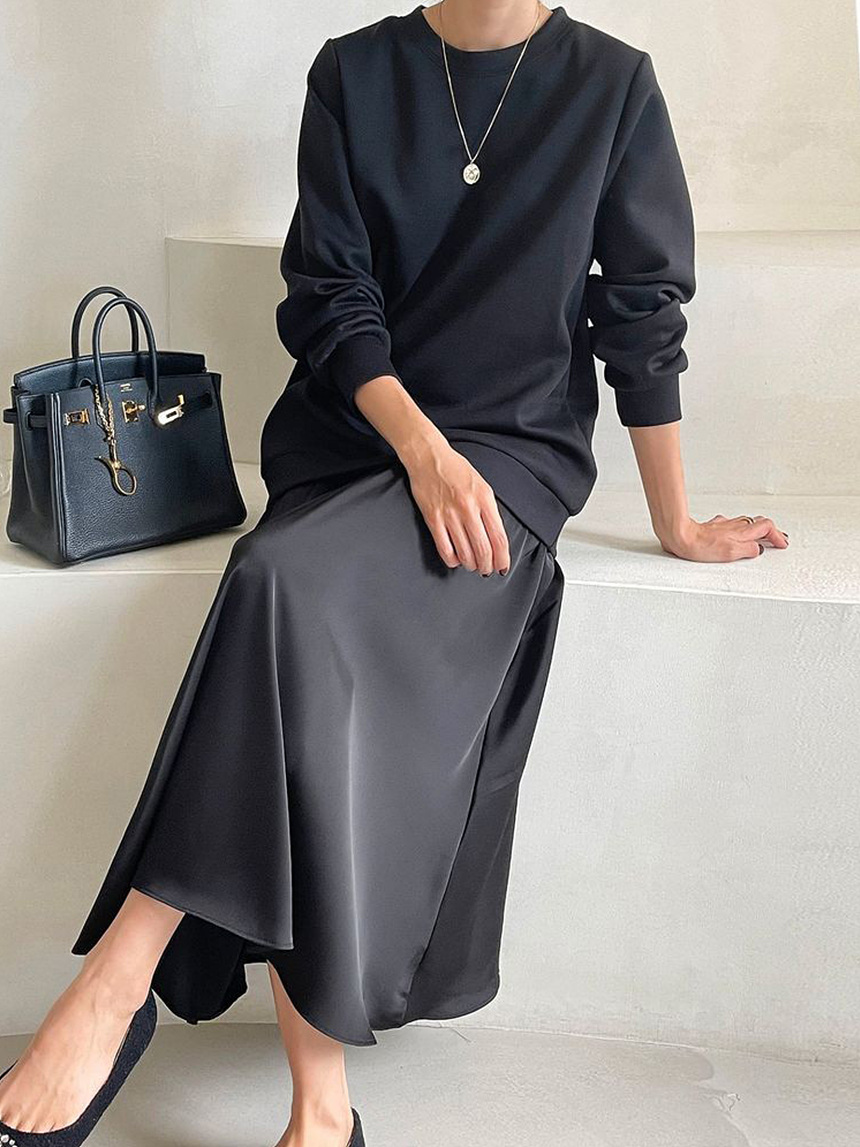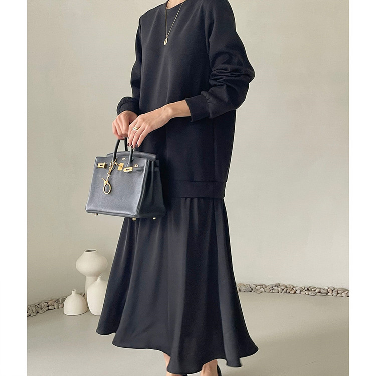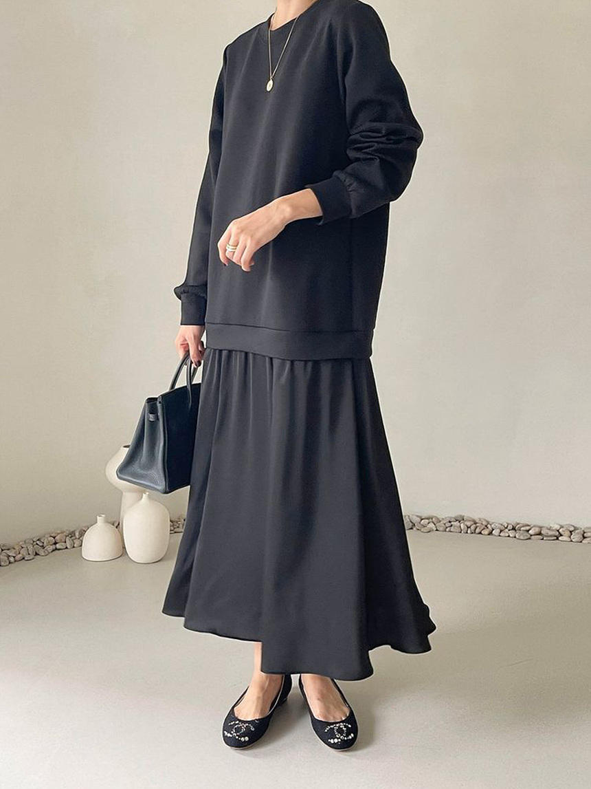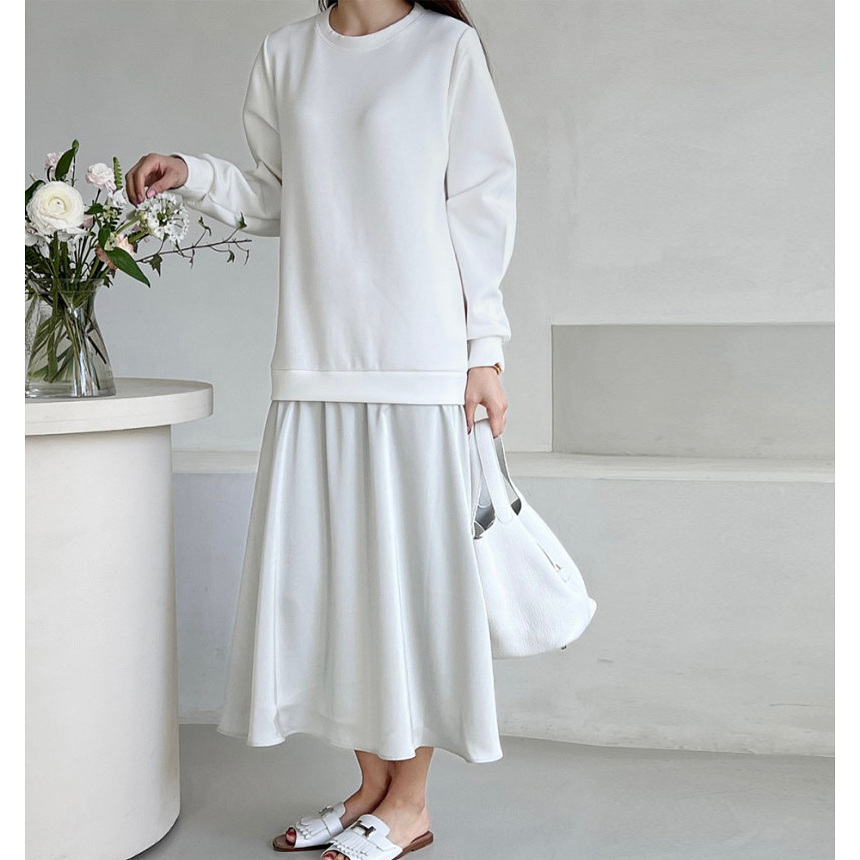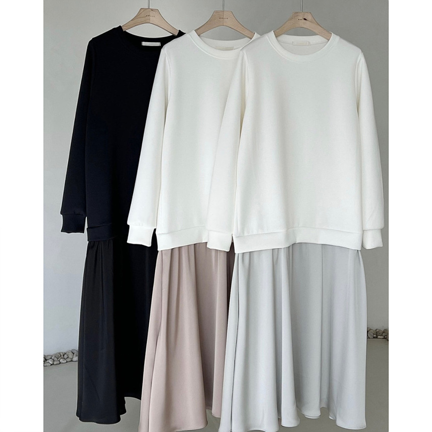 새틴 스커트 레이어드 맨투맨 롱 원피스