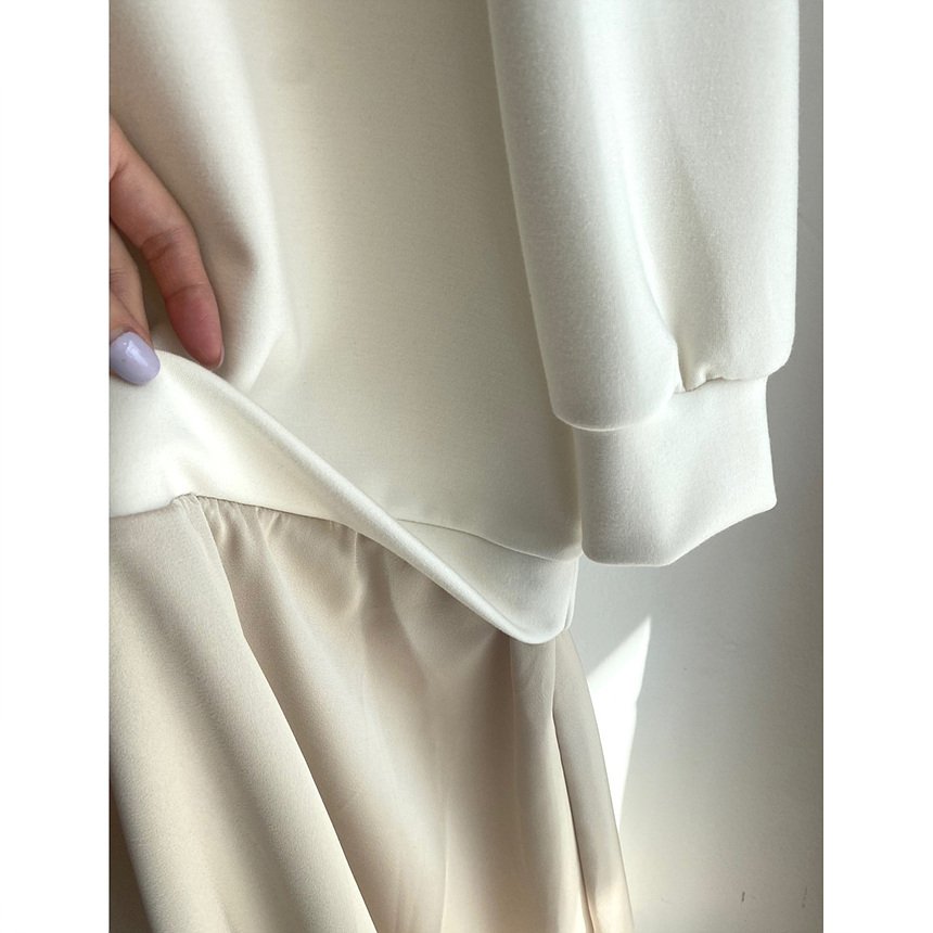 새틴 스커트가 레이어드 된 맨투맨 원피스에요