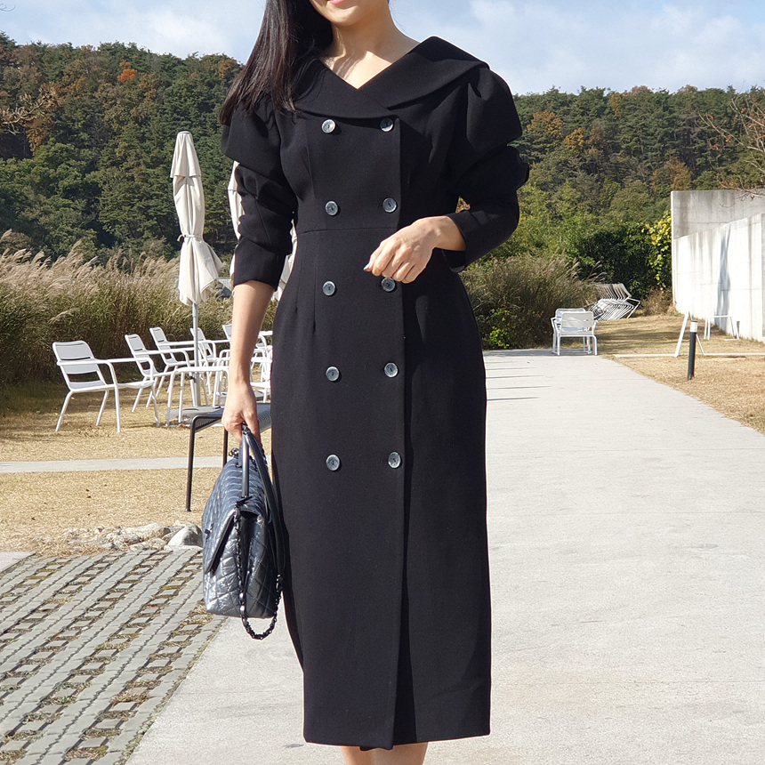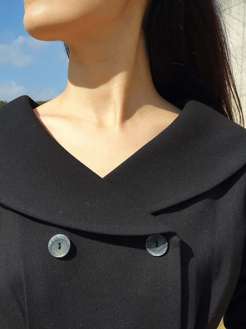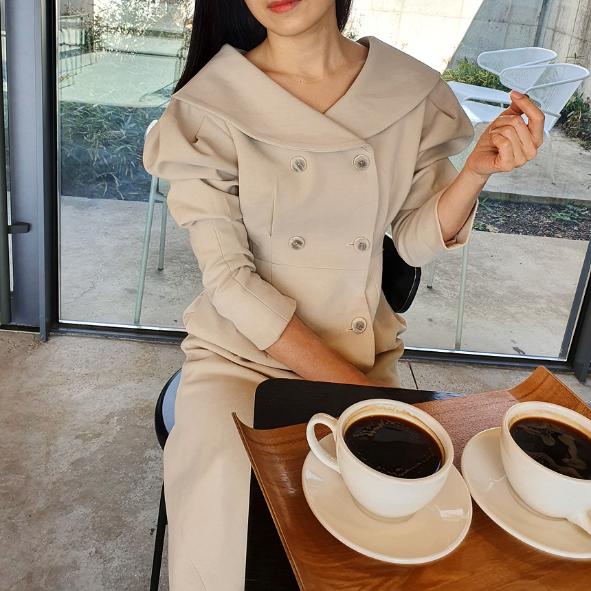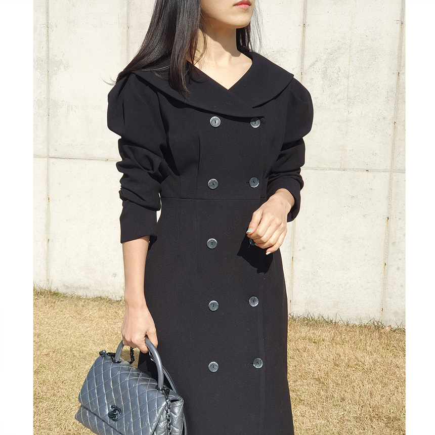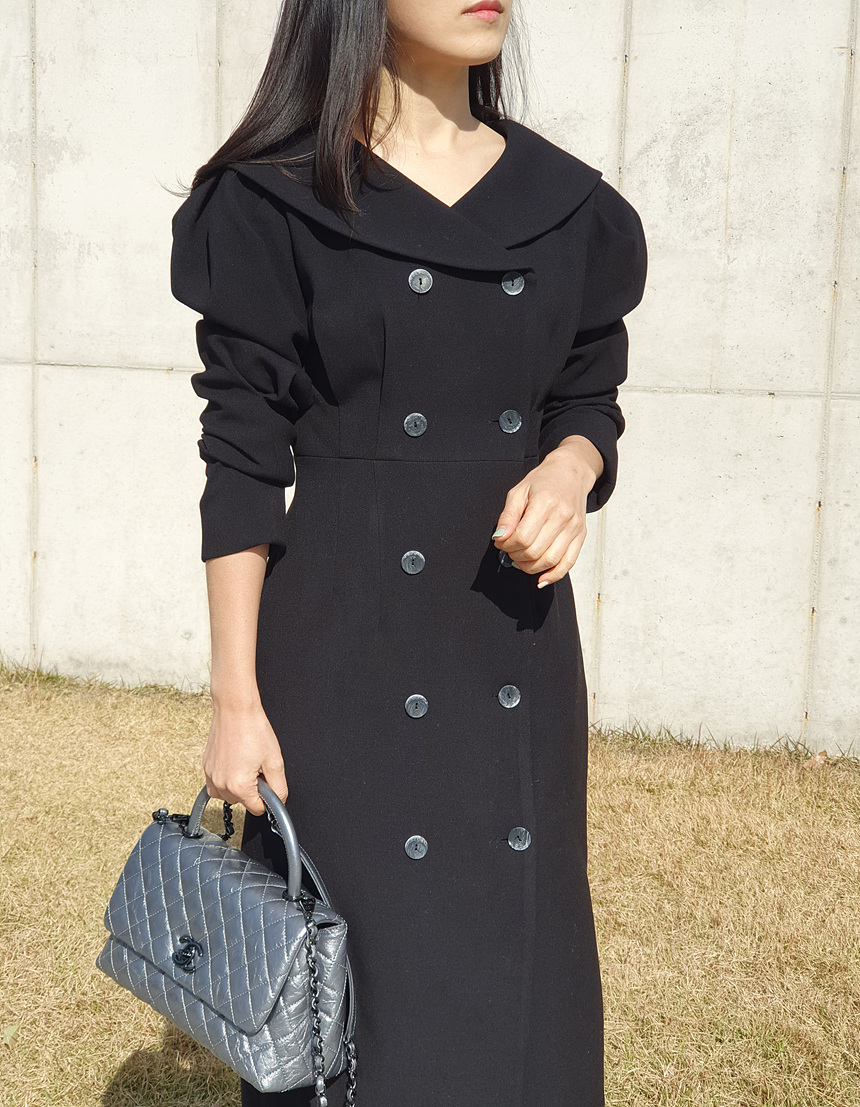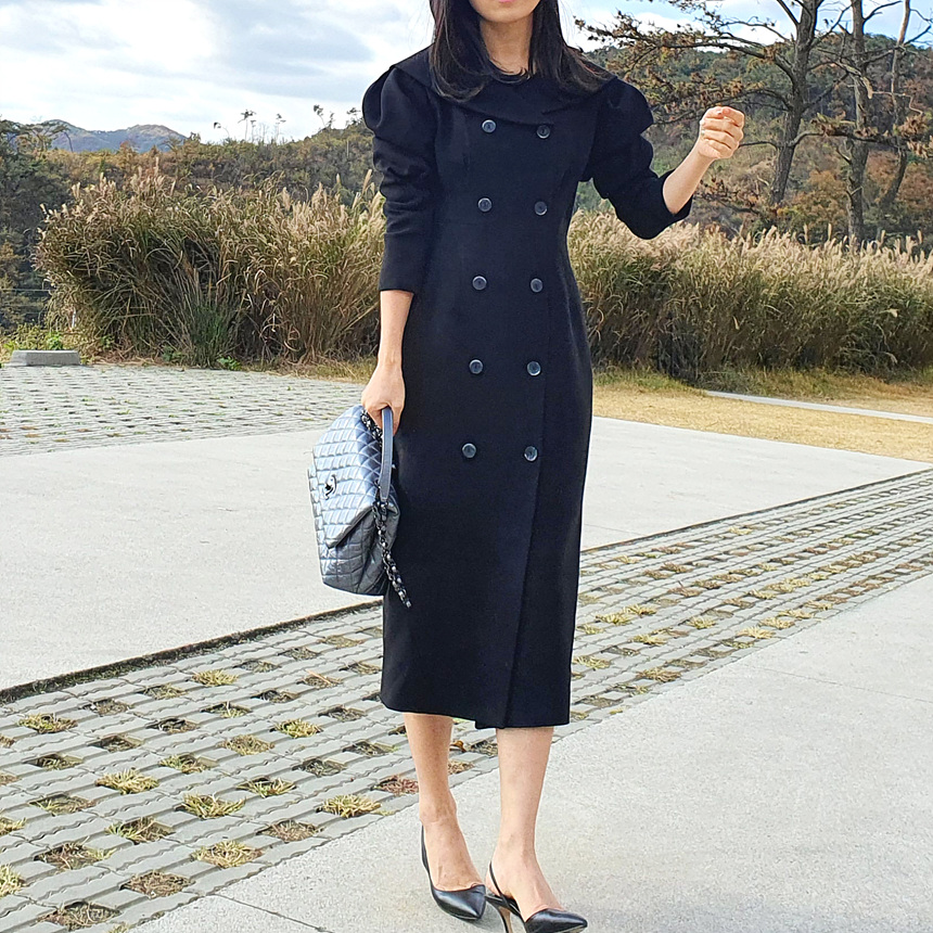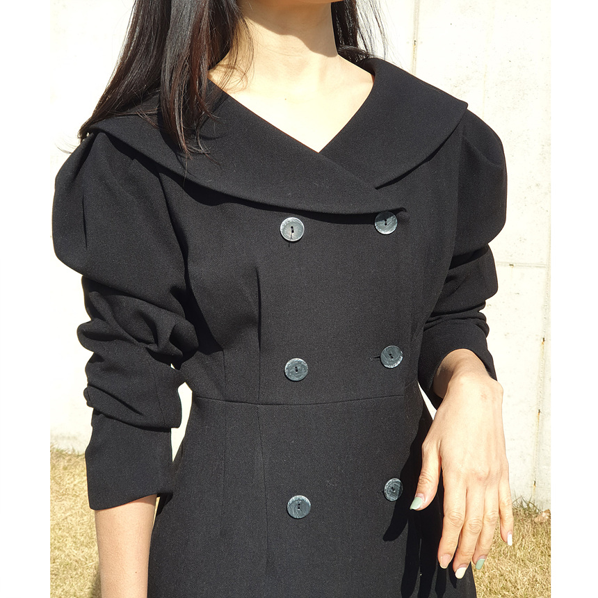 단아한 더블 버튼 세일러 카라 자켓형 원피스