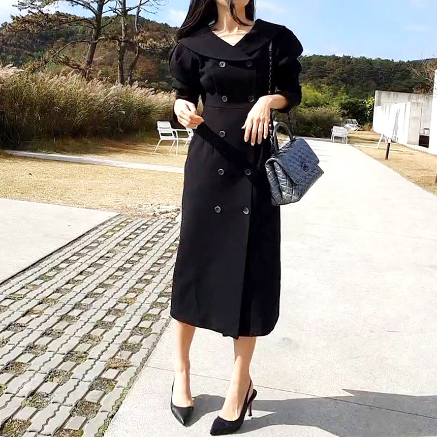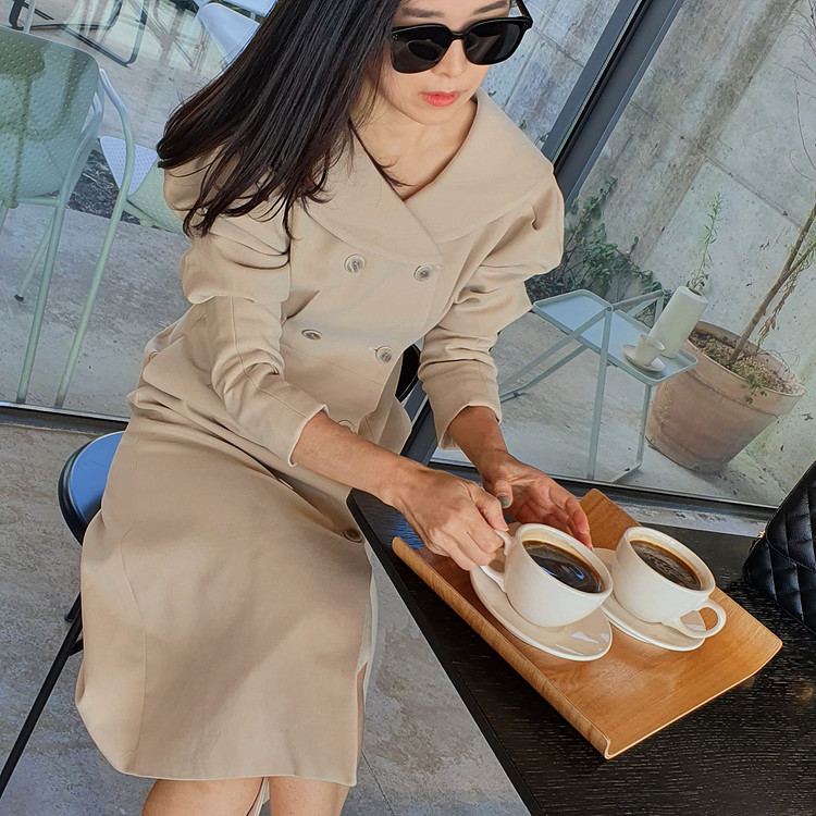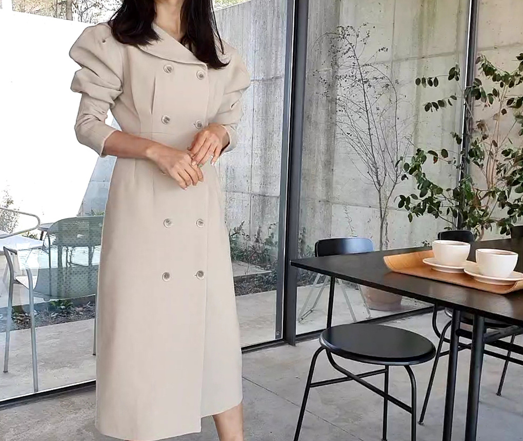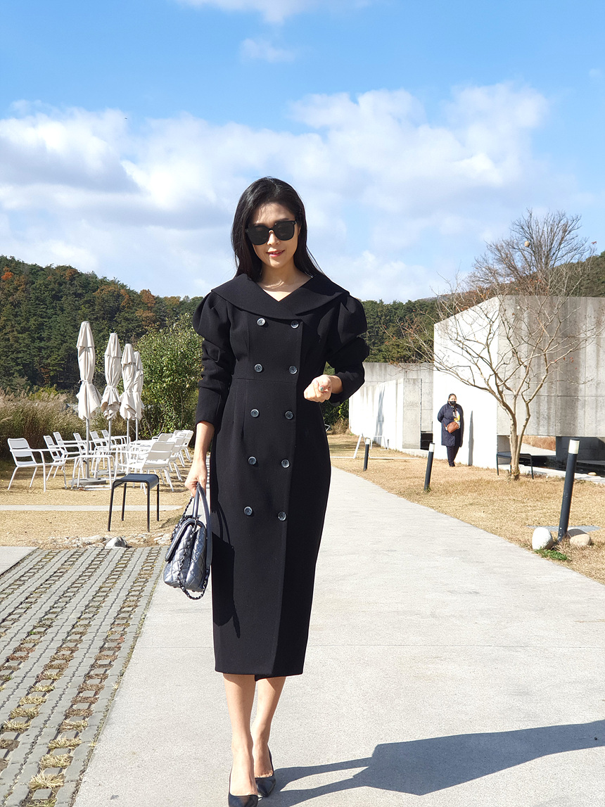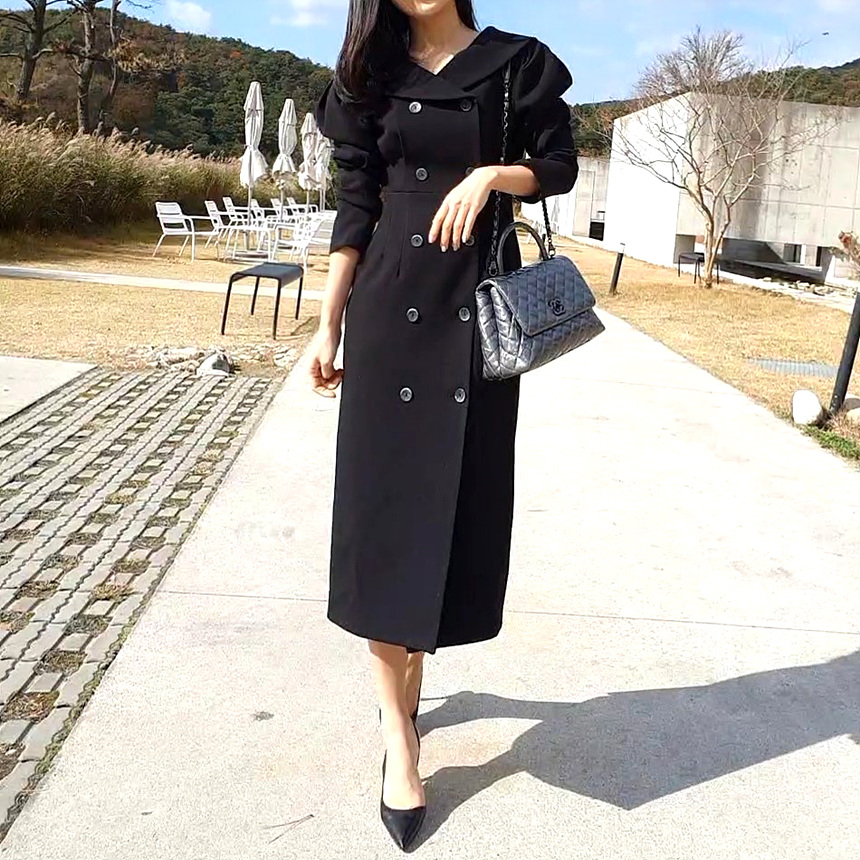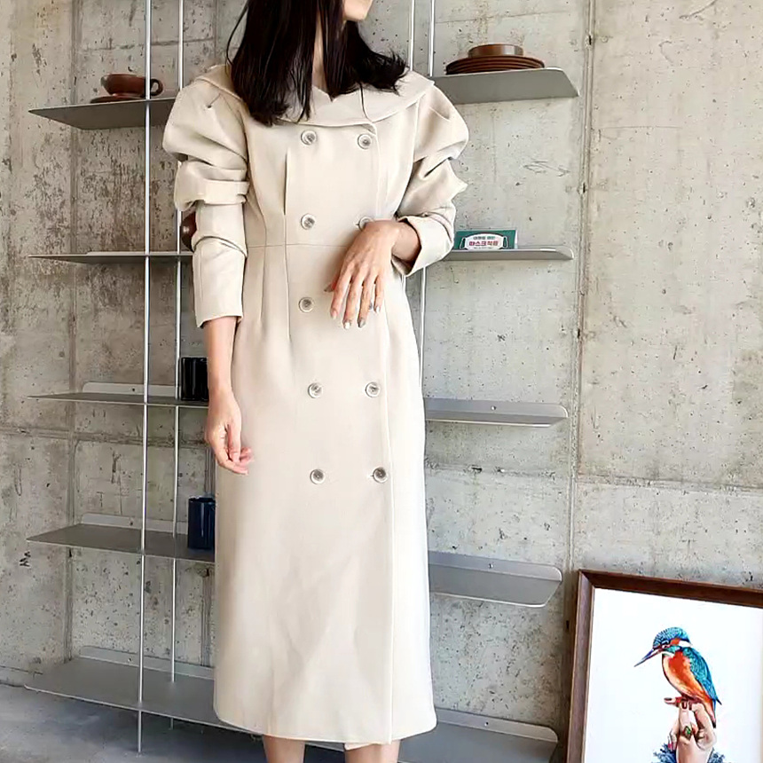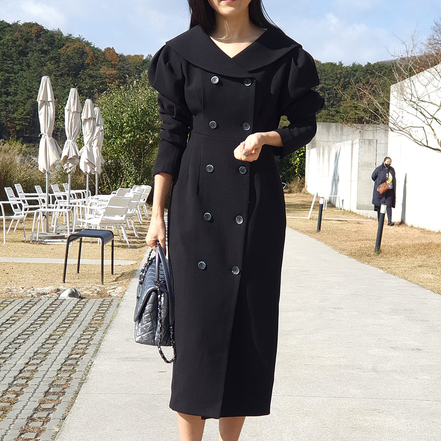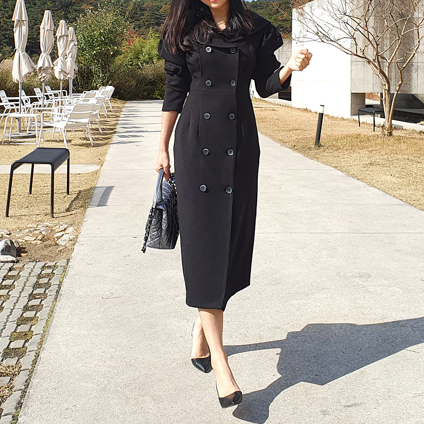 단아한 더블 버튼 세일러 카라 자켓형 원피스