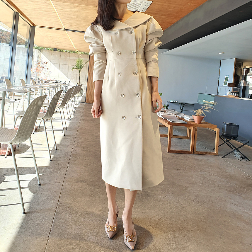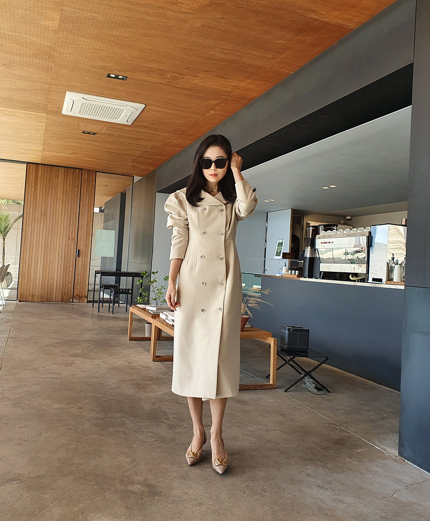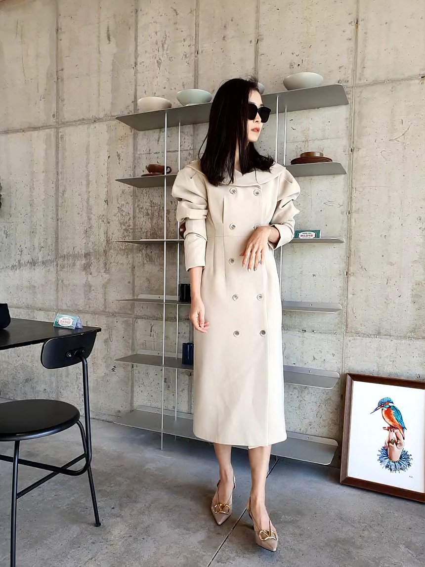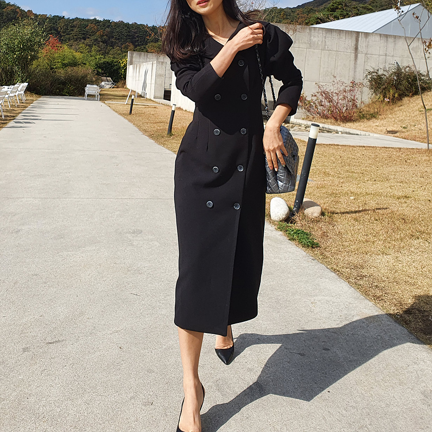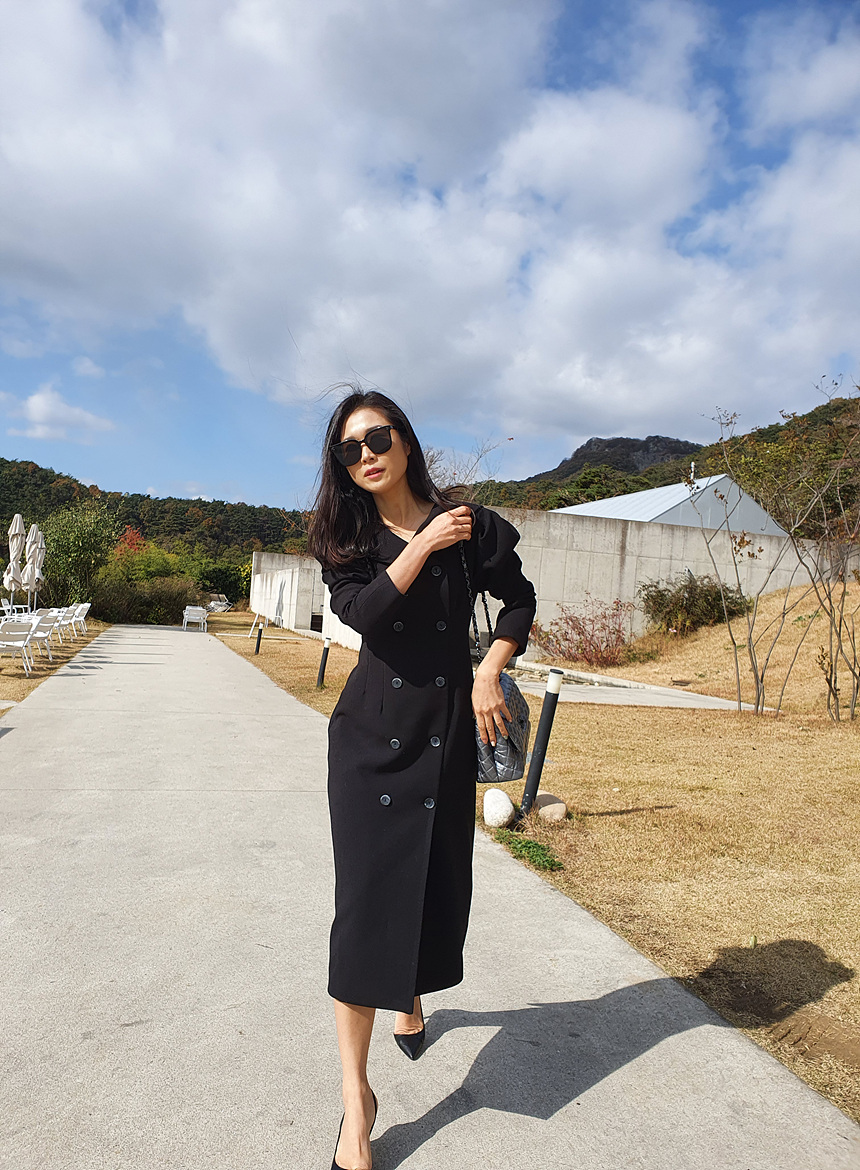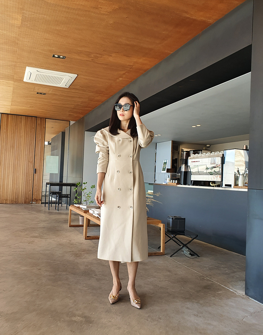 단아한 더블 버튼 세일러 카라 자켓형 원피스