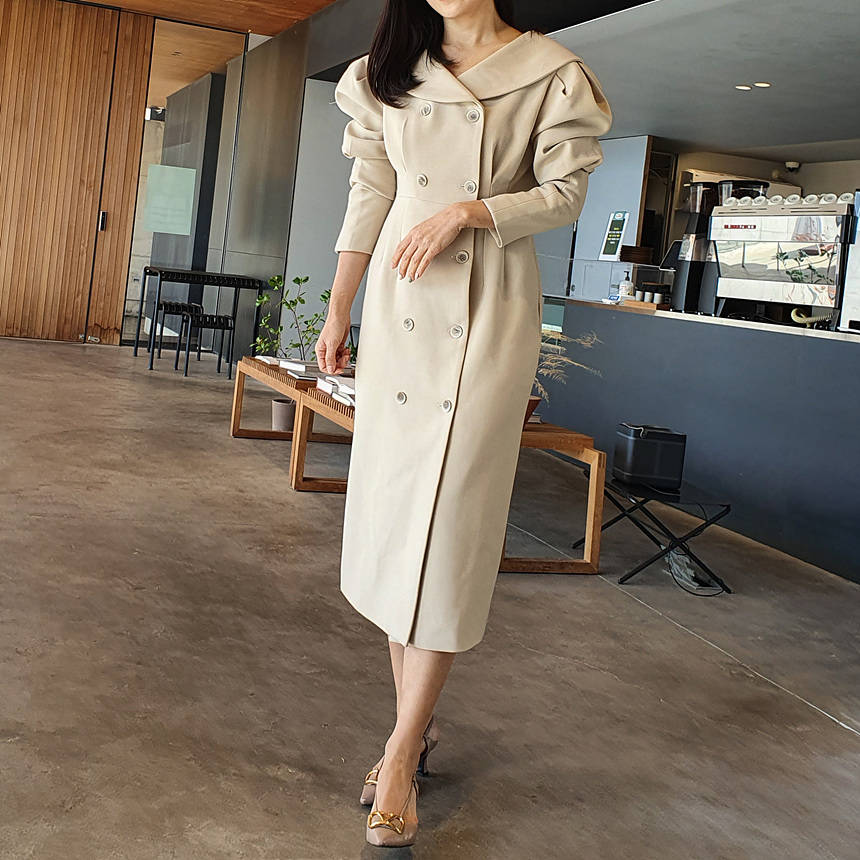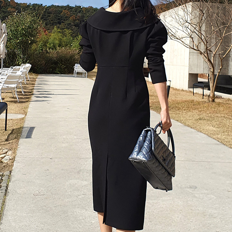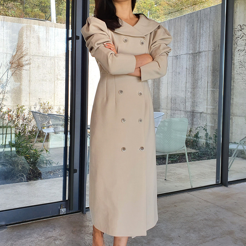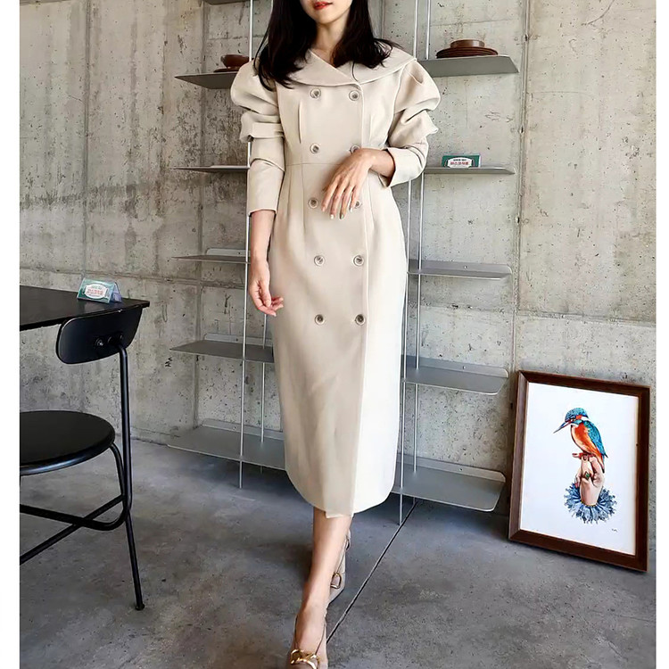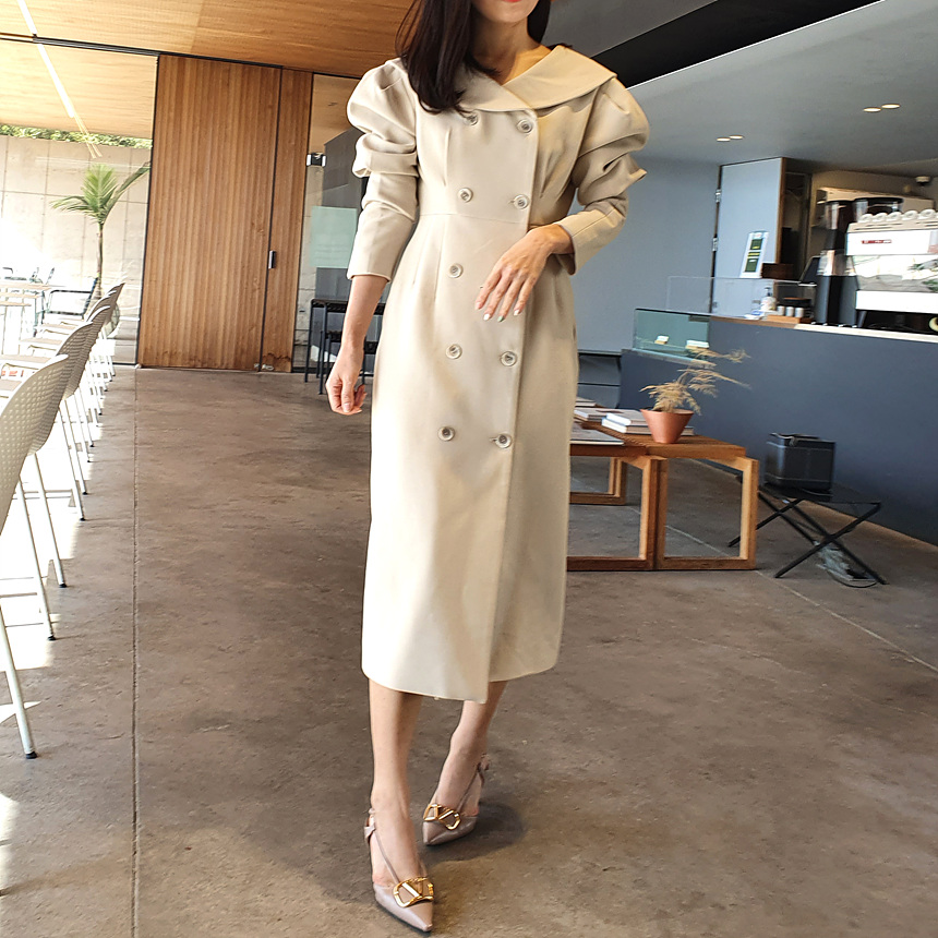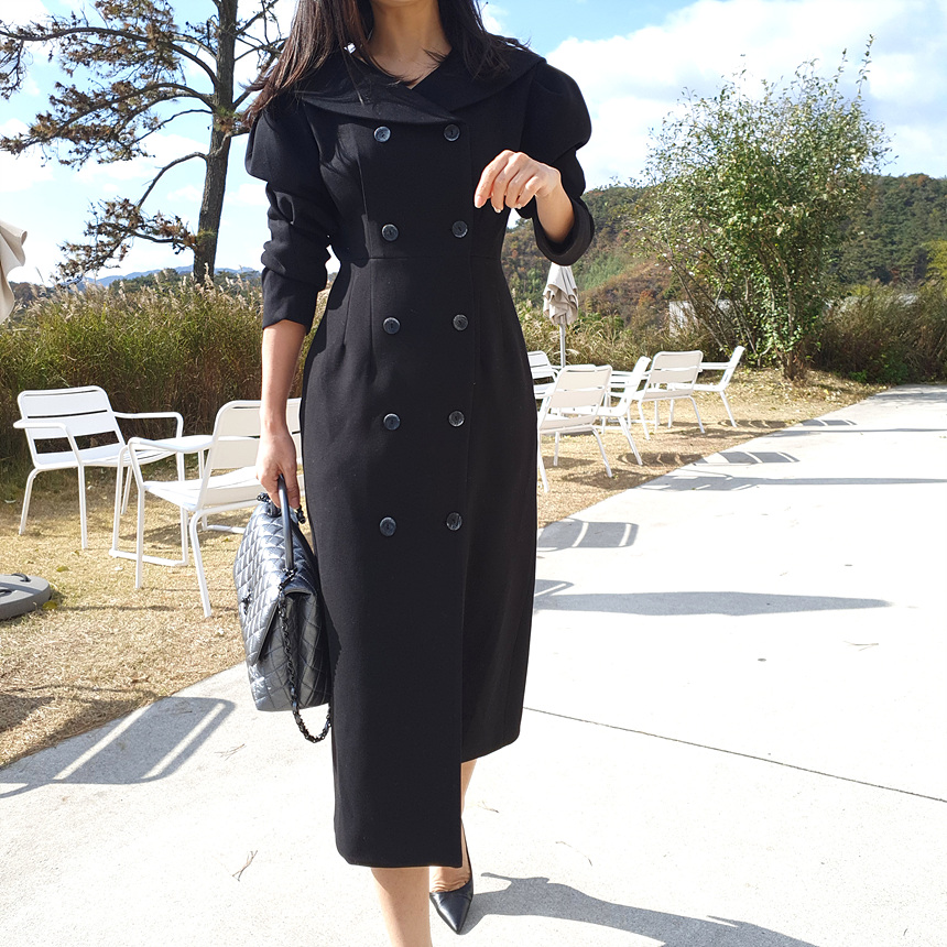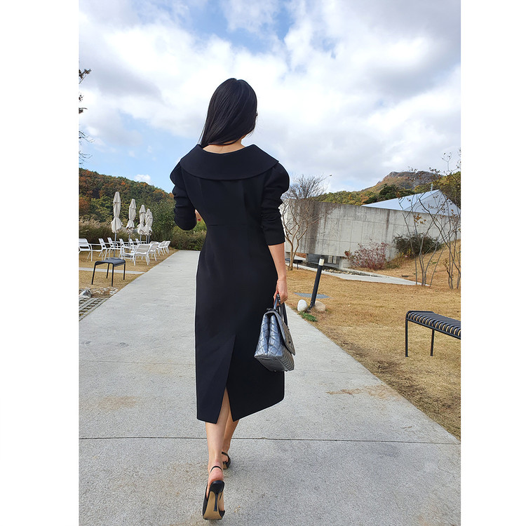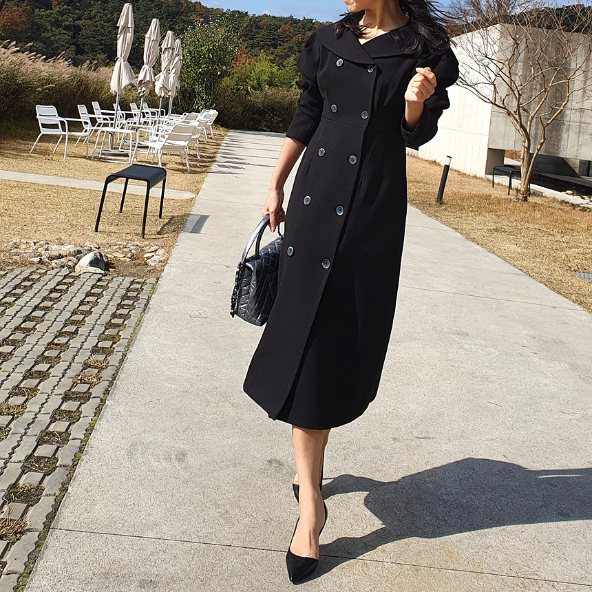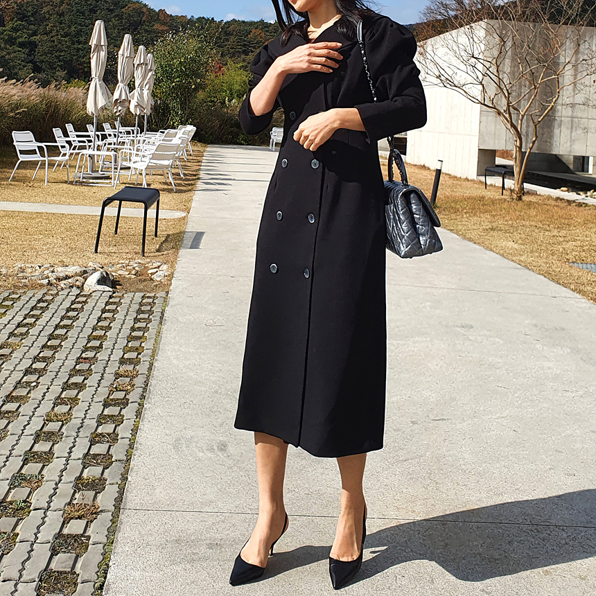 단아한 더블 버튼 세일러 카라 자켓형 원피스