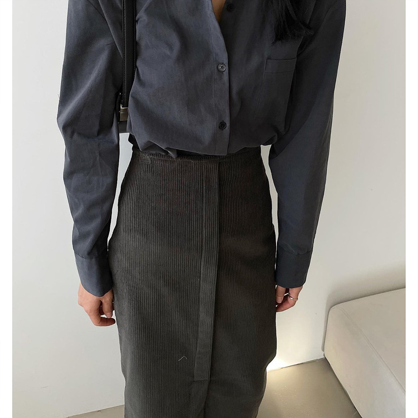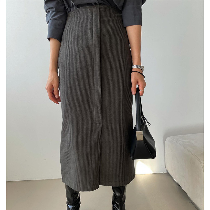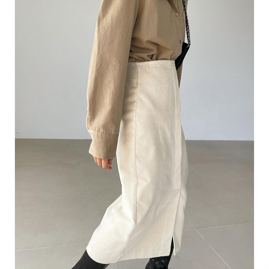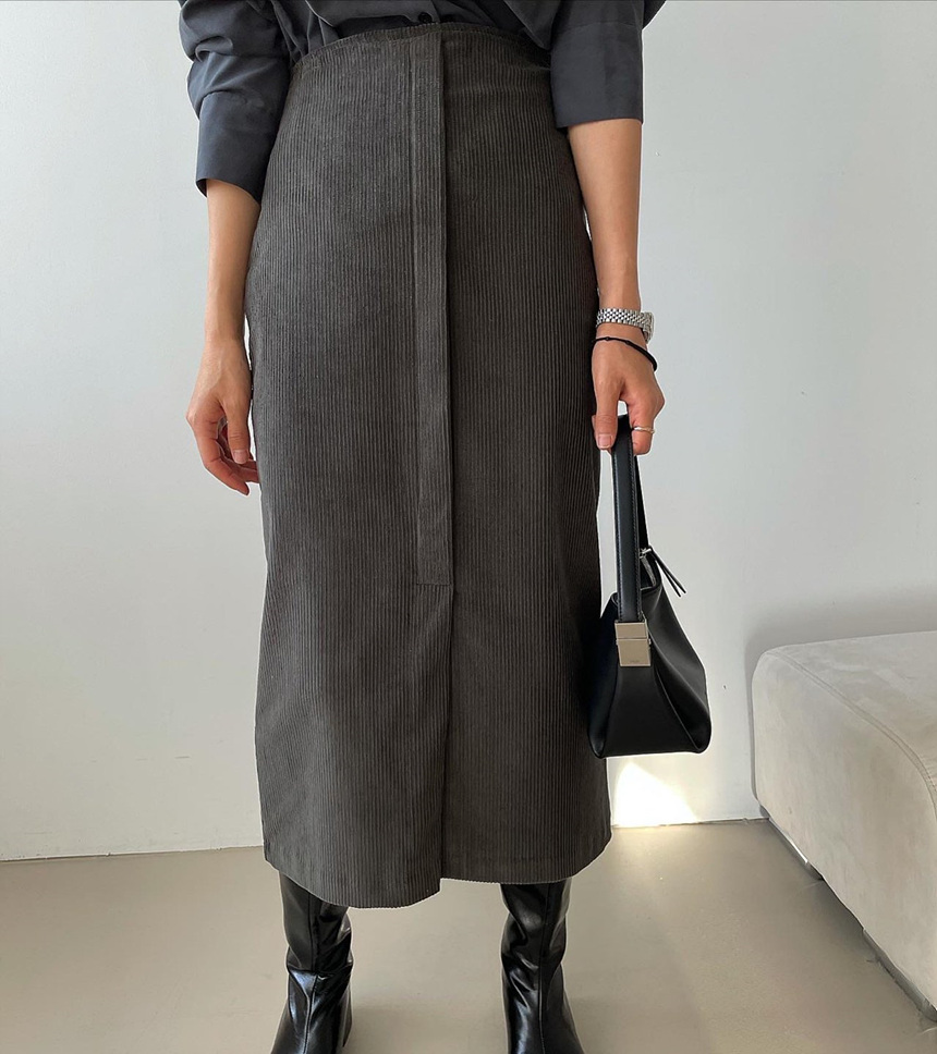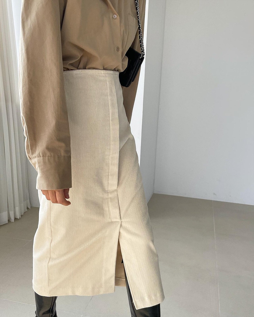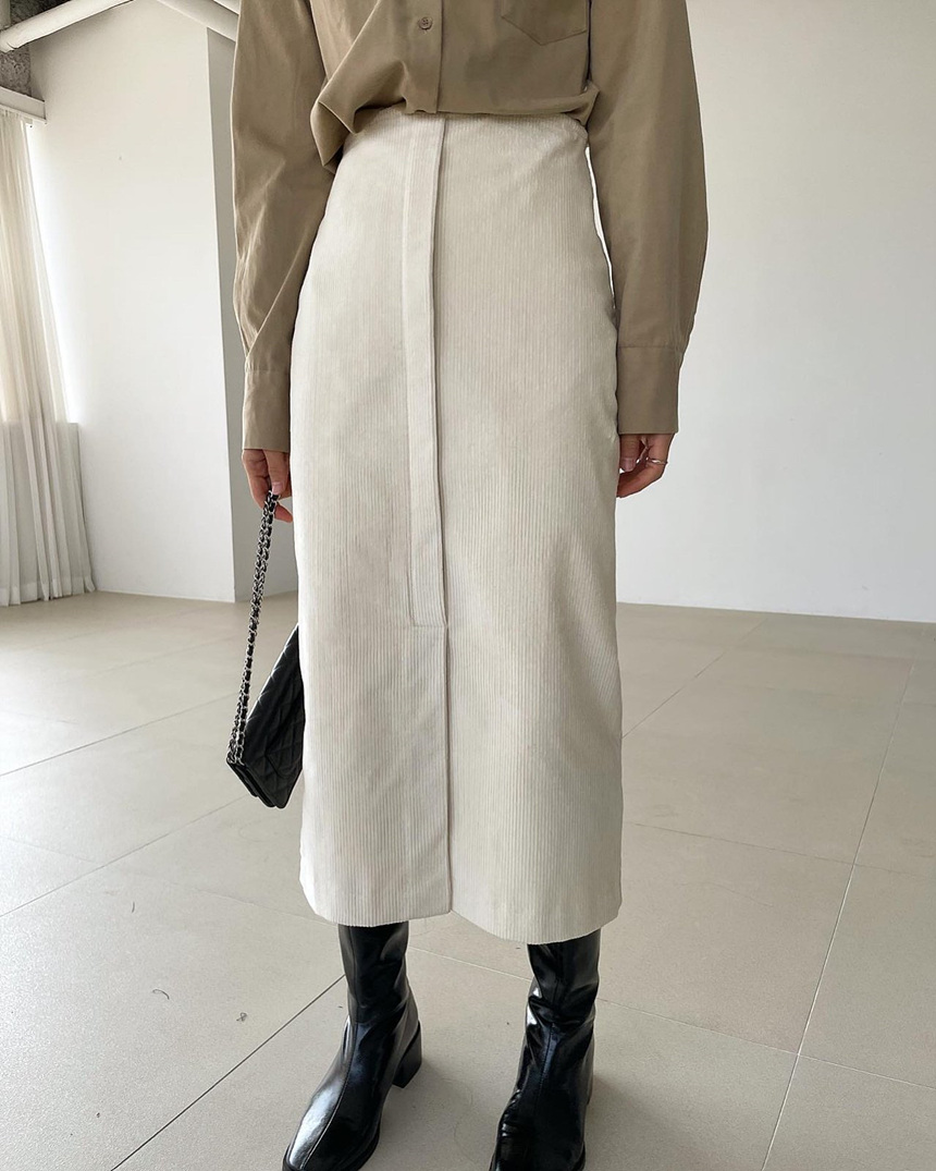 바로발송 골덴 에이치 라인 미디 스커트