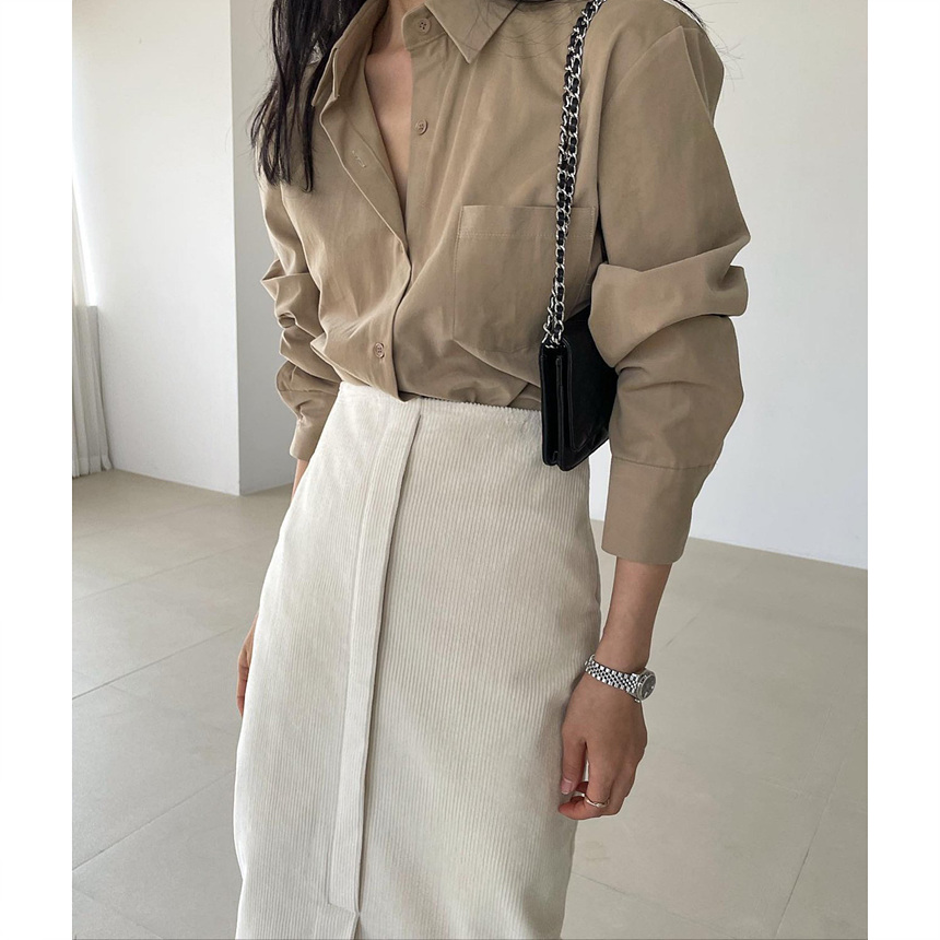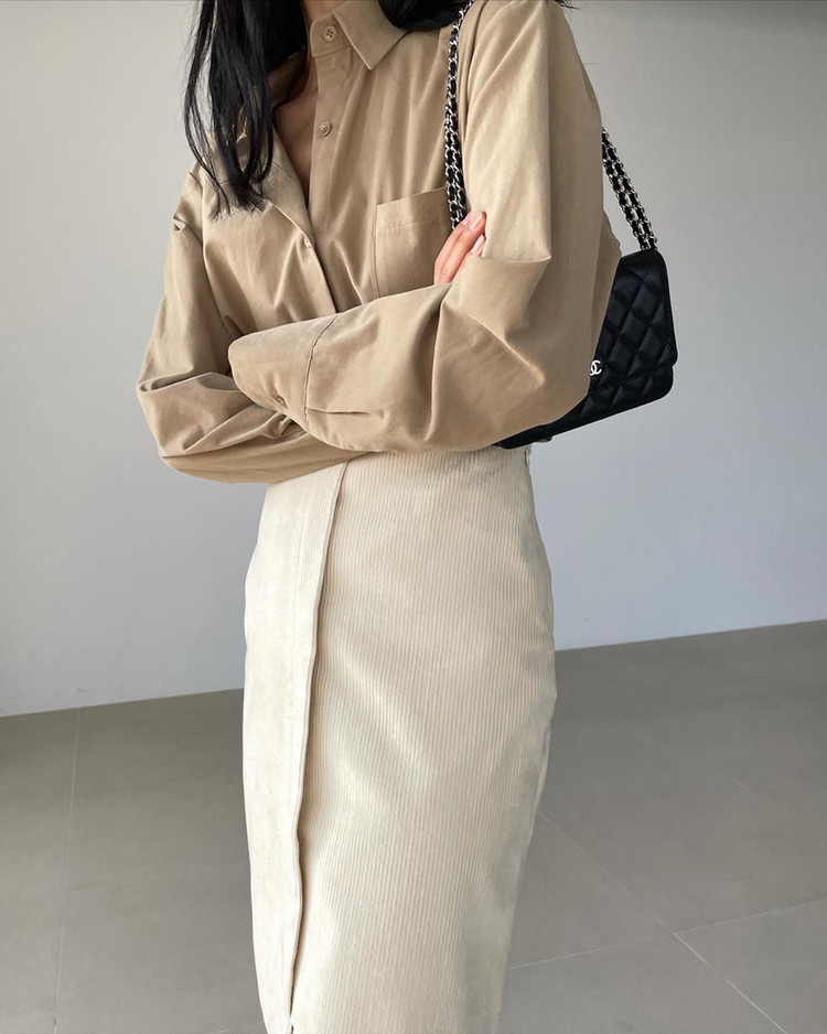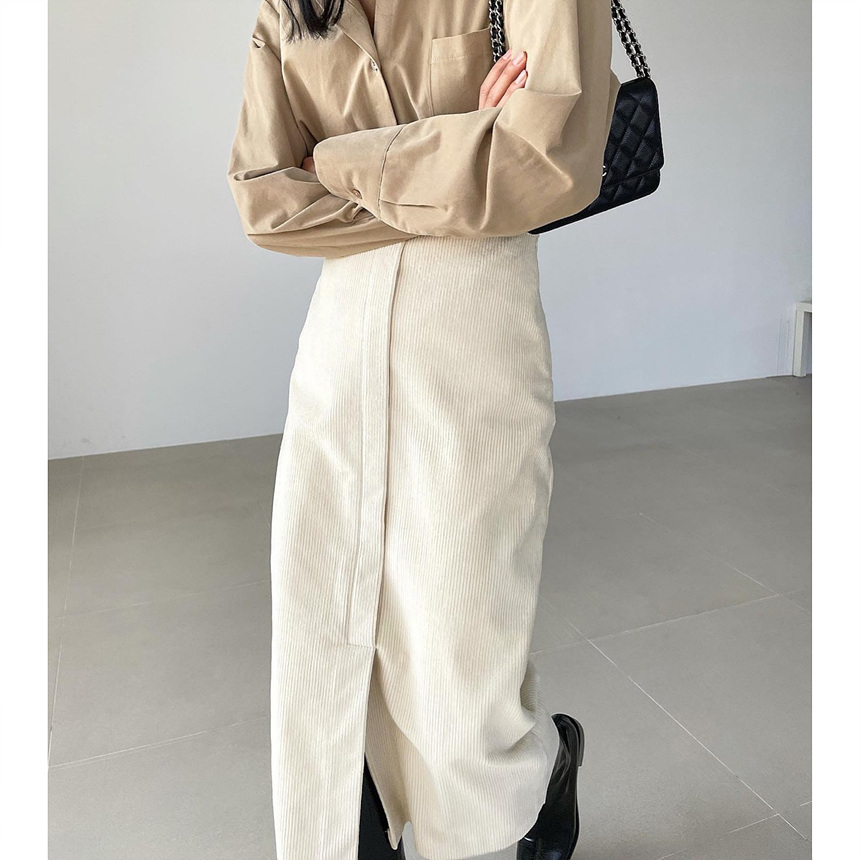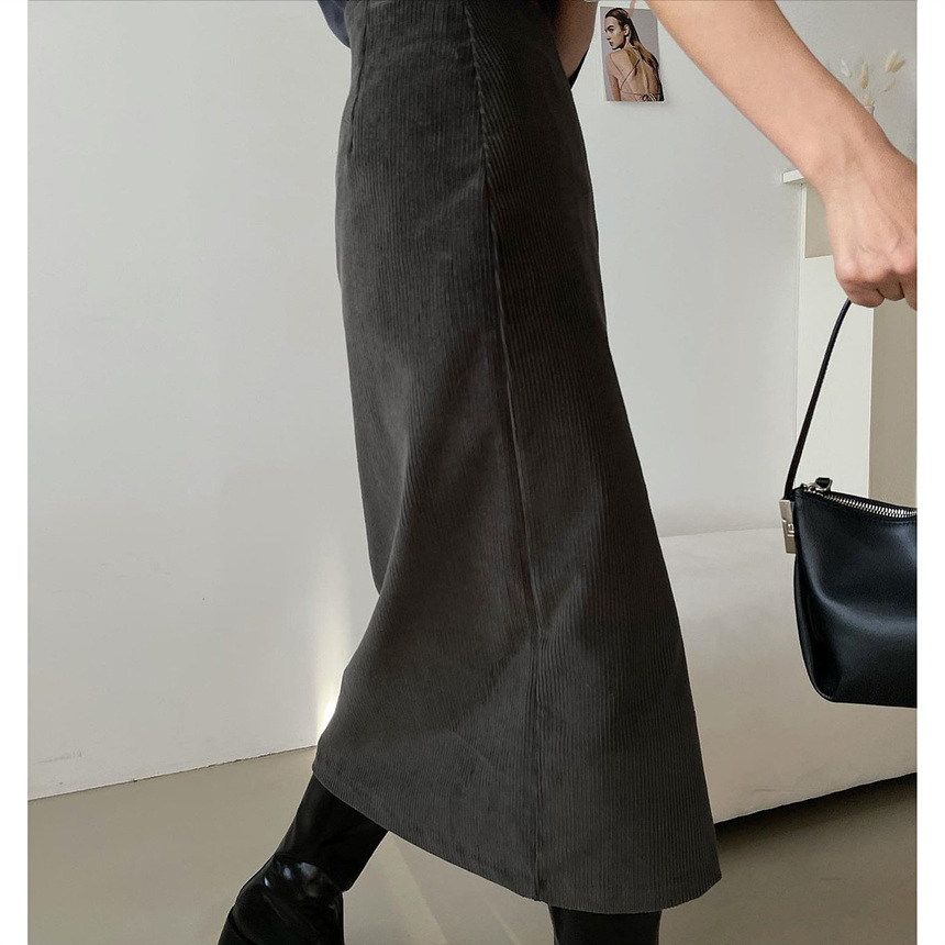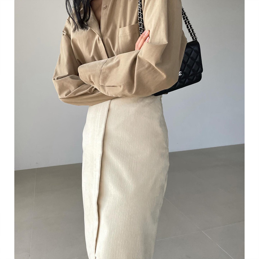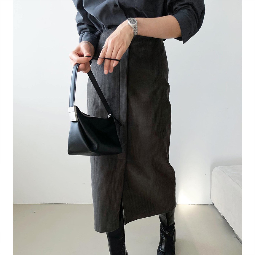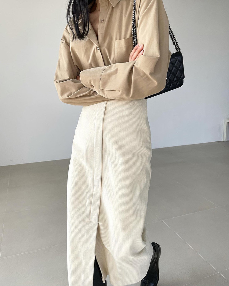 바로발송 골덴 에이치 라인 미디 스커트