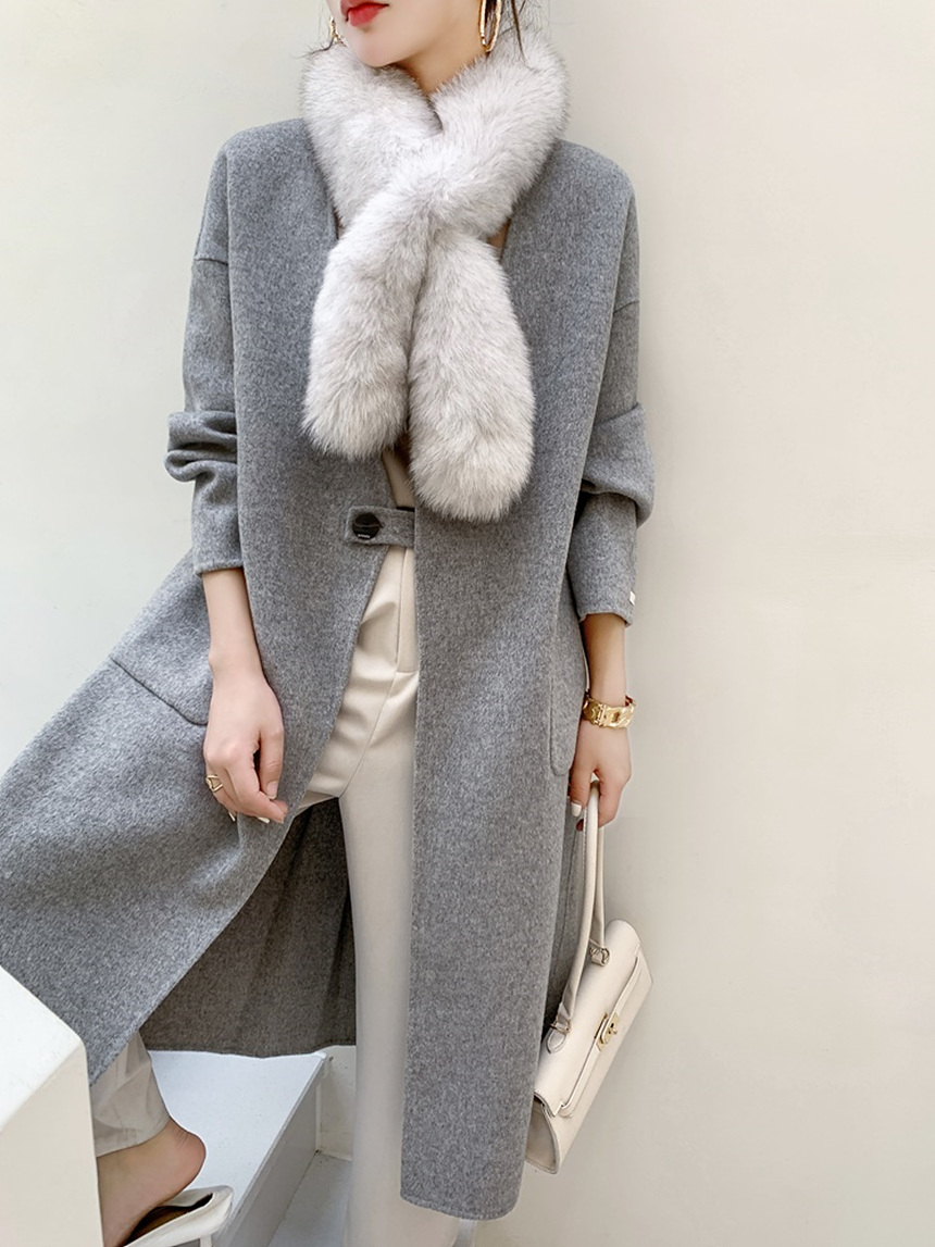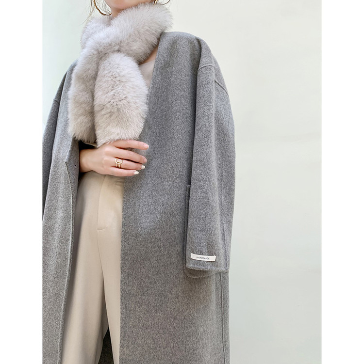 폭스퍼 목도리 세트 울100 심플 핸드메이드코트