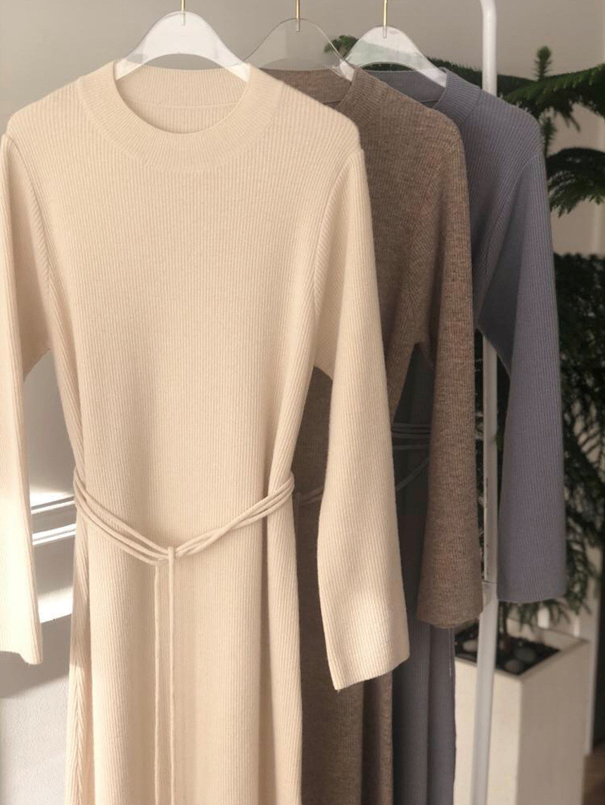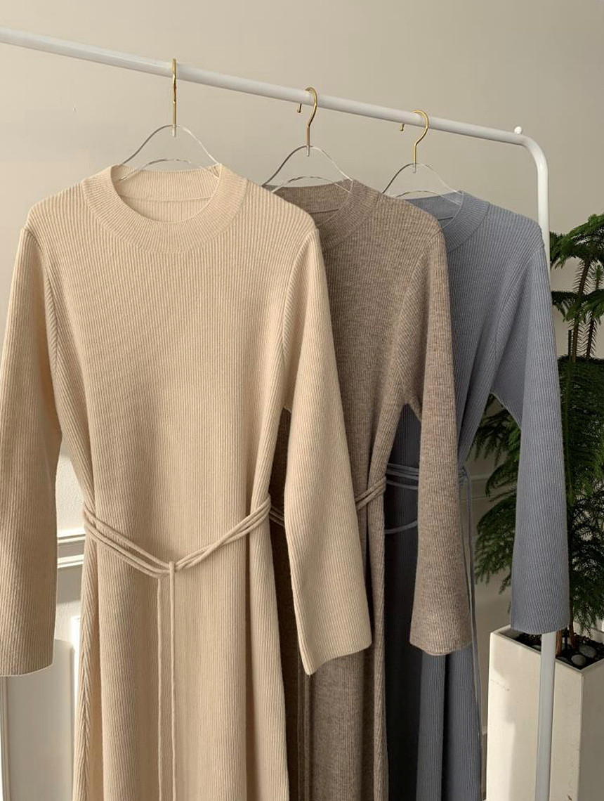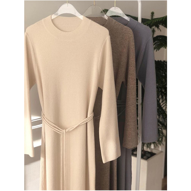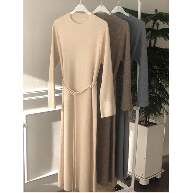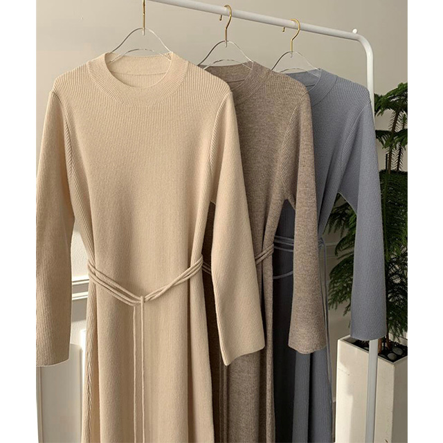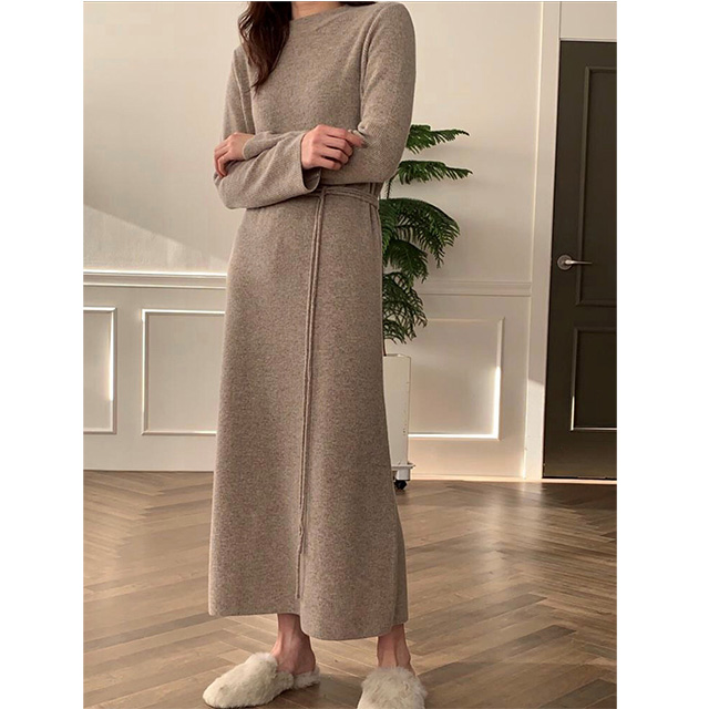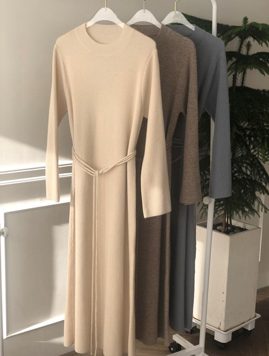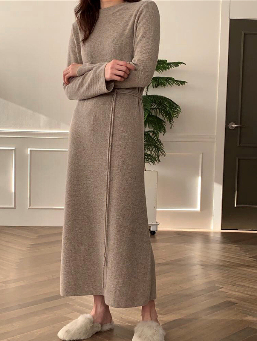 바로발송 램스울 80 고리 벨트 잔골지 맥시 롱 니트 원피스