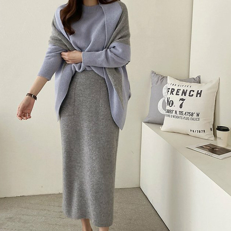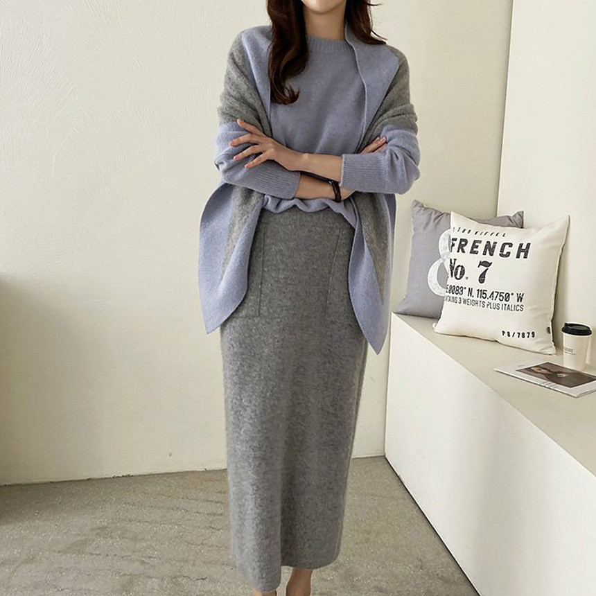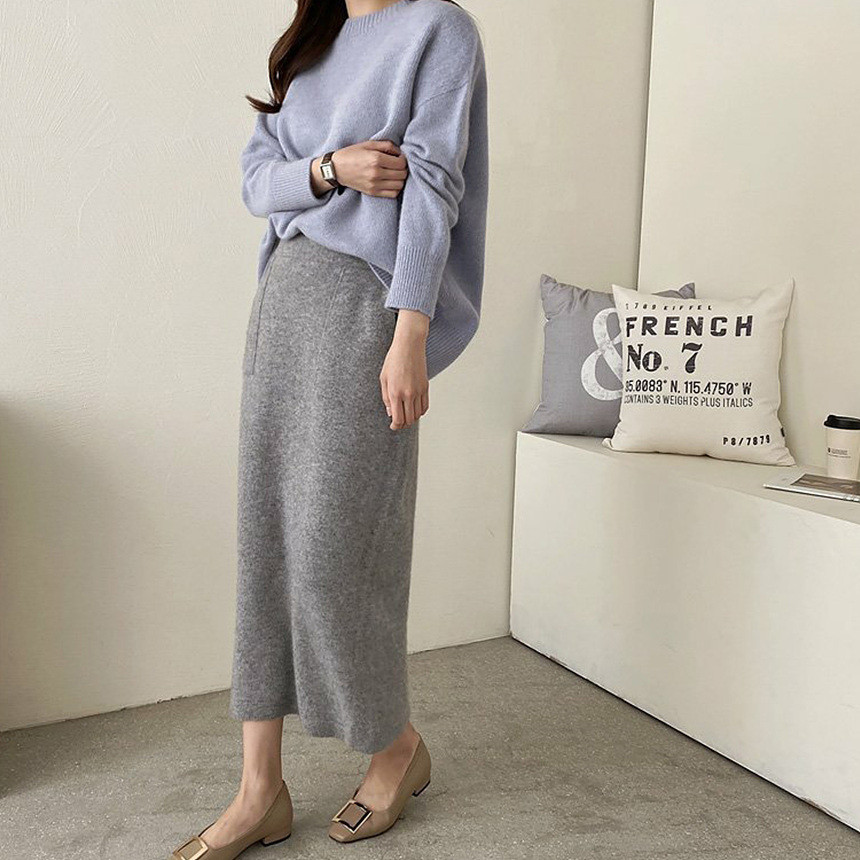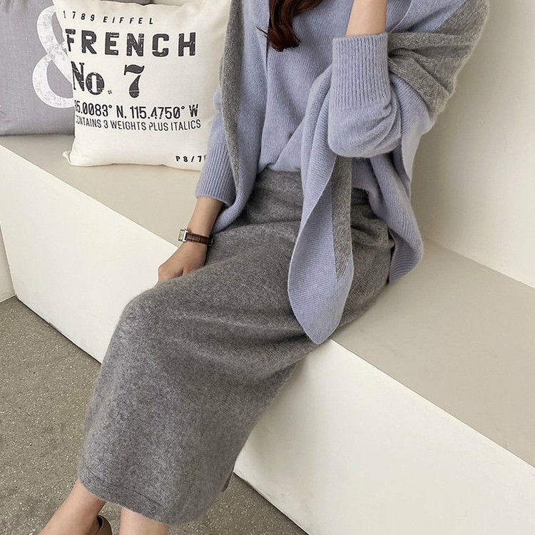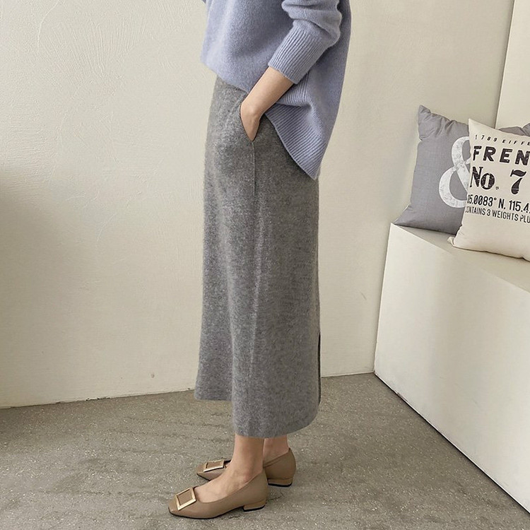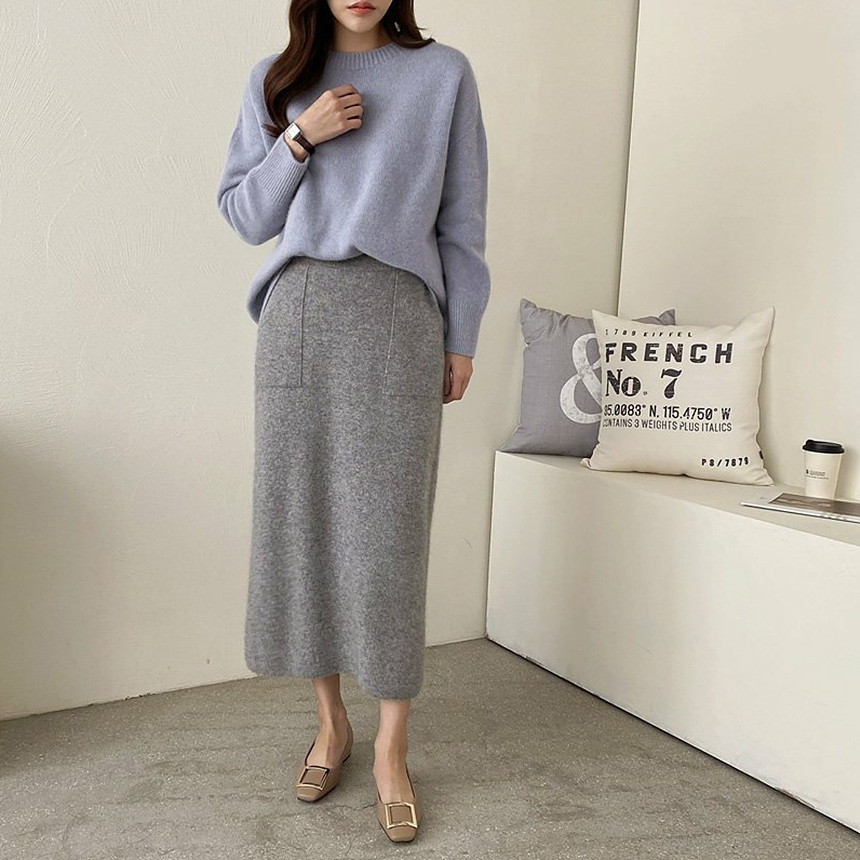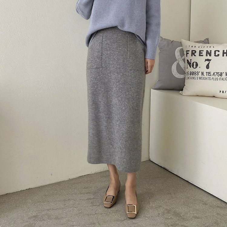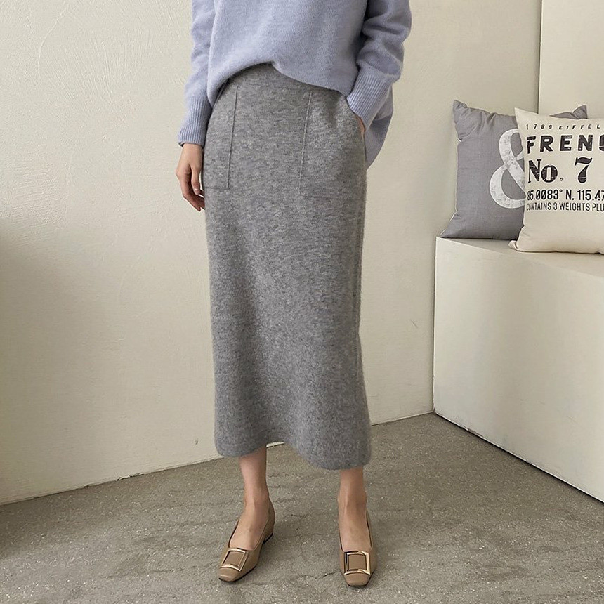 바로발송 홀가먼트 라쿤 에이치라인 포켓 니트 스커트