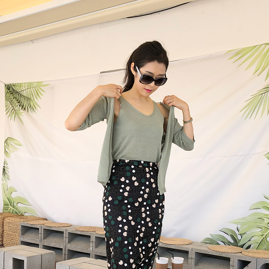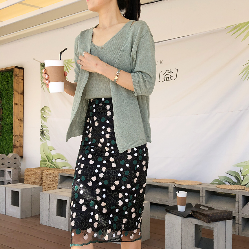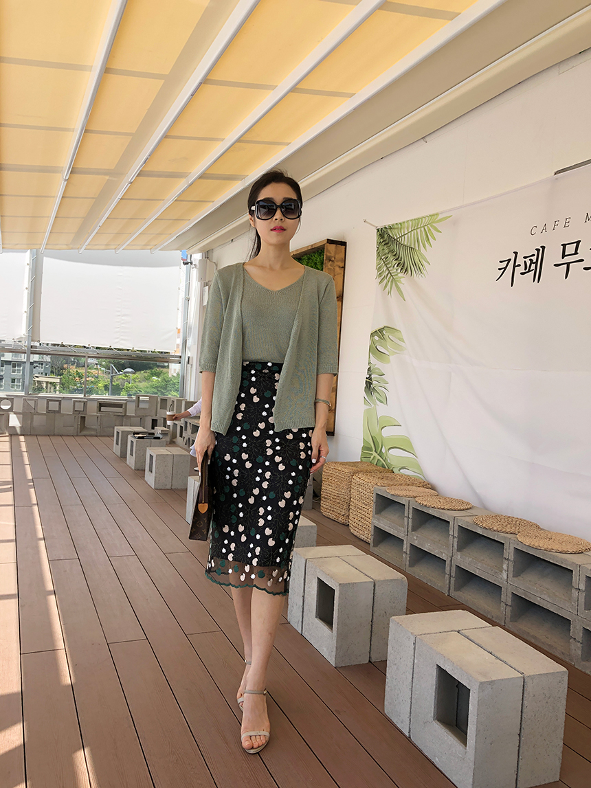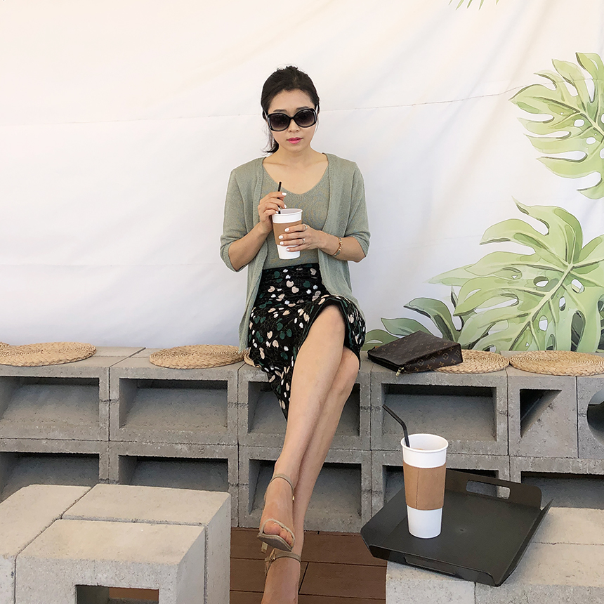 민소매 니트와 가디건 니트가 세트로 구성되어 있습니다